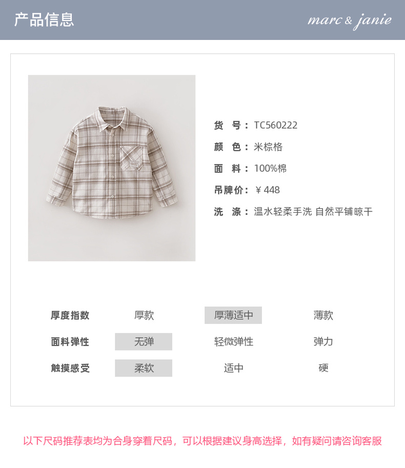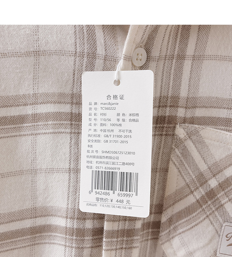 马克珍妮复古格纹男童纯棉衬衫2026年春装新款560222