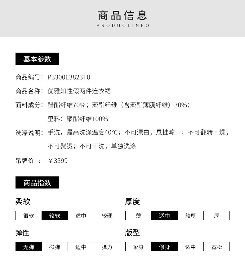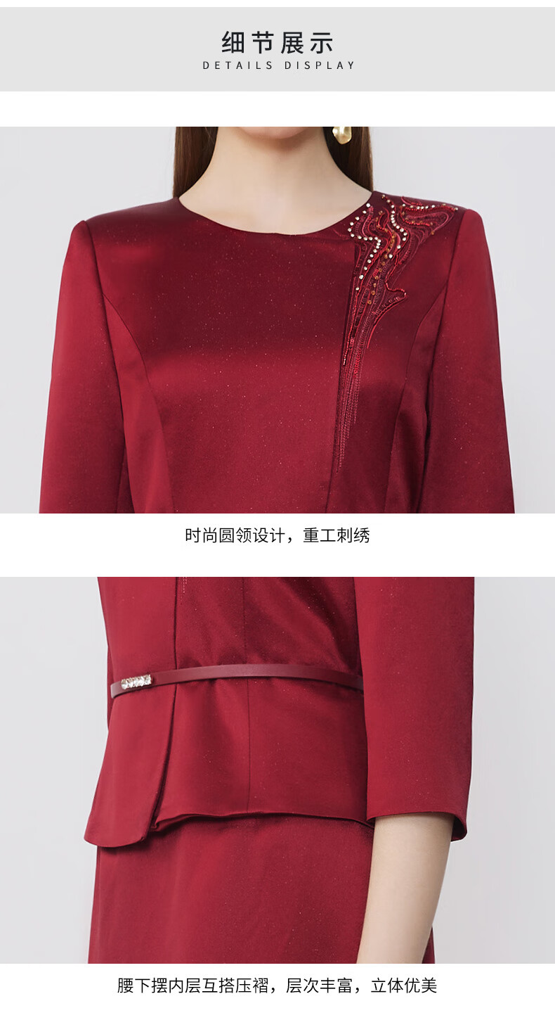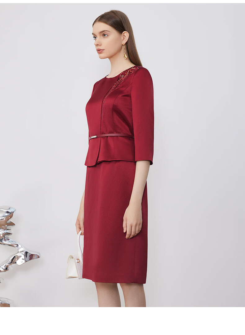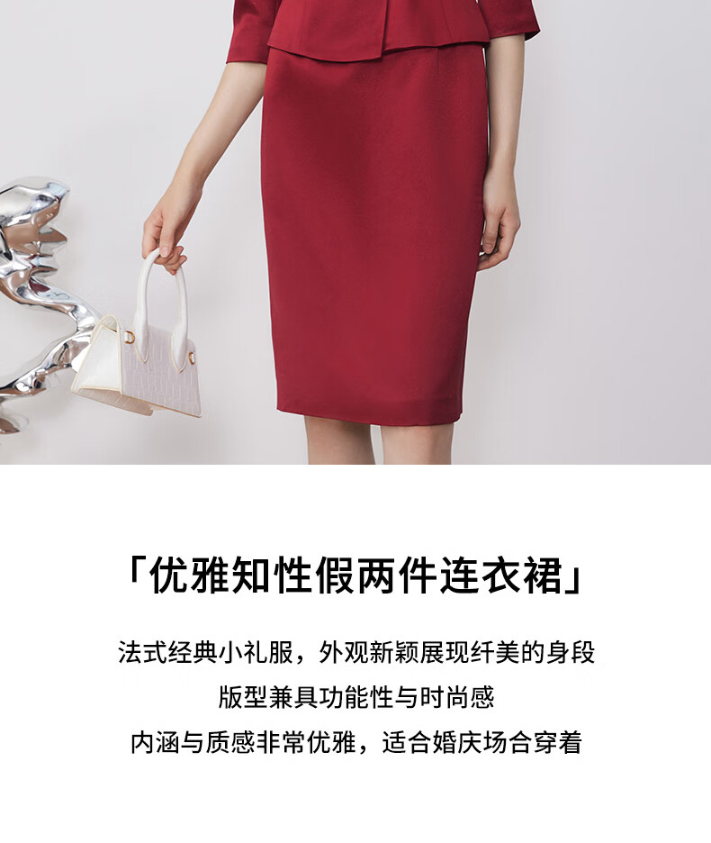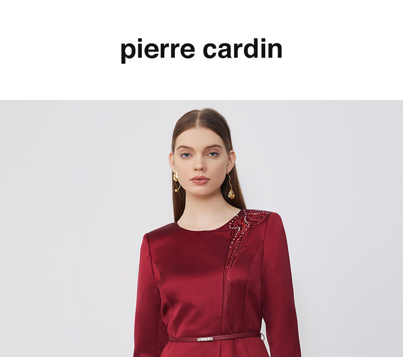 皮尔卡丹女装连衣裙红色假两件醋酸高级感礼服裙P3300E3823T0