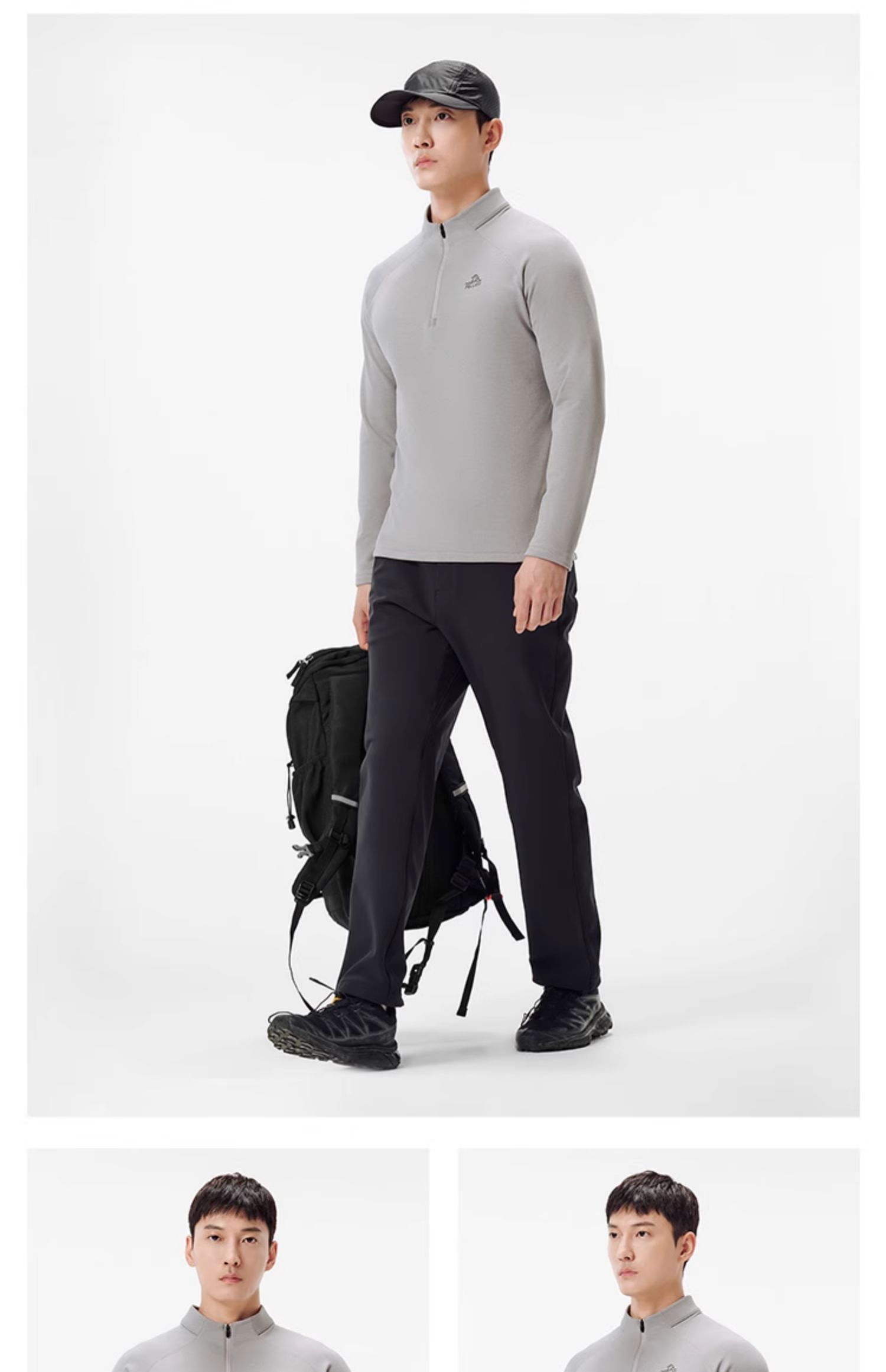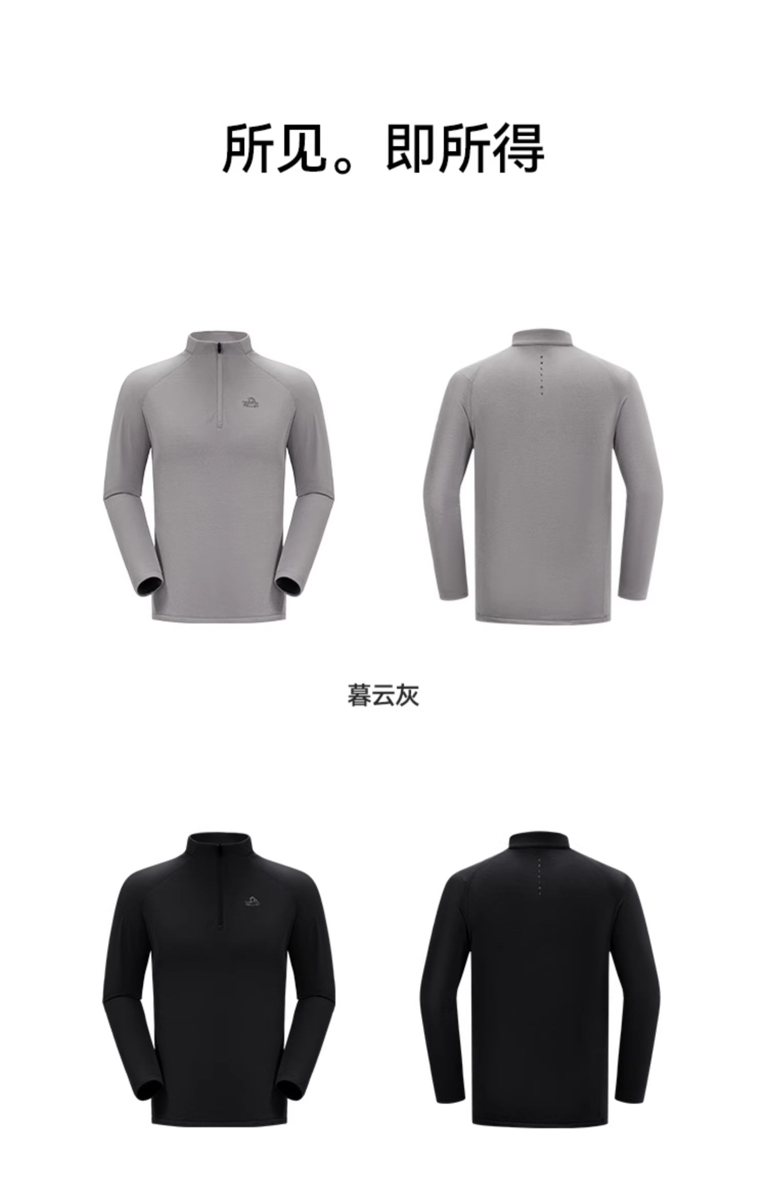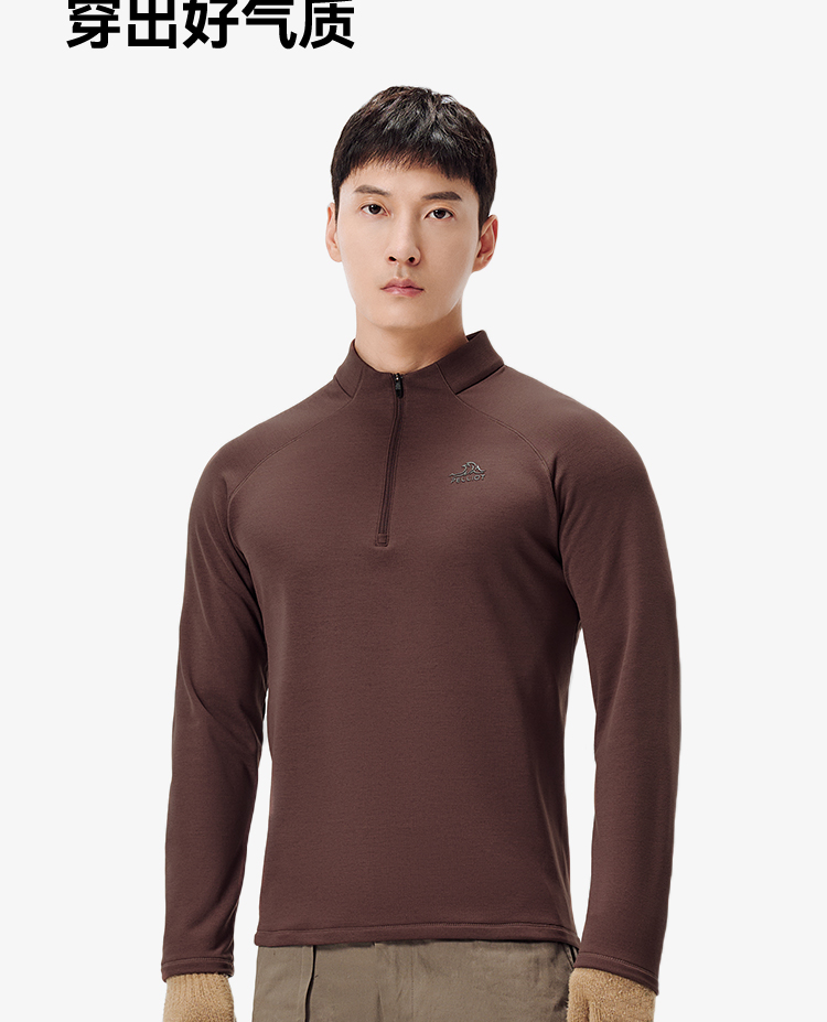 伯希和户外立领长袖T恤男25新款抑菌高弹保暖亲肤修身运动上衣