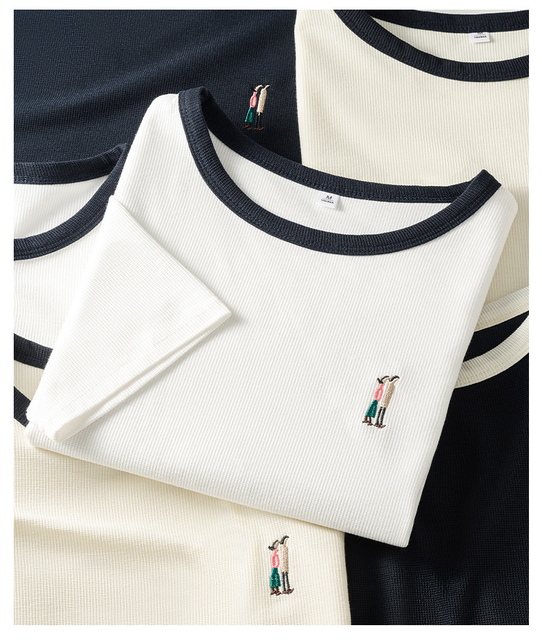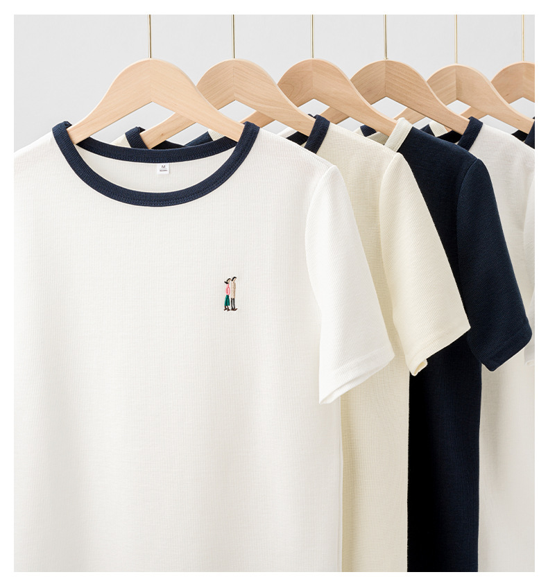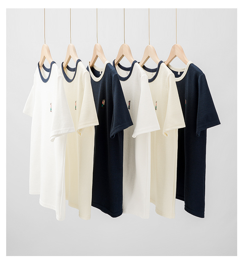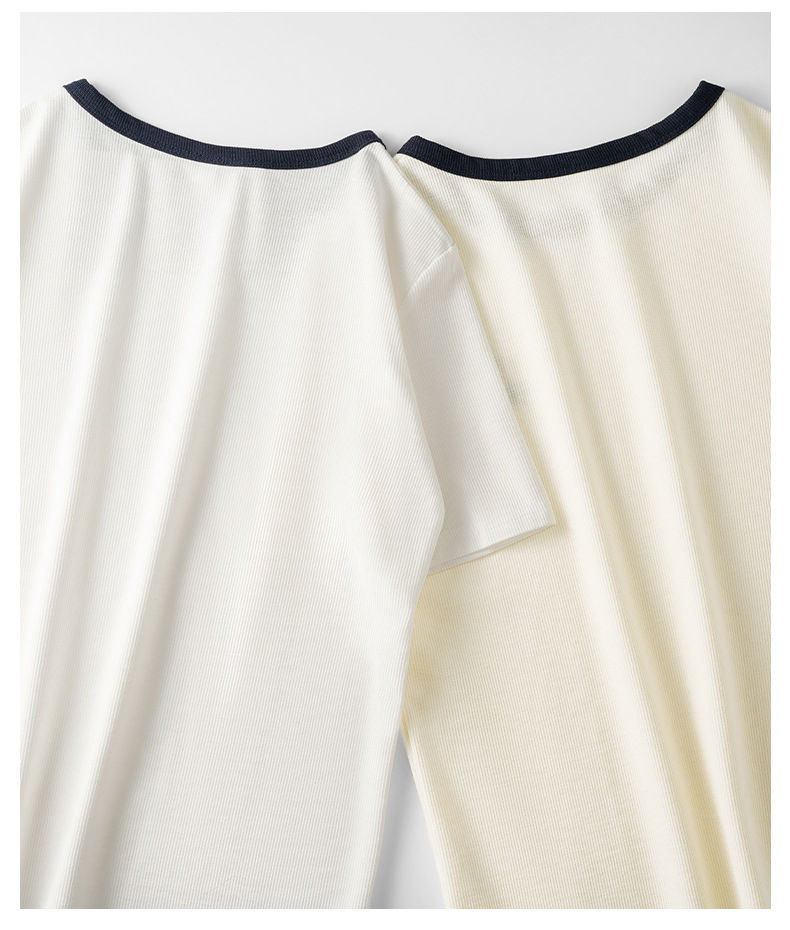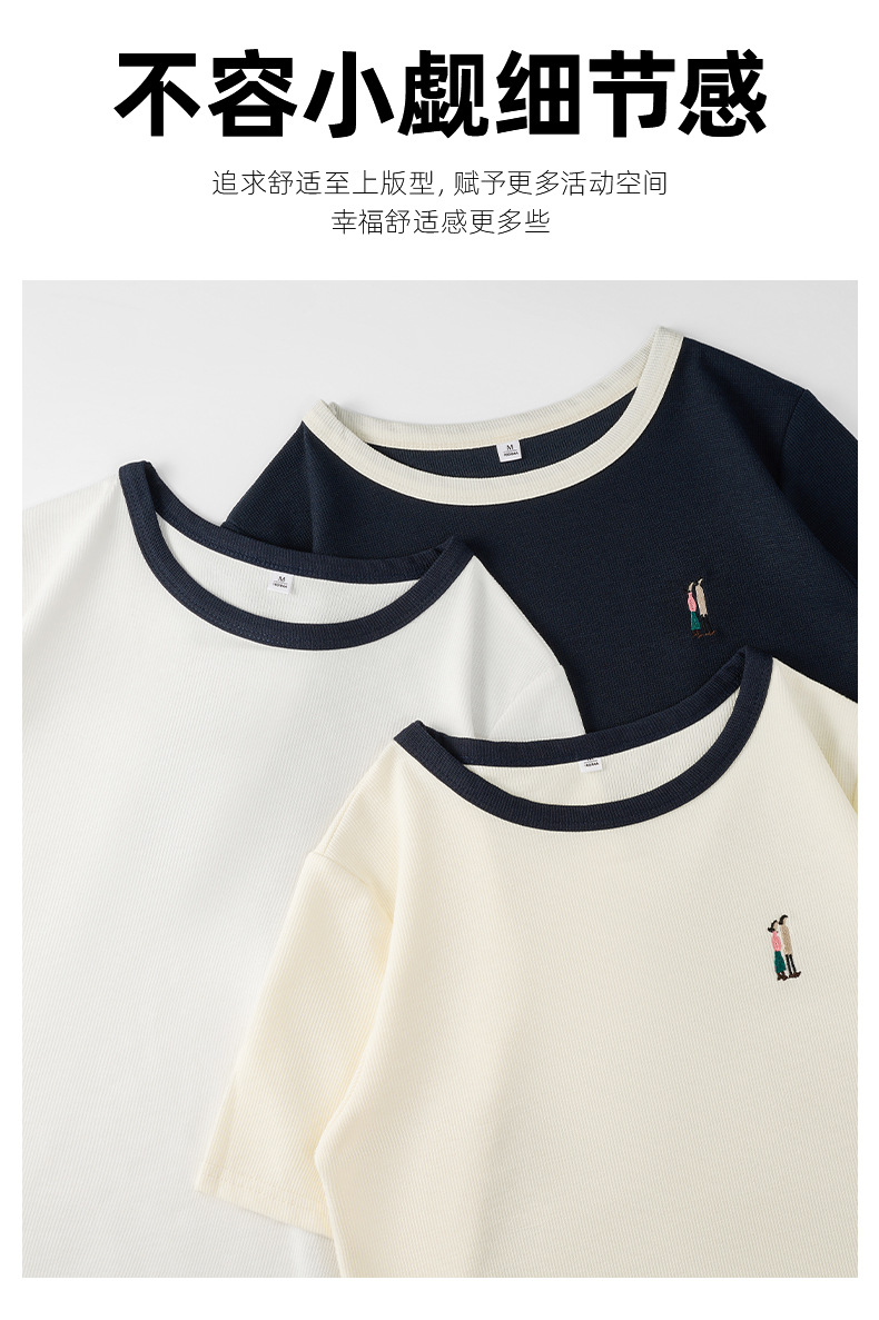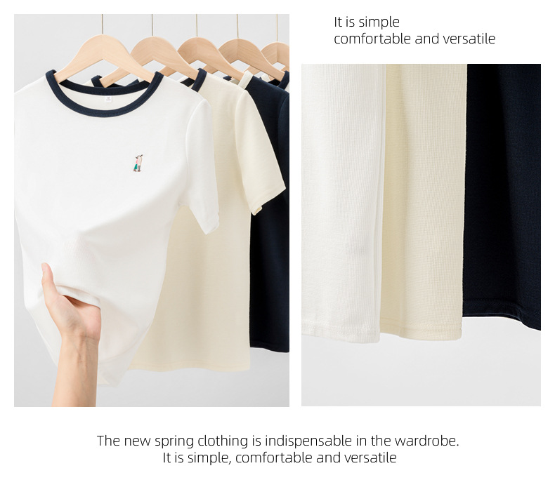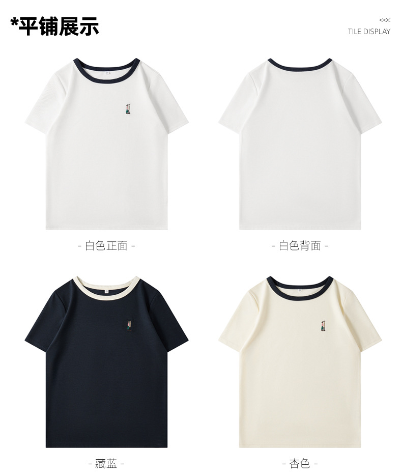 「三款配色!休闲·T」韩版修身上衣夏季圆领撞色设计感含棉短袖t恤紧身内搭打底衫
