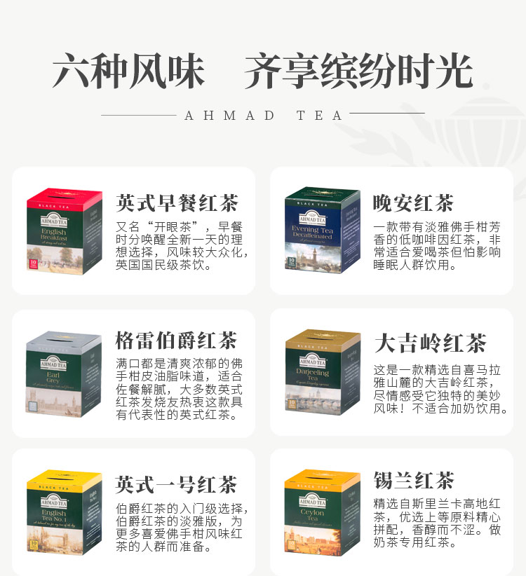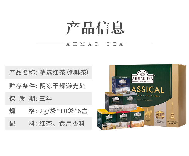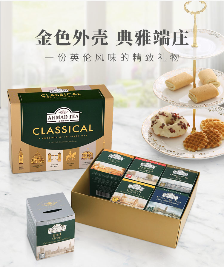 【英式慢生活】英国进口亚曼茶 皇家甄选礼盒 曼享典雅 品味英伦 6种口味*2g*10 共60包 (英式早餐/低因晚安红茶/伯爵红茶/英式一号/大吉岭/锡兰红茶)