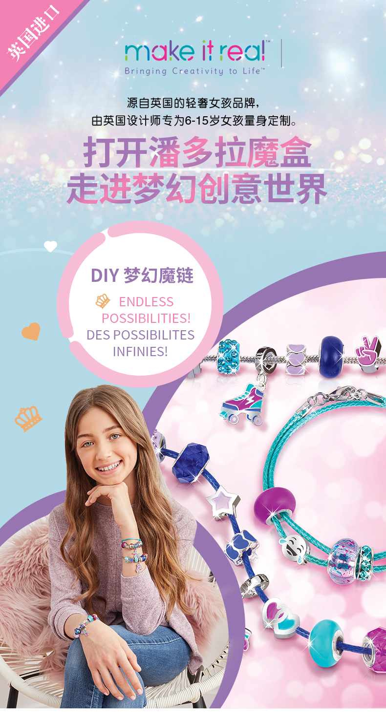 【27颗不同闪耀挂饰 打造百变风格】英国Make it real美伊睿卡蜜拉·百变魔链首饰套装 为女孩量身定制 轻松搭配不同服装 潘多拉款式设计 超好看!