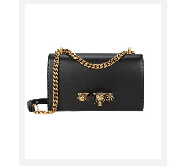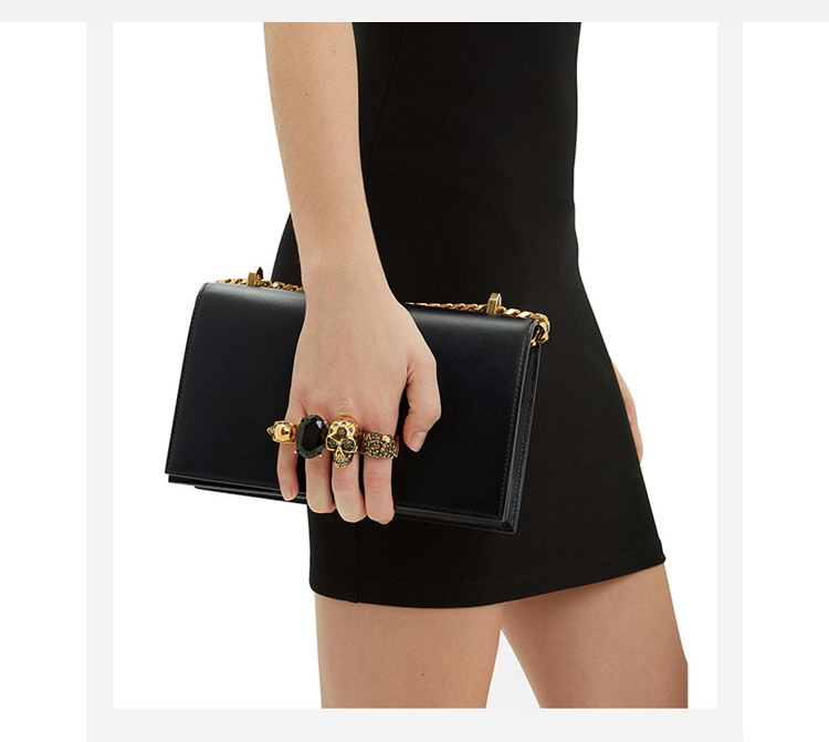 ALEXANDER MCQUEEN 亚历山大.麦昆 女士光滑小牛皮骷髅头手指斜挎单肩包 黑色 554128 CMO0T 1000