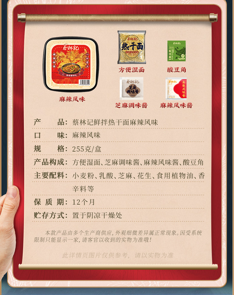 【满99-50 满199-100】蔡林记九凤版麻辣鲜拌面255g