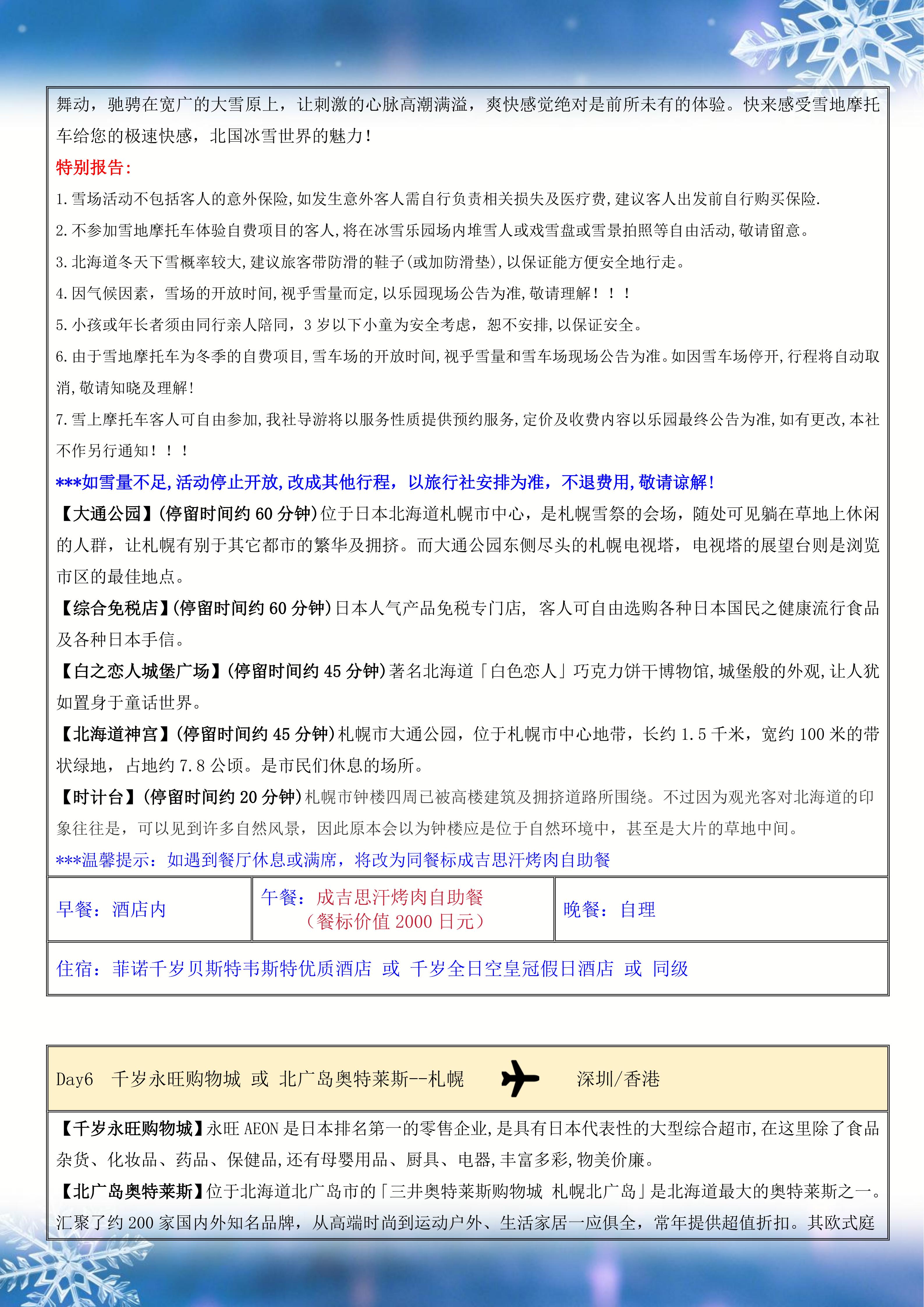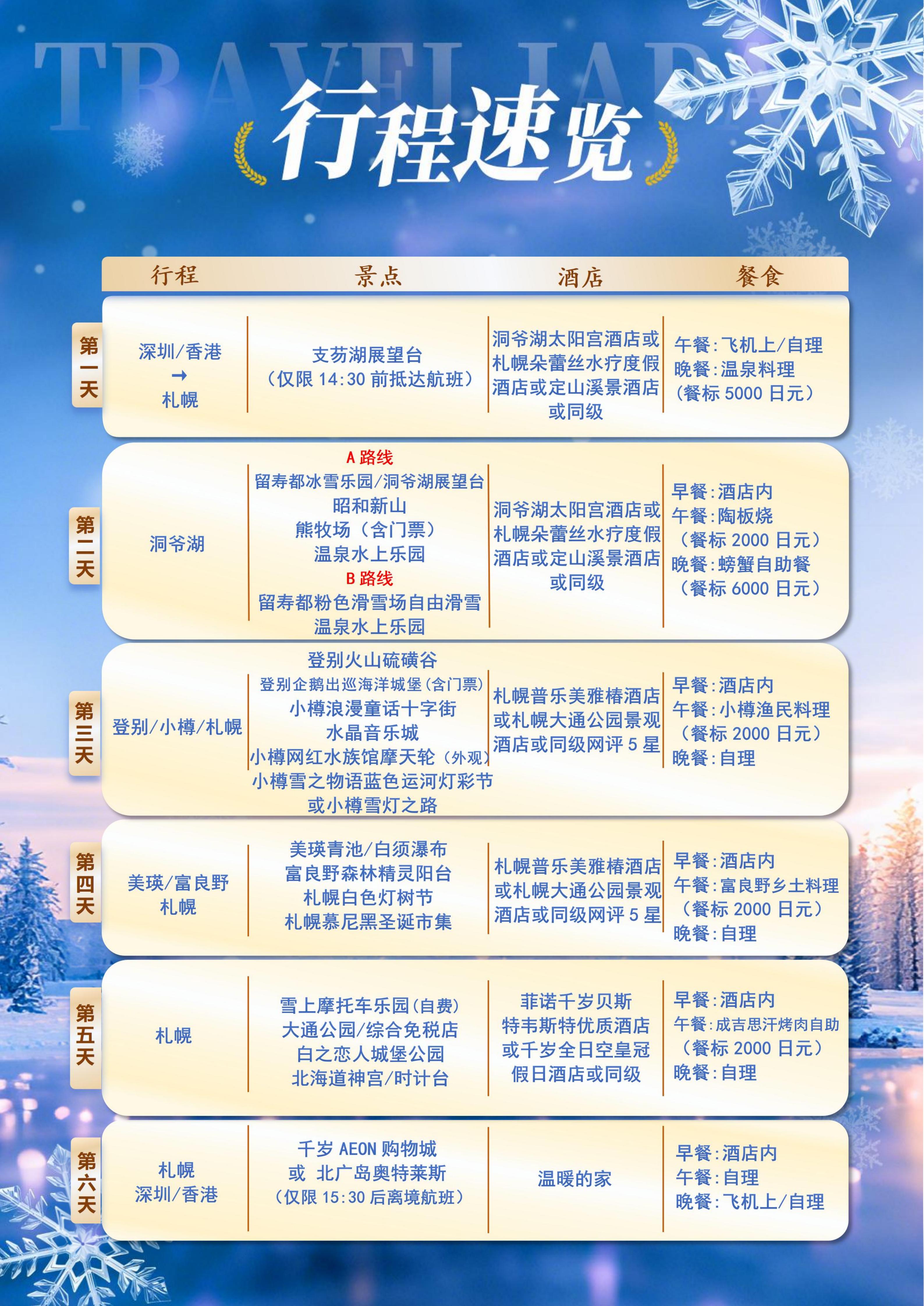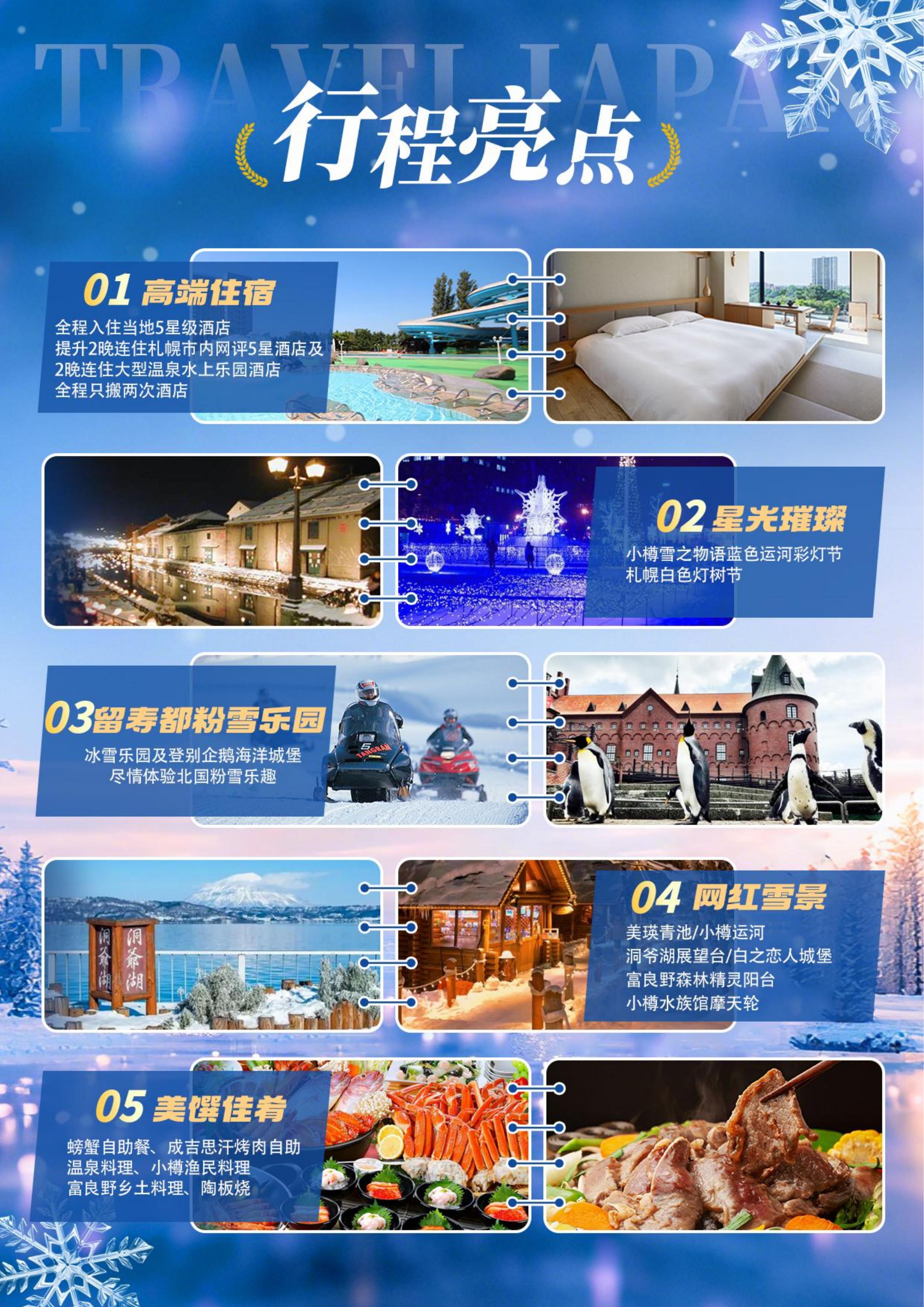 【圣诞、元旦】<日本北海道6天-深圳直飞往返>留寿都冰雪乐园/滑雪(二选一)、登别火山硫磺谷、登别企鹅出巡海洋城堡、小樽、美瑛青池、白须瀑布、富良野森林精灵阳台、札幌白色灯树节、北海道神宫