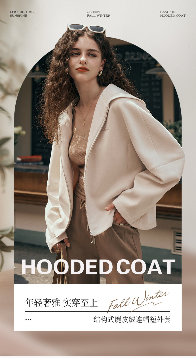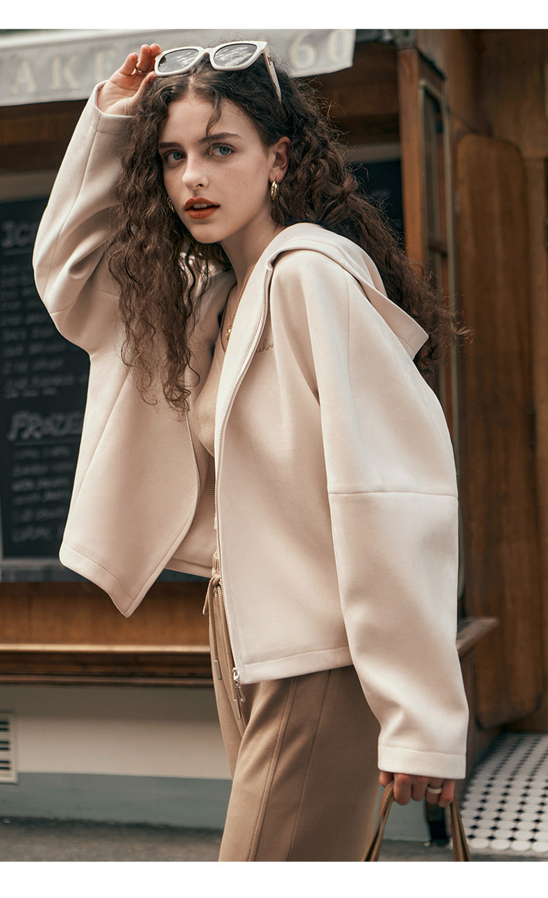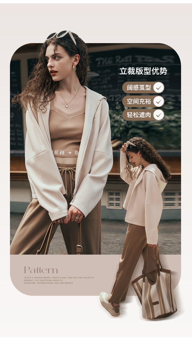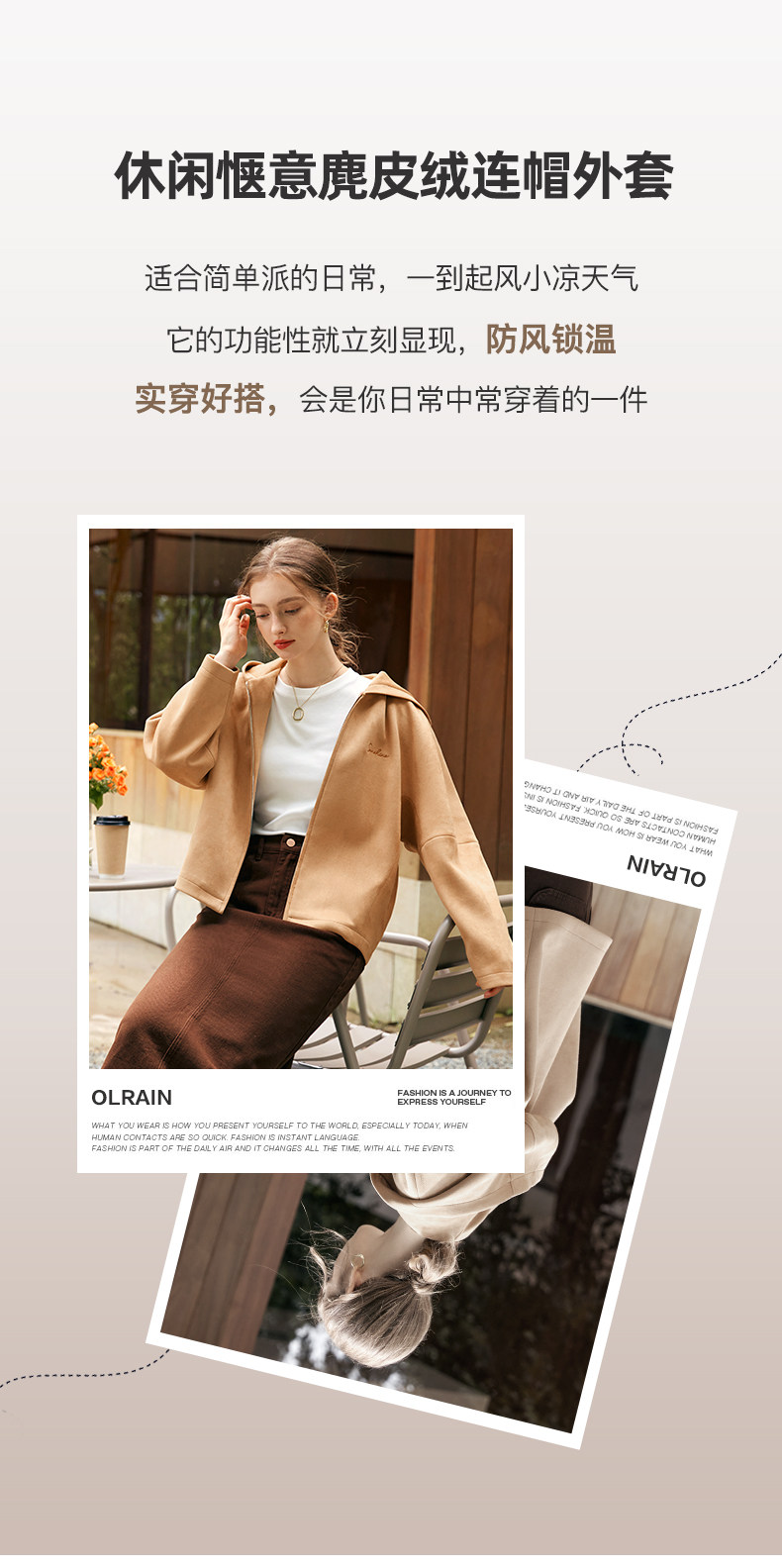 OLrain欧芮儿白色短外套女初秋2023年新款连帽休闲百搭宽松上衣