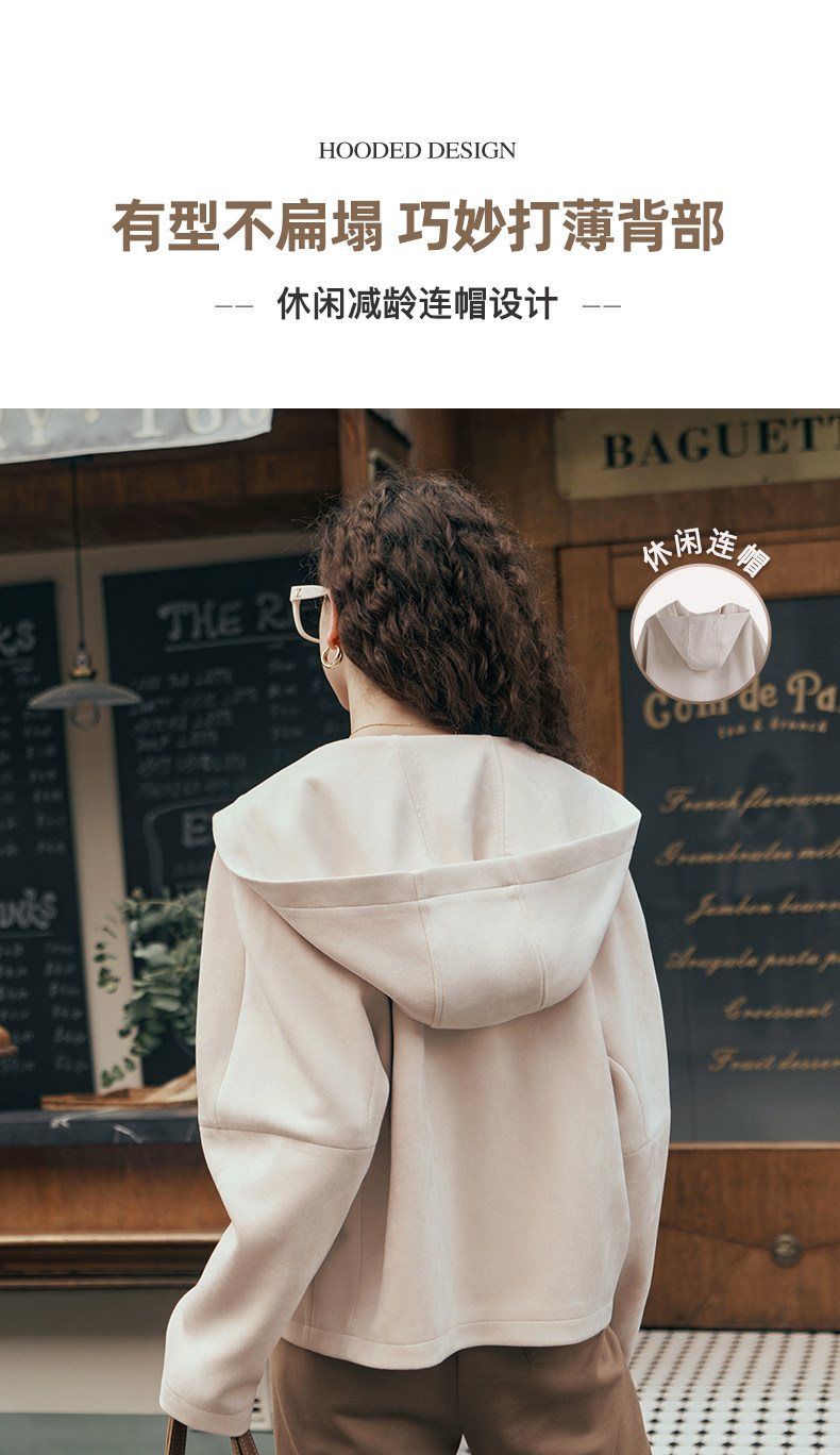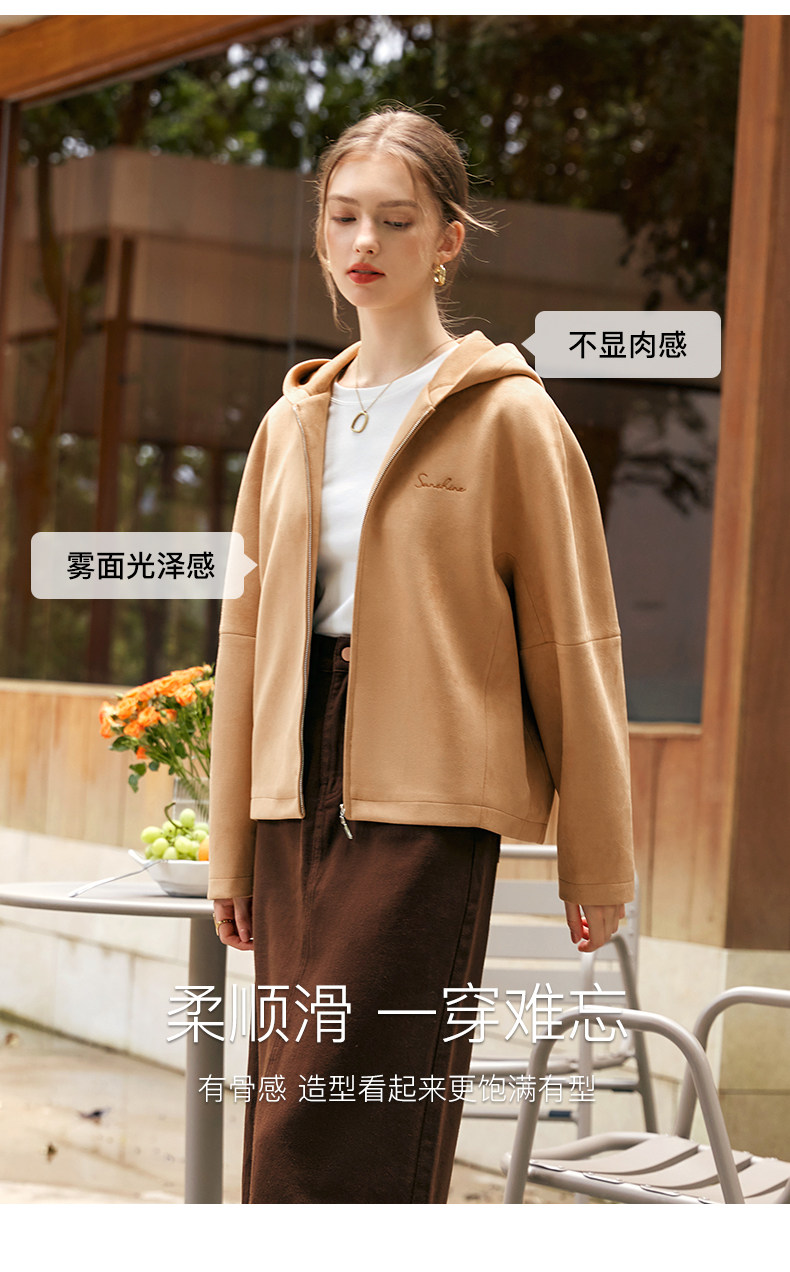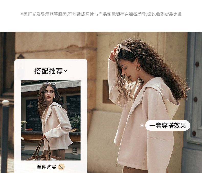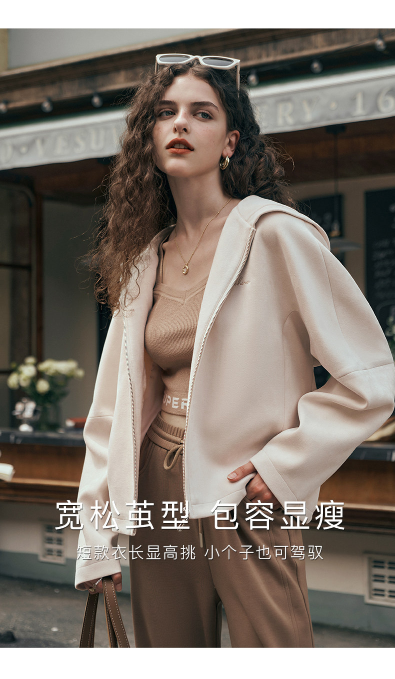 OLrain欧芮儿白色短外套女初秋2023年新款连帽休闲百搭宽松上衣