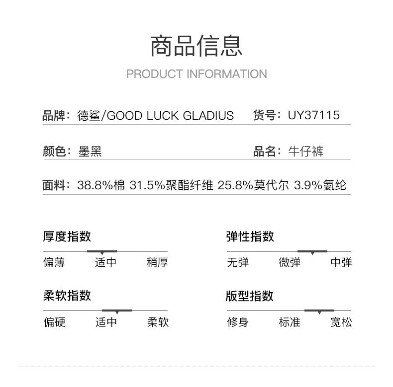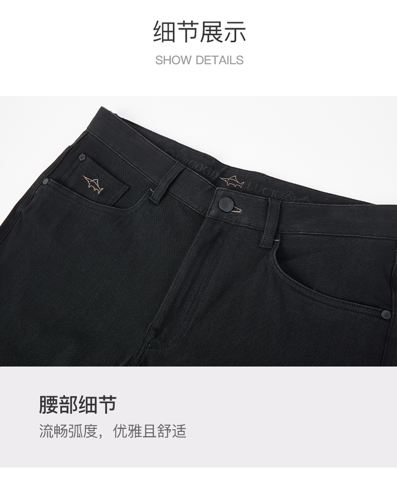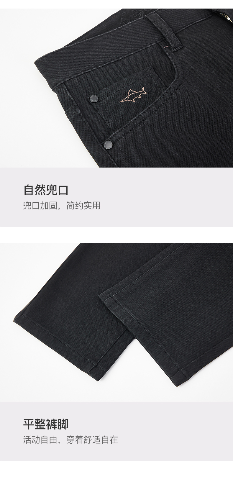 【莫代尔】德鲨夏新款黑色牛仔裤男青年直筒弹力裤子长裤