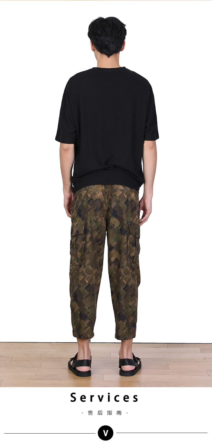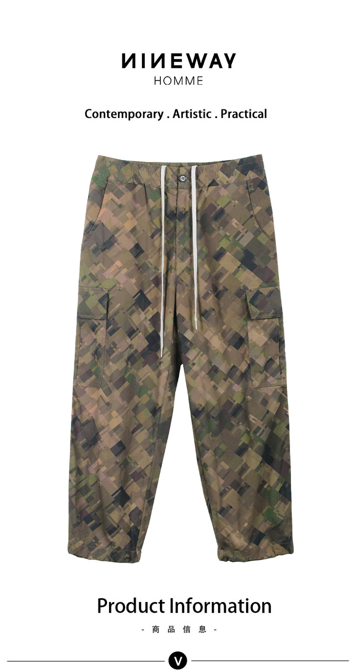NINEWAY 013U42 新款全棉迷彩绿格纹多袋休闲工装裤
