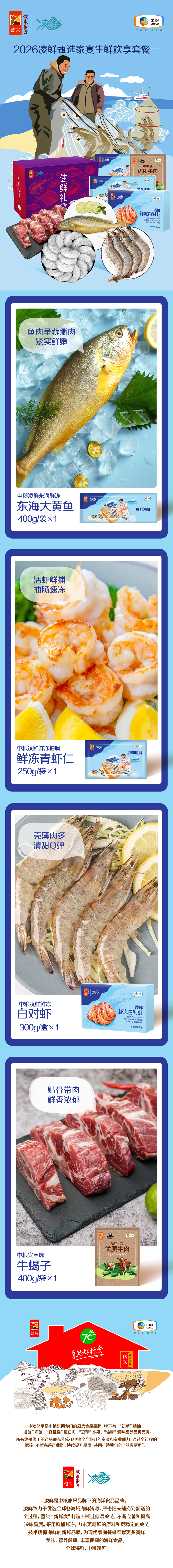 【分仓直发包邮】2026中粮凌鲜甄选家宴生鲜欢享套餐一(生鲜冻品收到货后请及时放入冰箱储存,如在运输过程中有解冻属正常现象,并不影响品质,请放心食用)