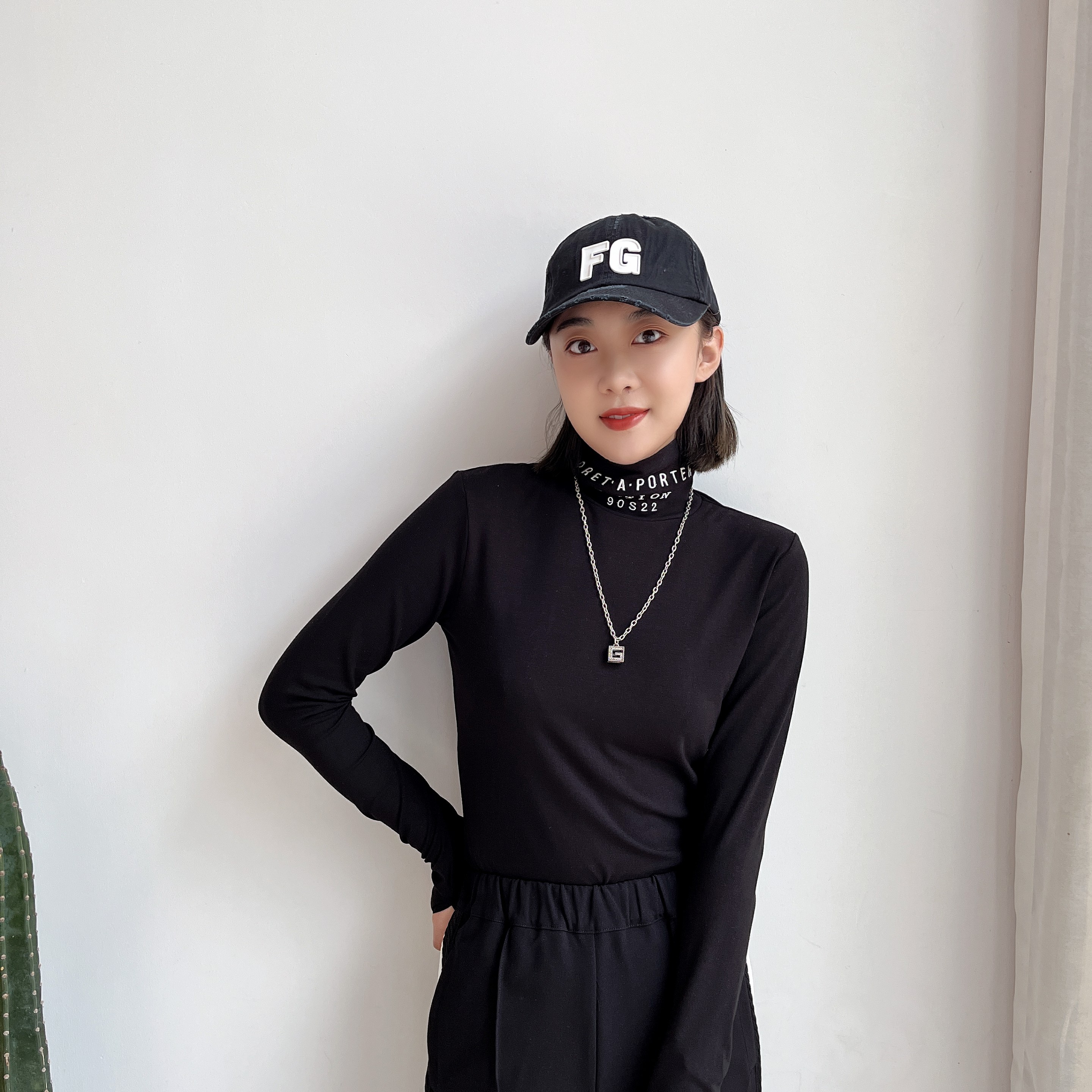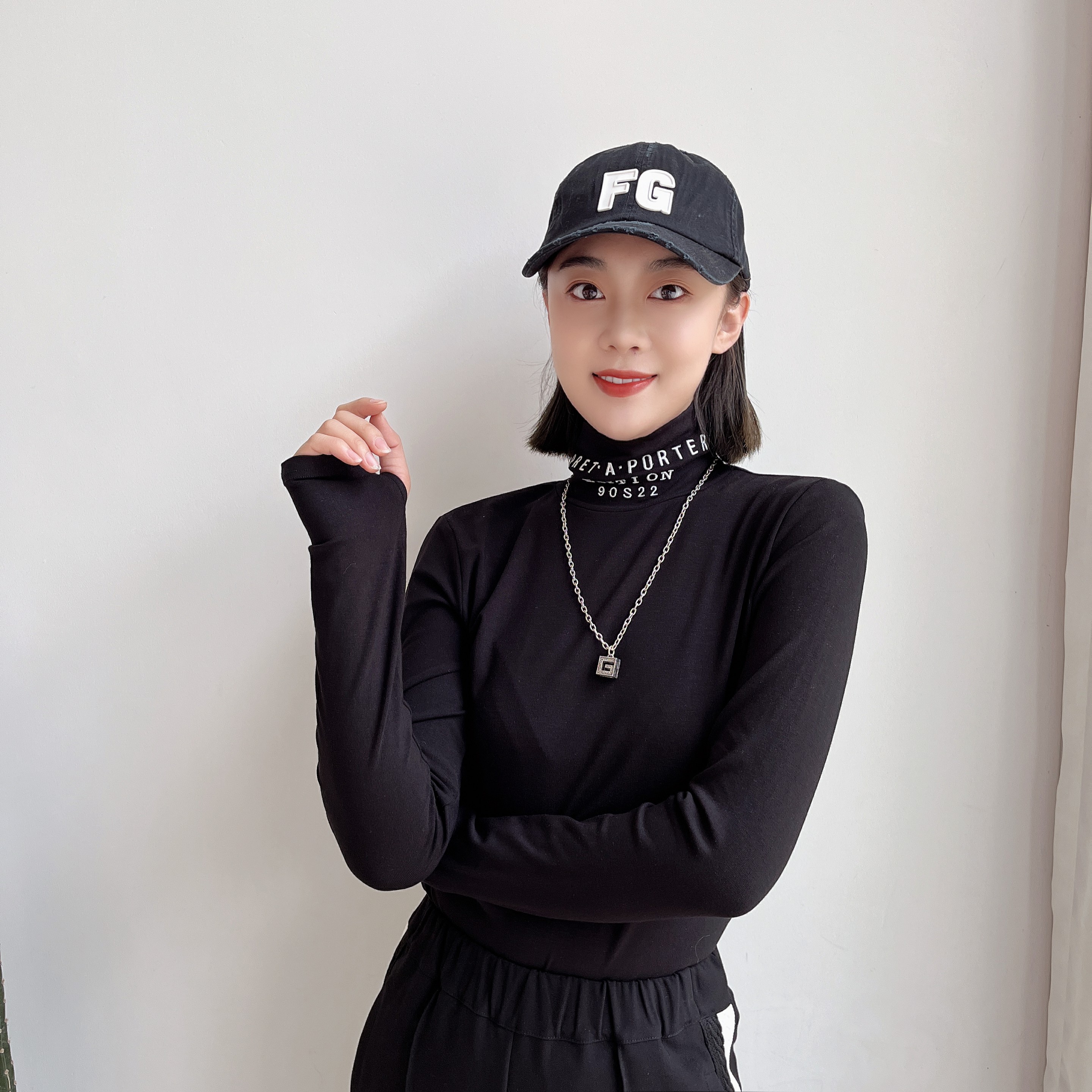 2022早秋新品首发字母刺绣高领简约修身长袖上衣百搭打底衫女