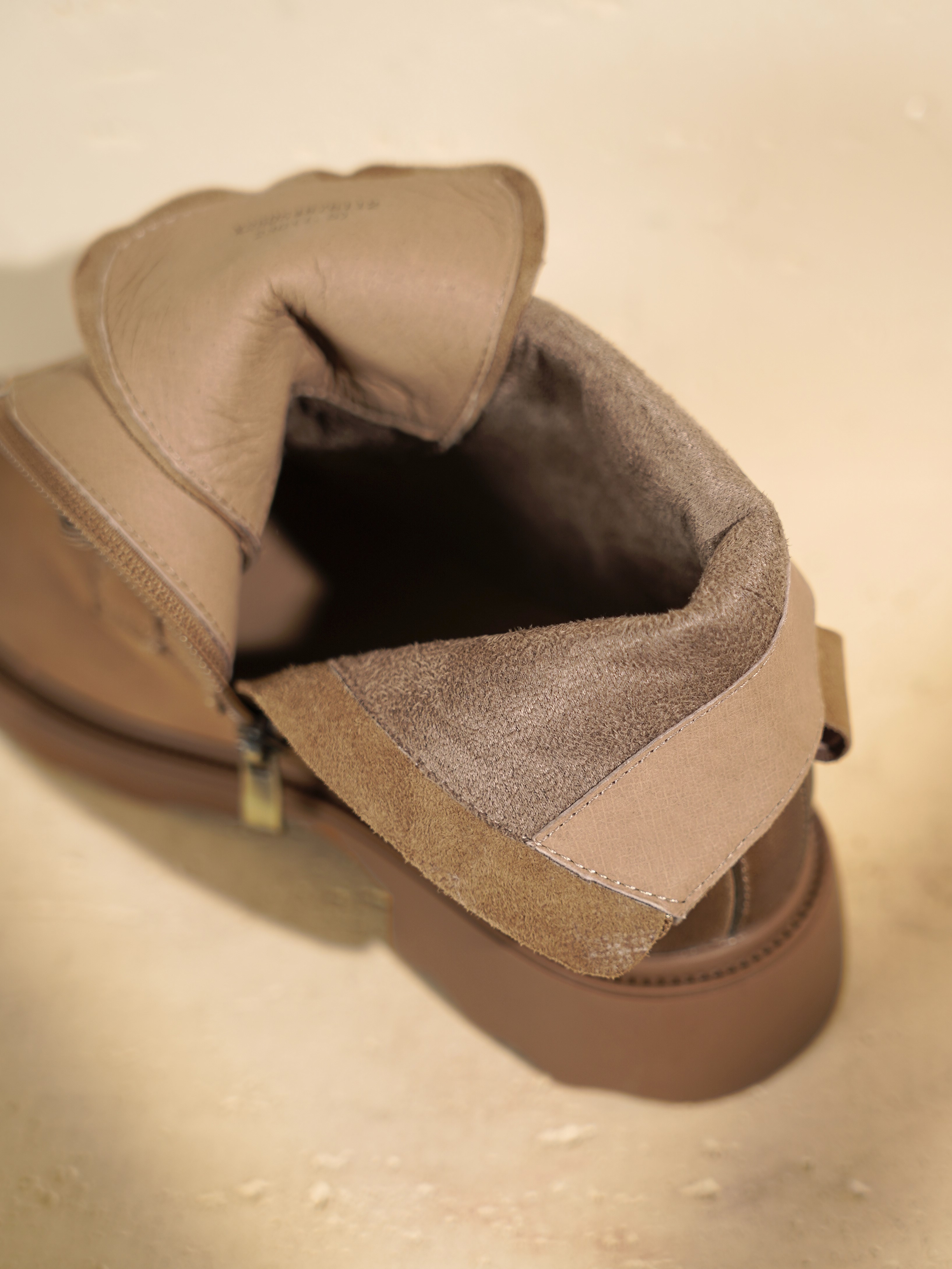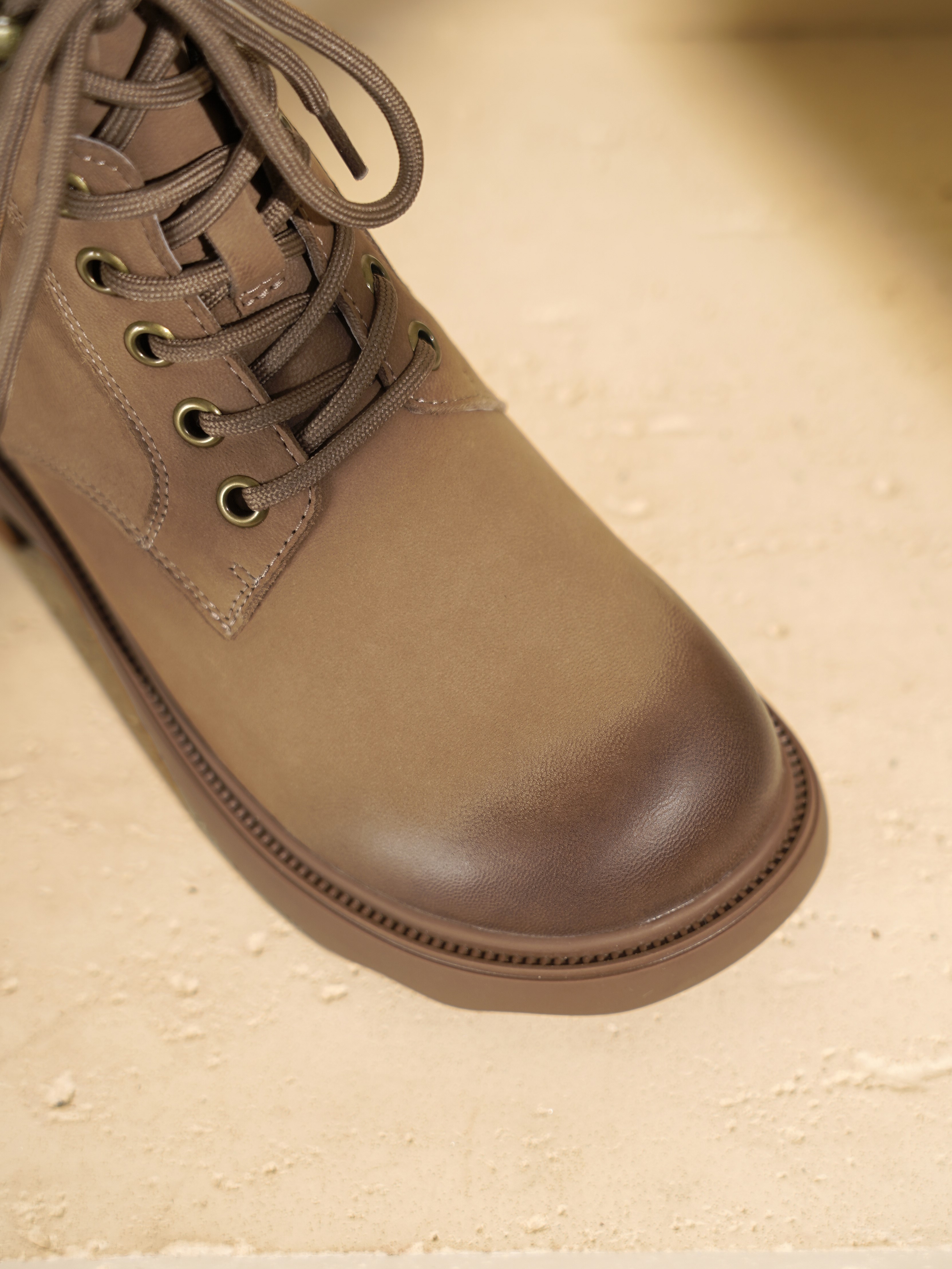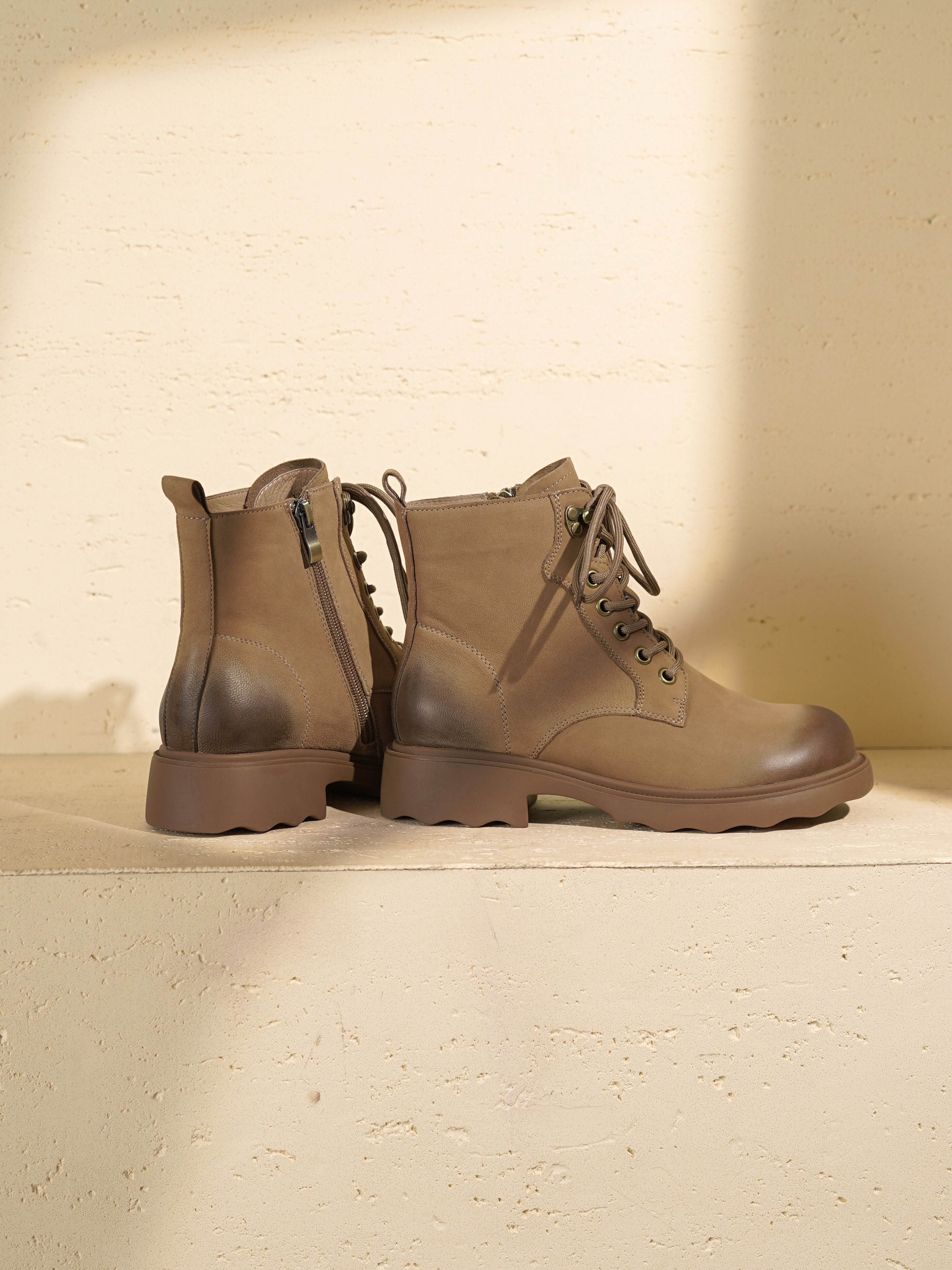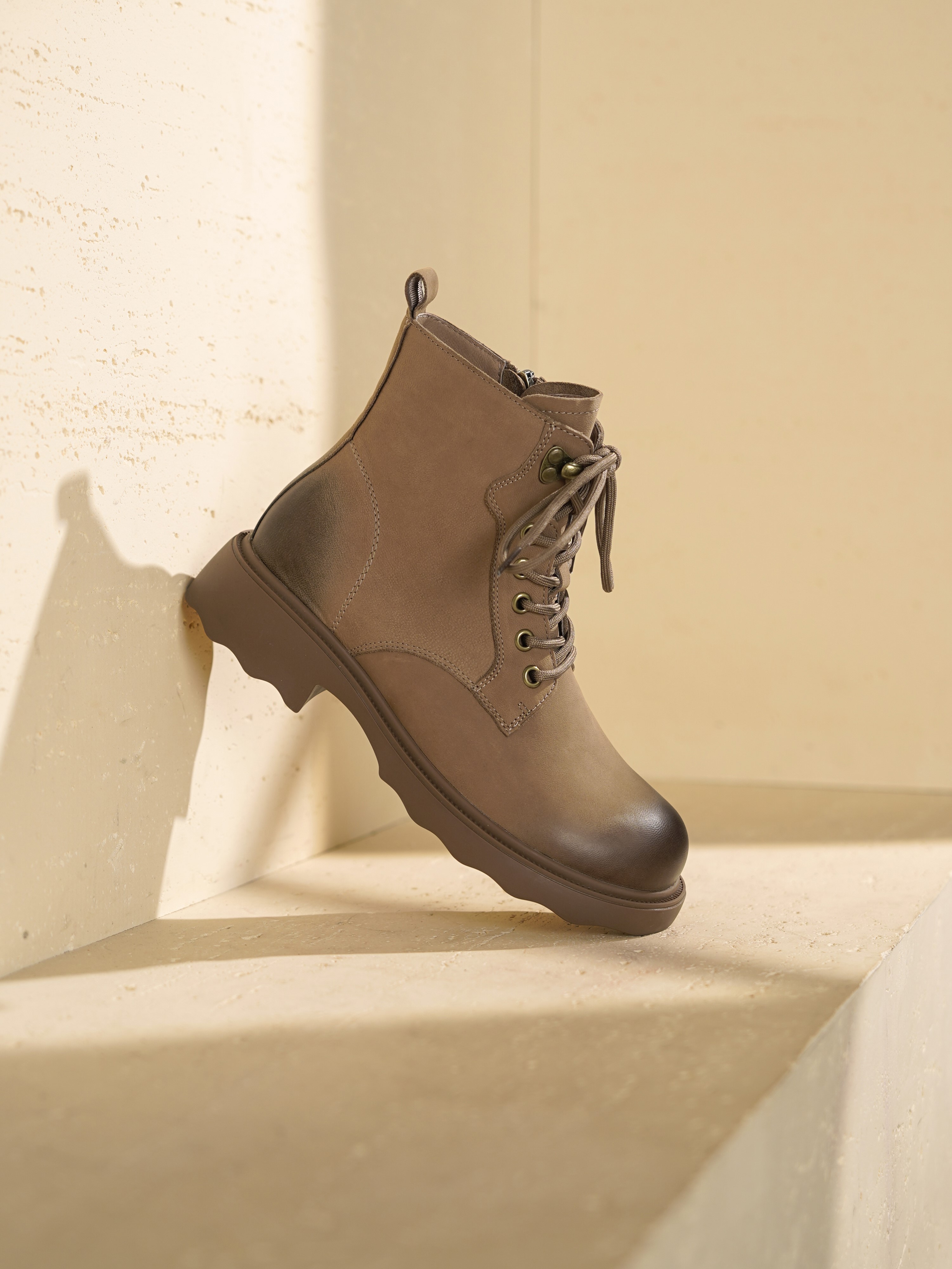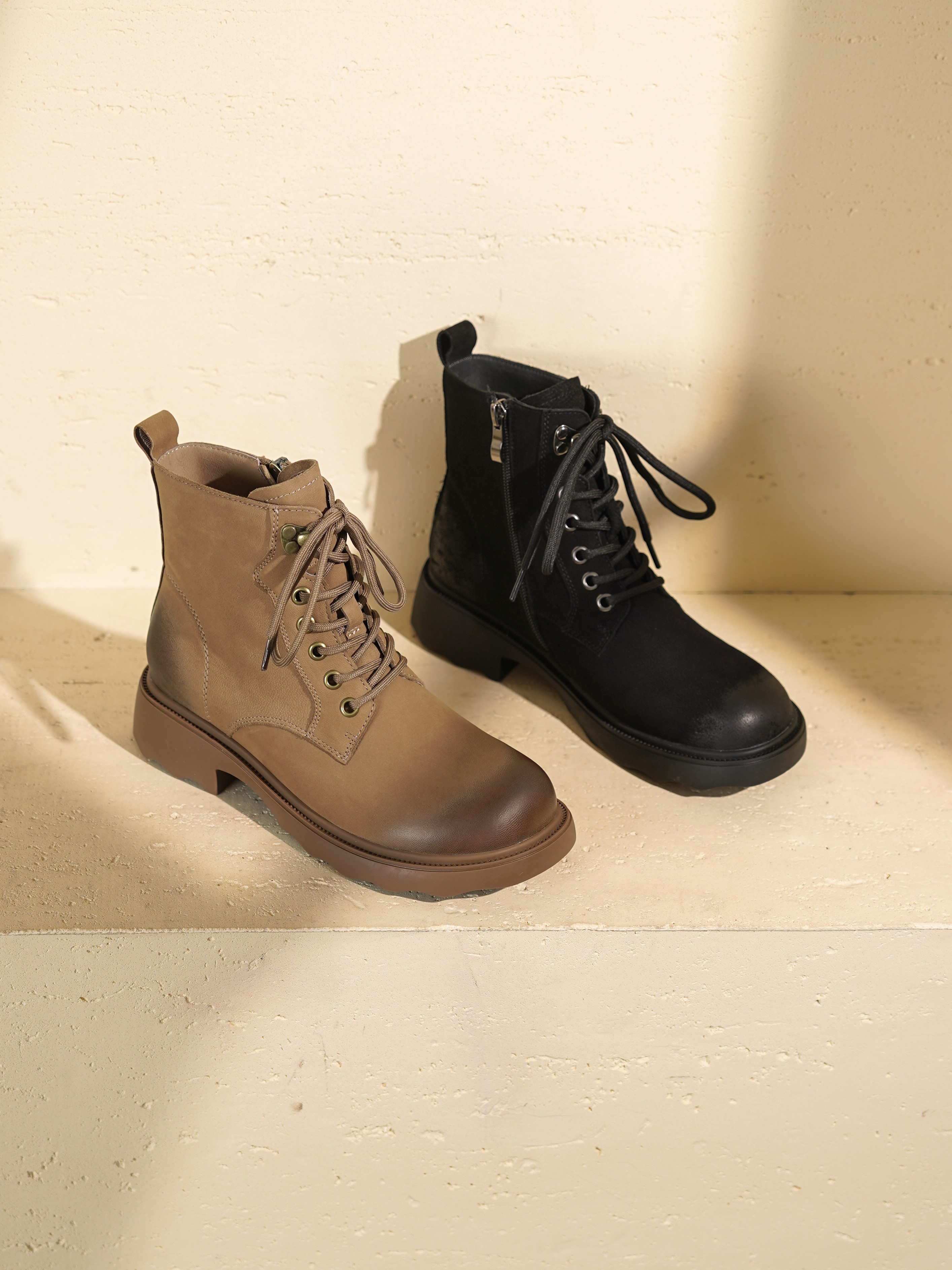 西村名物2025年冬季新款厚底粗跟防滑舒适透气系带真皮内里短靴马丁靴X25DS48761