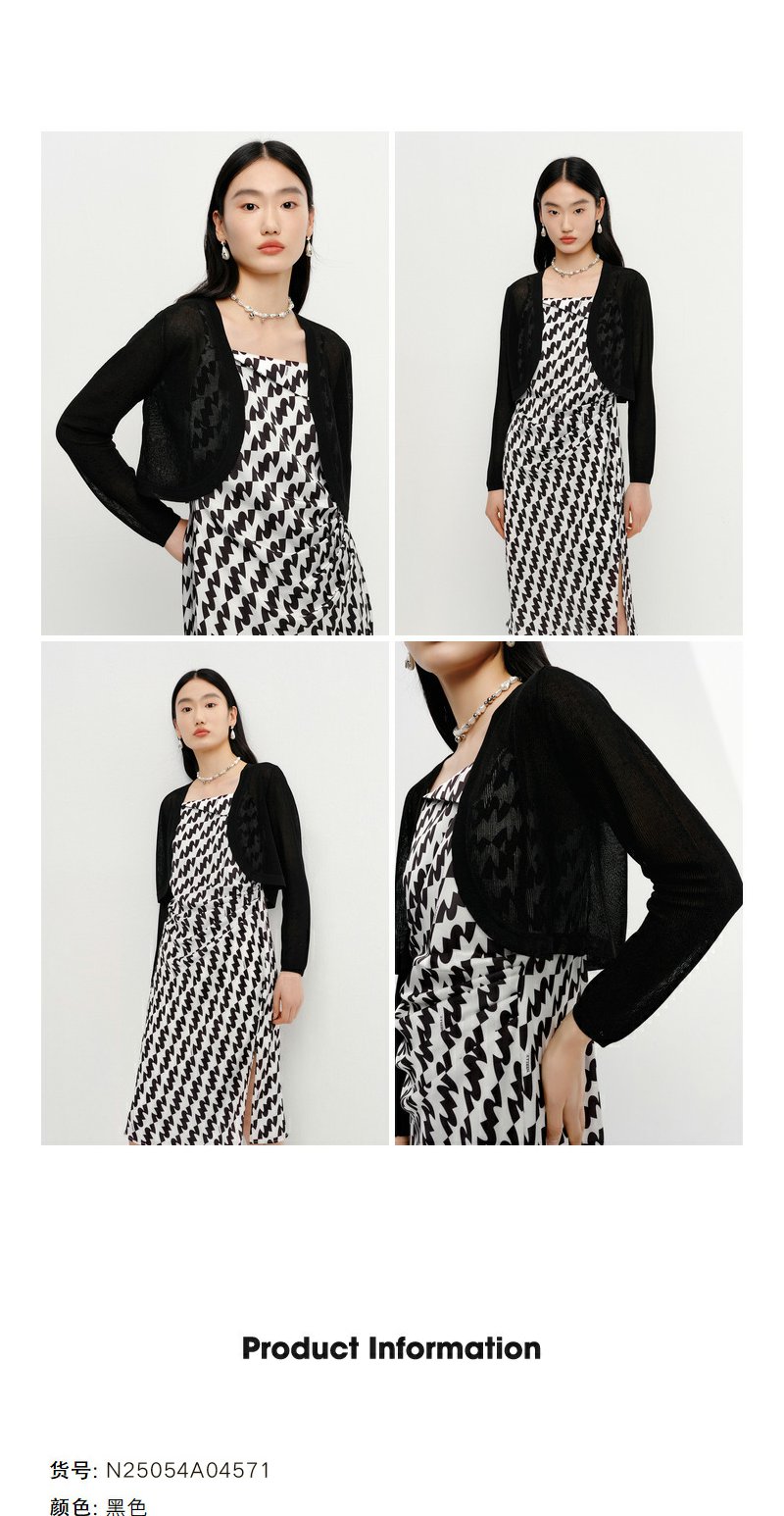 NEELLY纳俪商场同款夏季新款短款透气针织衫女时尚薄款开衫上衣N25054A04571
