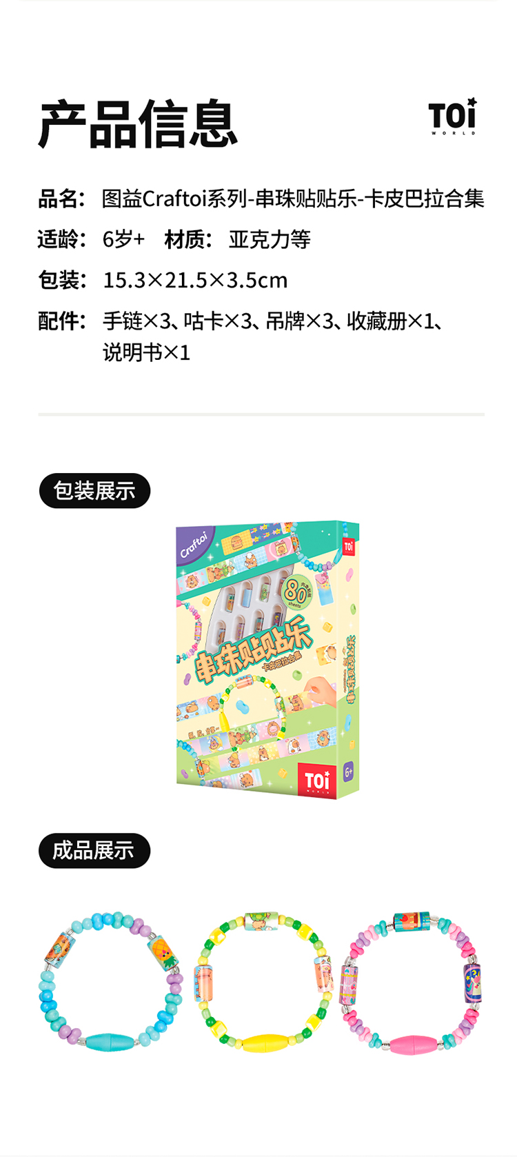 【清仓19.9元】TOI图益儿童串珠手工diy材料卡皮巴拉贴纸手链咕卡套装礼物女6岁