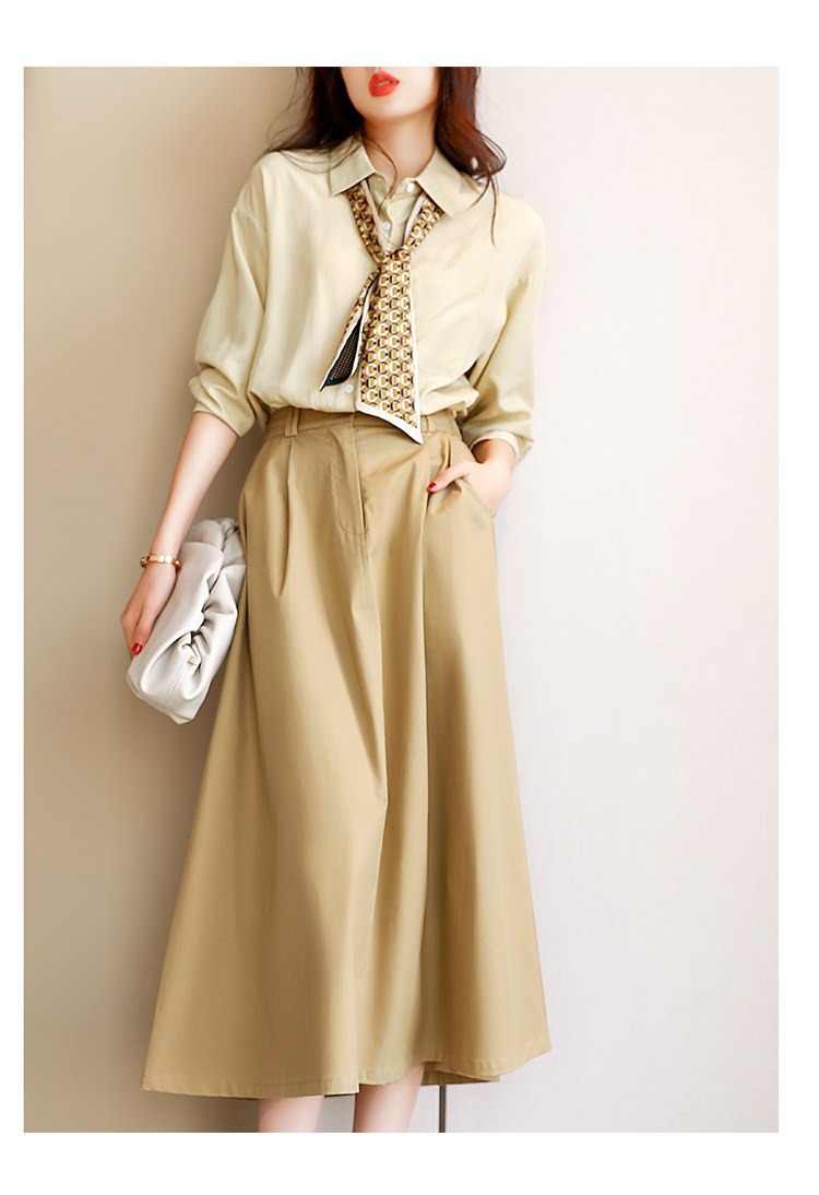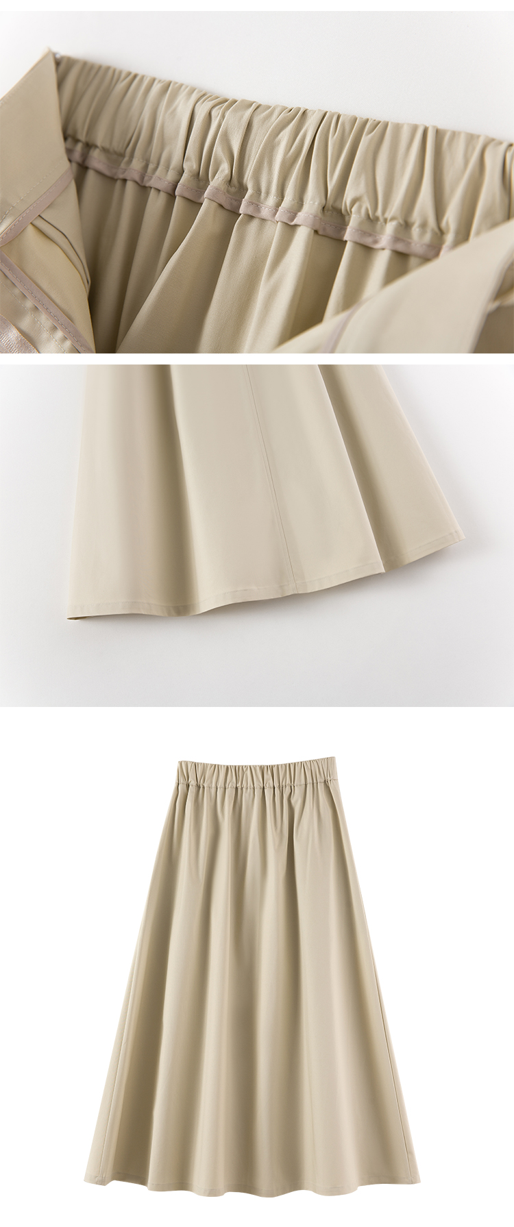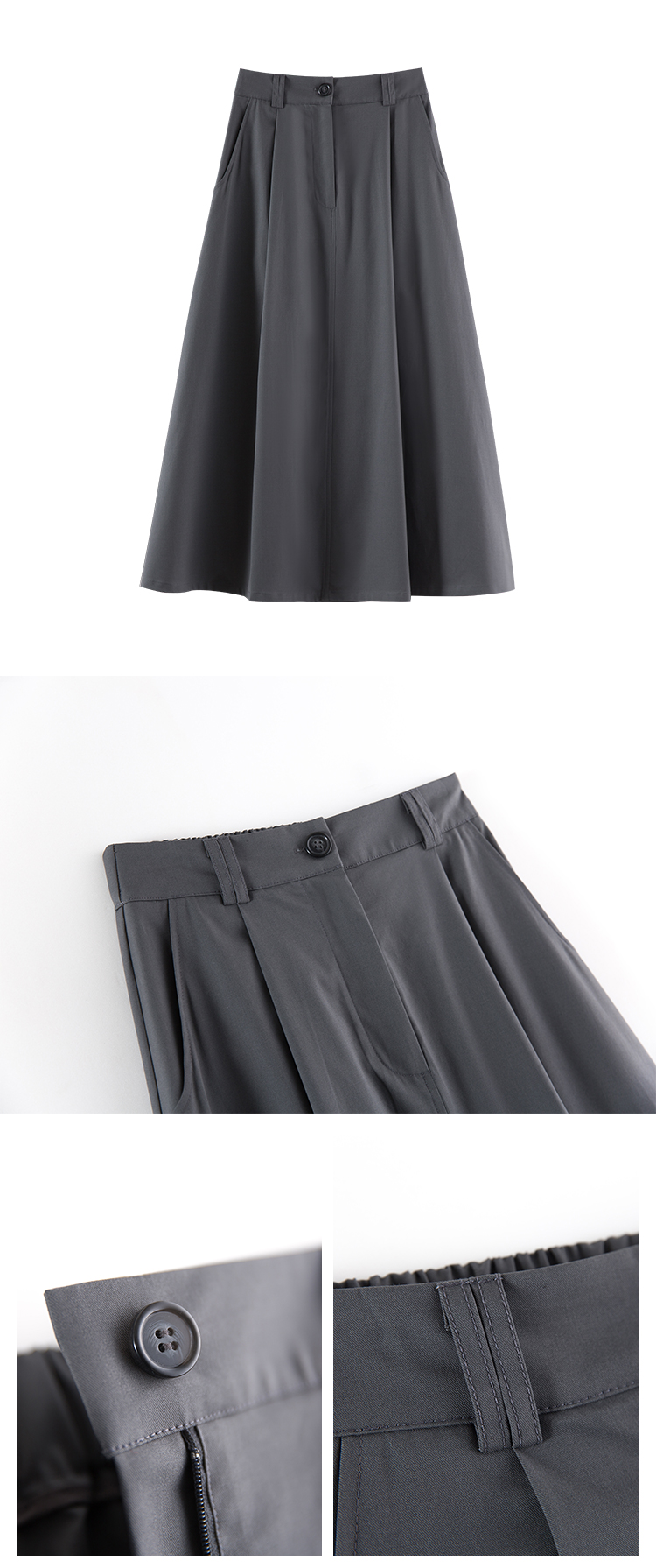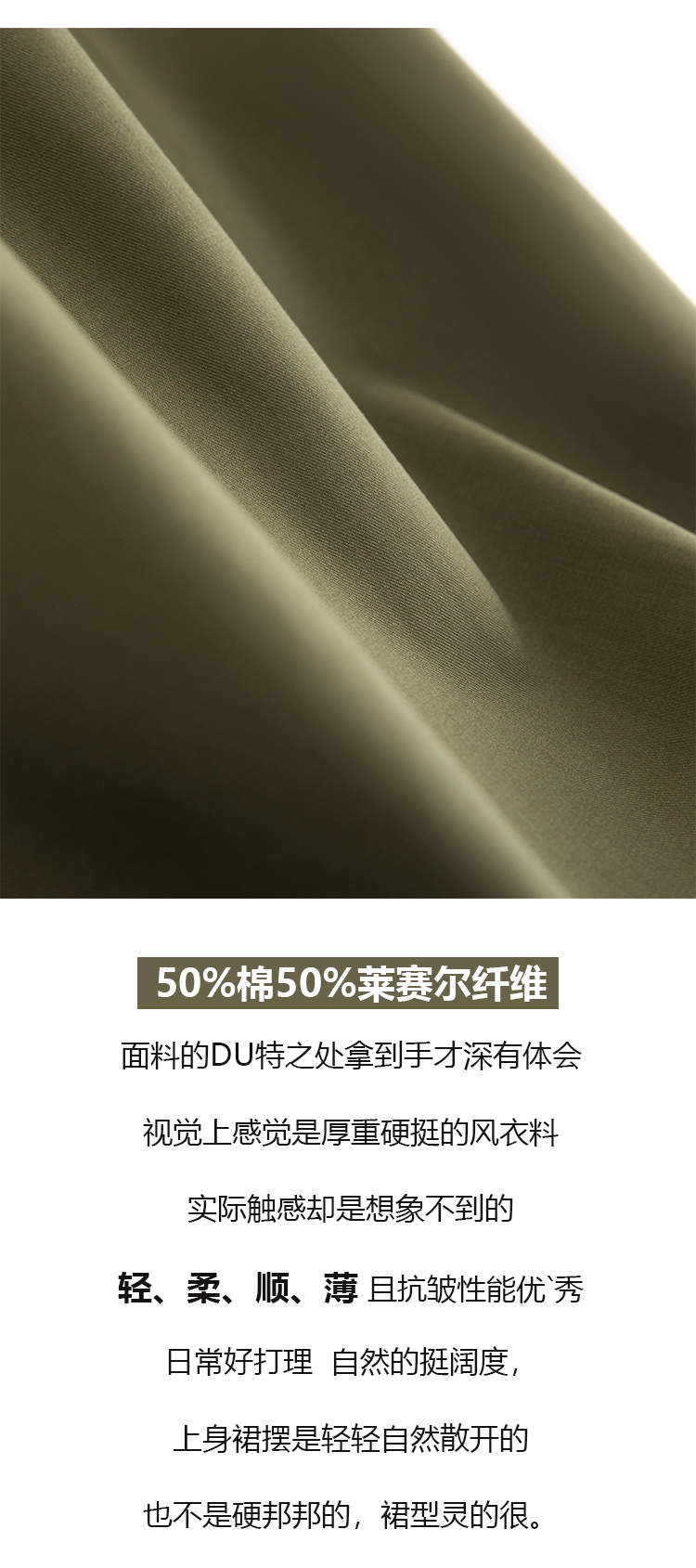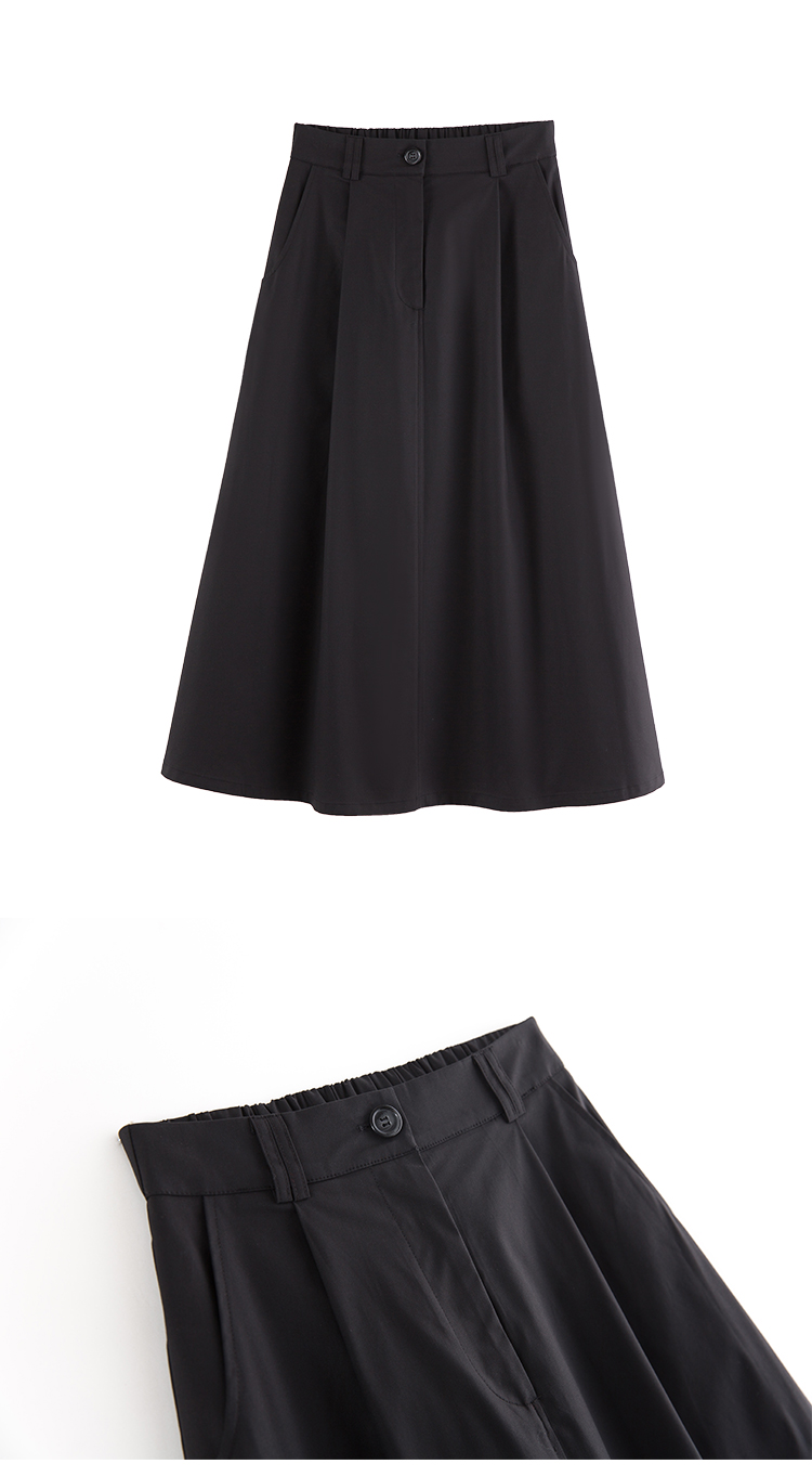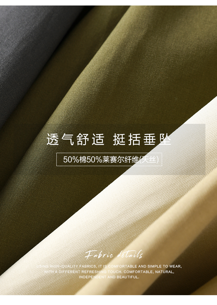 面料采用50%棉与50%天丝质感的碰撞,上身的柔软舒适度兼具一定的挺括性,伞摆的维度就能够随即体现~~!款式很好搭,搭配衬衫、针织开衫、西装都蛮合适的!