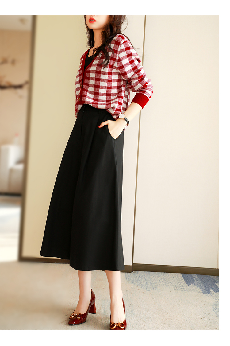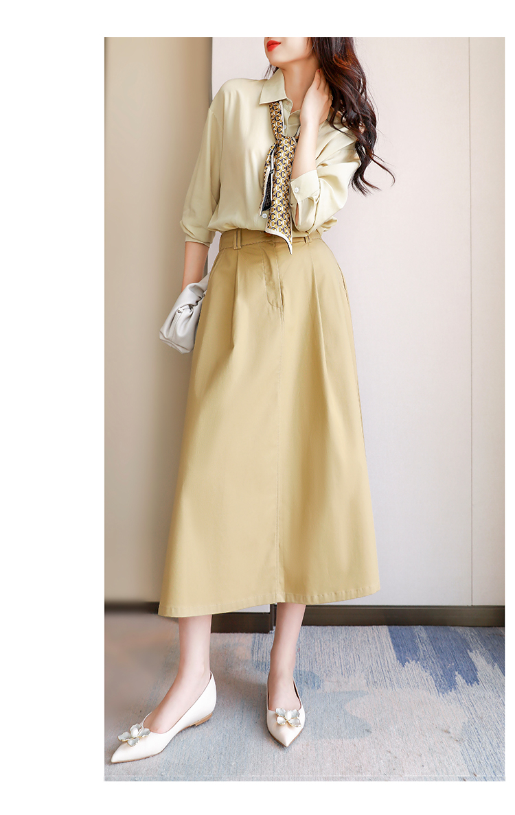 裙子的长度刚好,大概到小腿以下,知性优雅,露出纤细的小腿位置,腰身比勾勒的独特而又精致,给日常通勤以不一样的look~~!