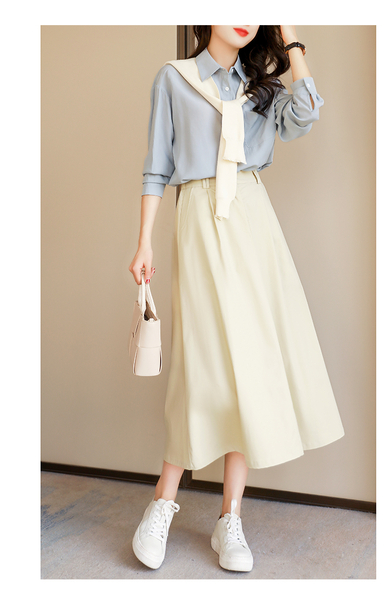 蓝灰色,气质复古!值得拥有的一款半身长裙,职场女孩的本命款~