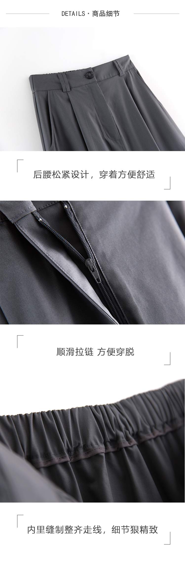 细心的姑娘可以发现腰部设计是蛮特别,后半段是松紧设计,既不挑人穿,侧面看把腰部衬托得很有曲线感,堪称美妙的小细节~~