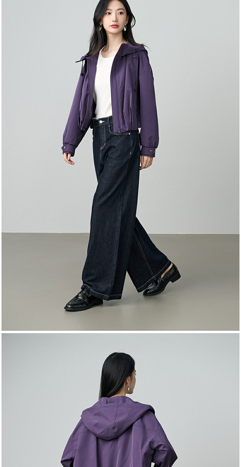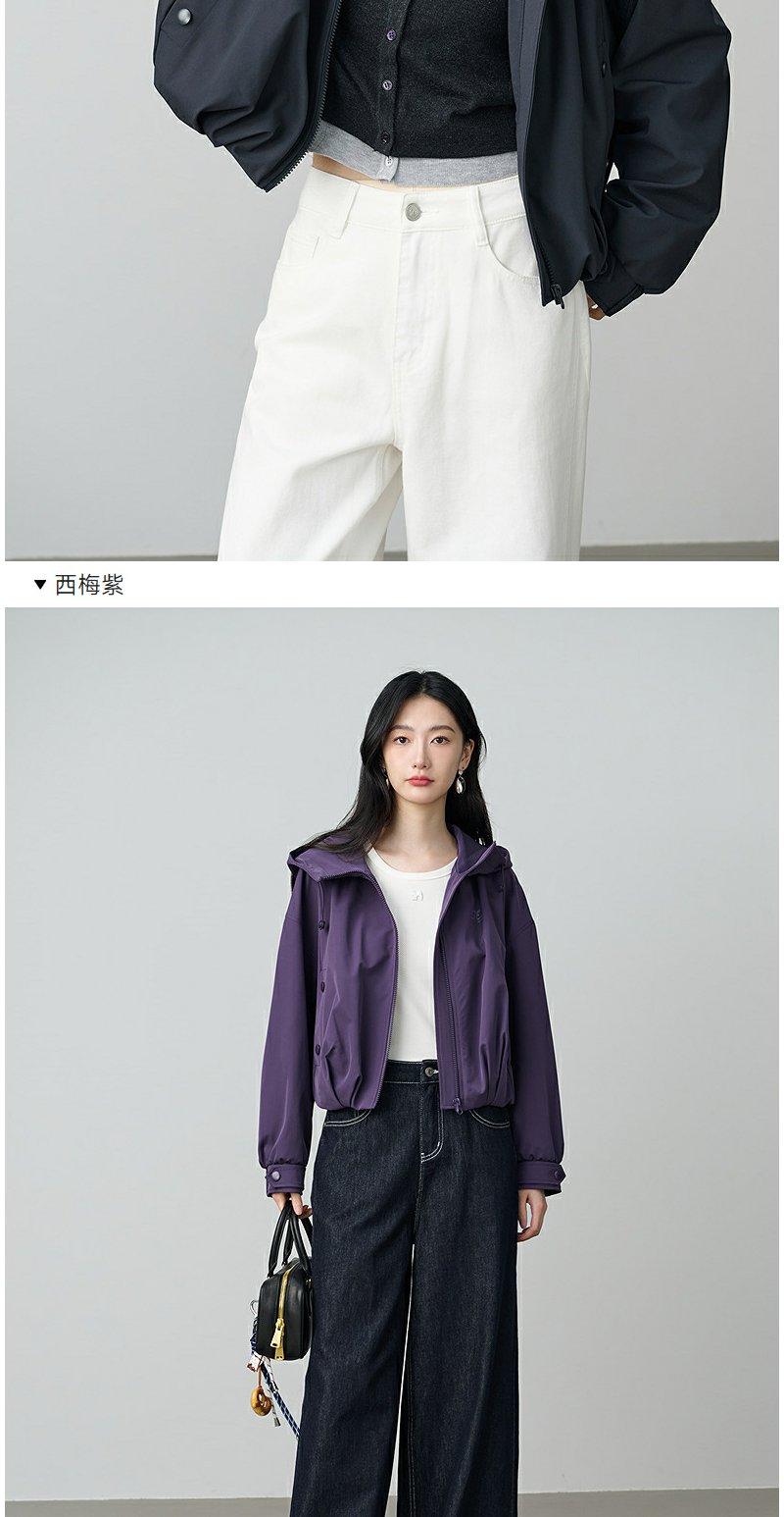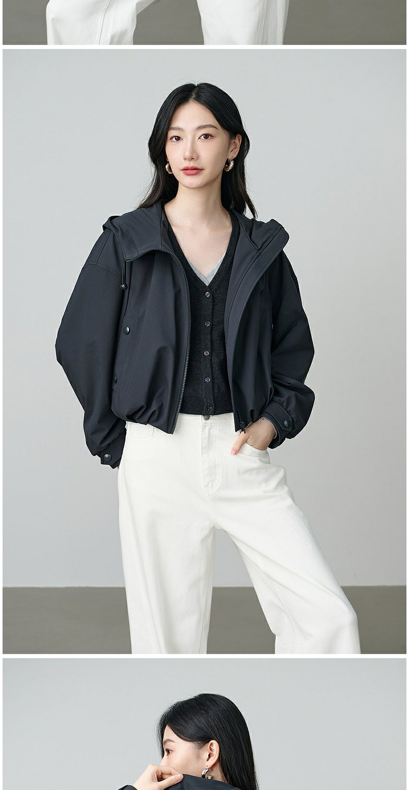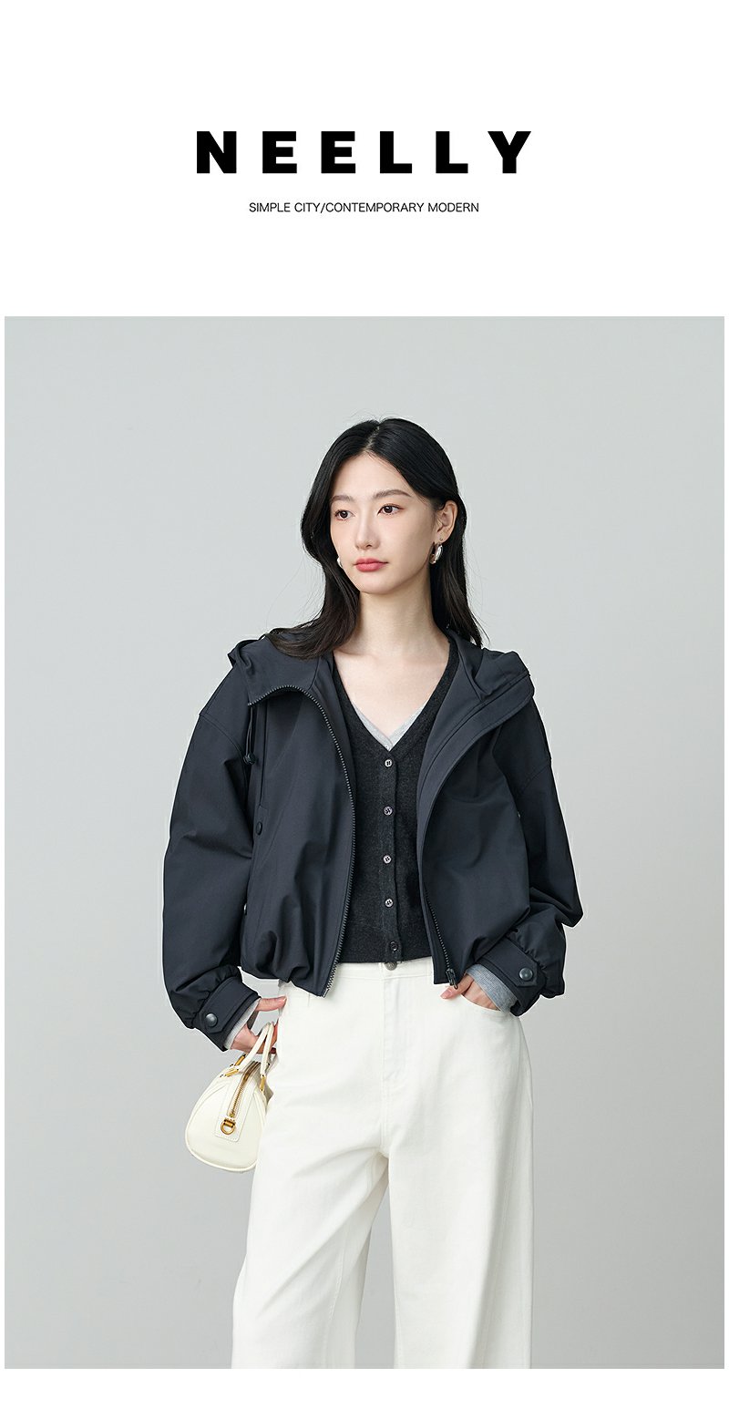 NEELLY纳俪商场同款秋季新款宽松个性短款连帽风衣女廓形显瘦外套N25084F04403