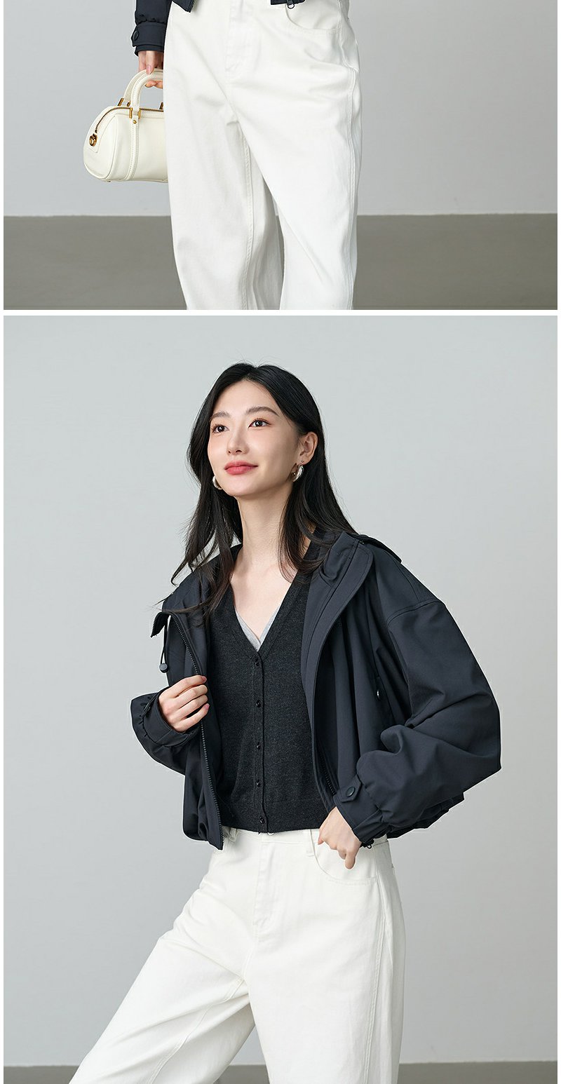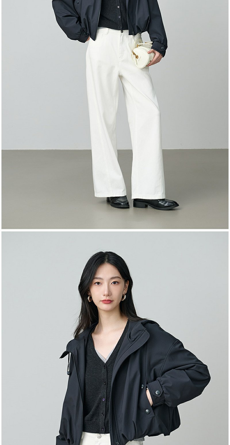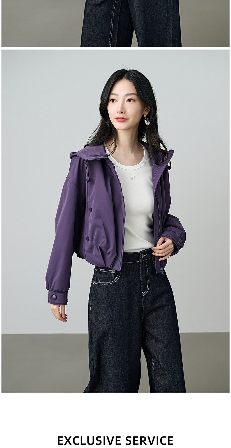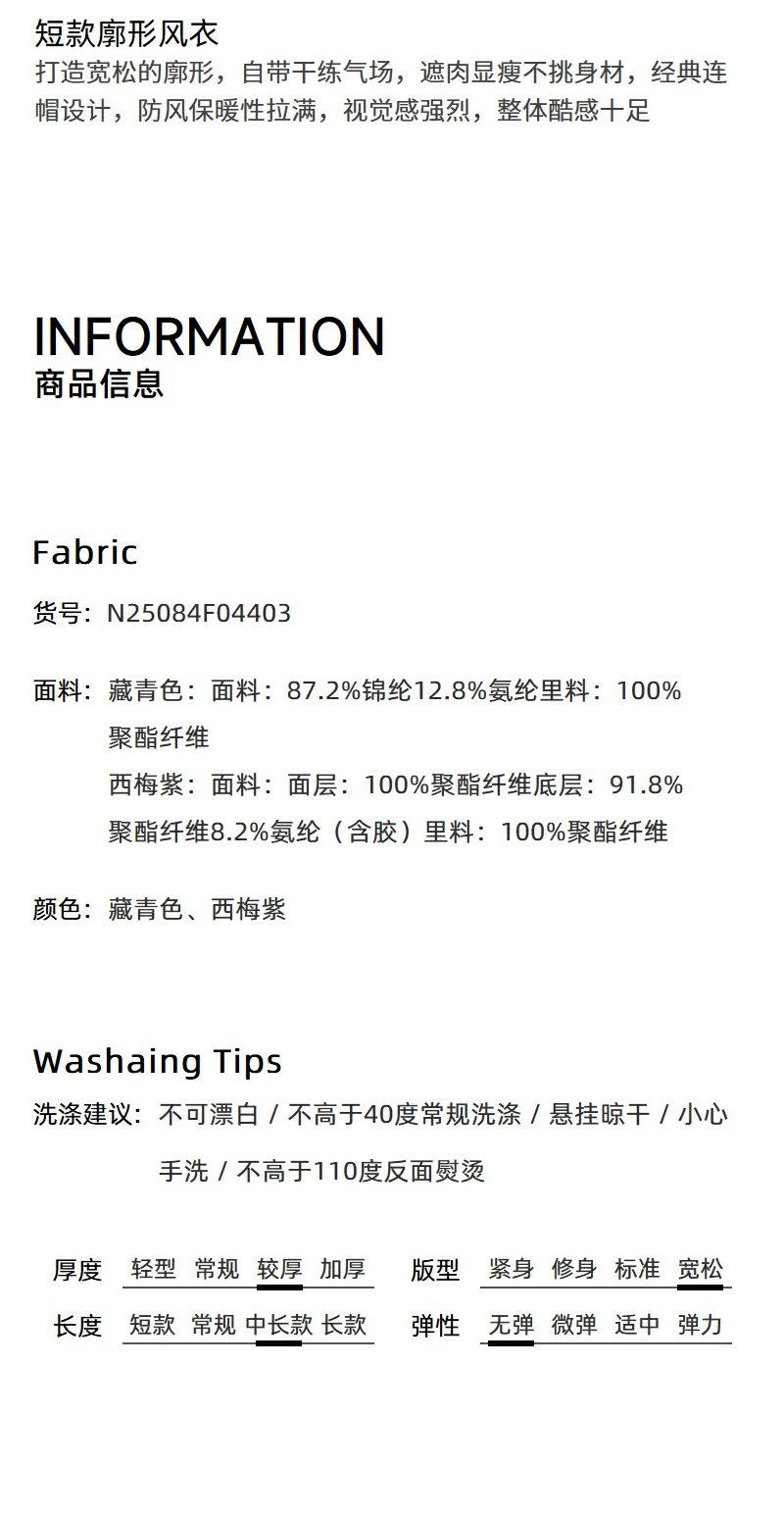 NEELLY纳俪商场同款秋季新款宽松个性短款连帽风衣女廓形显瘦外套N25084F04403