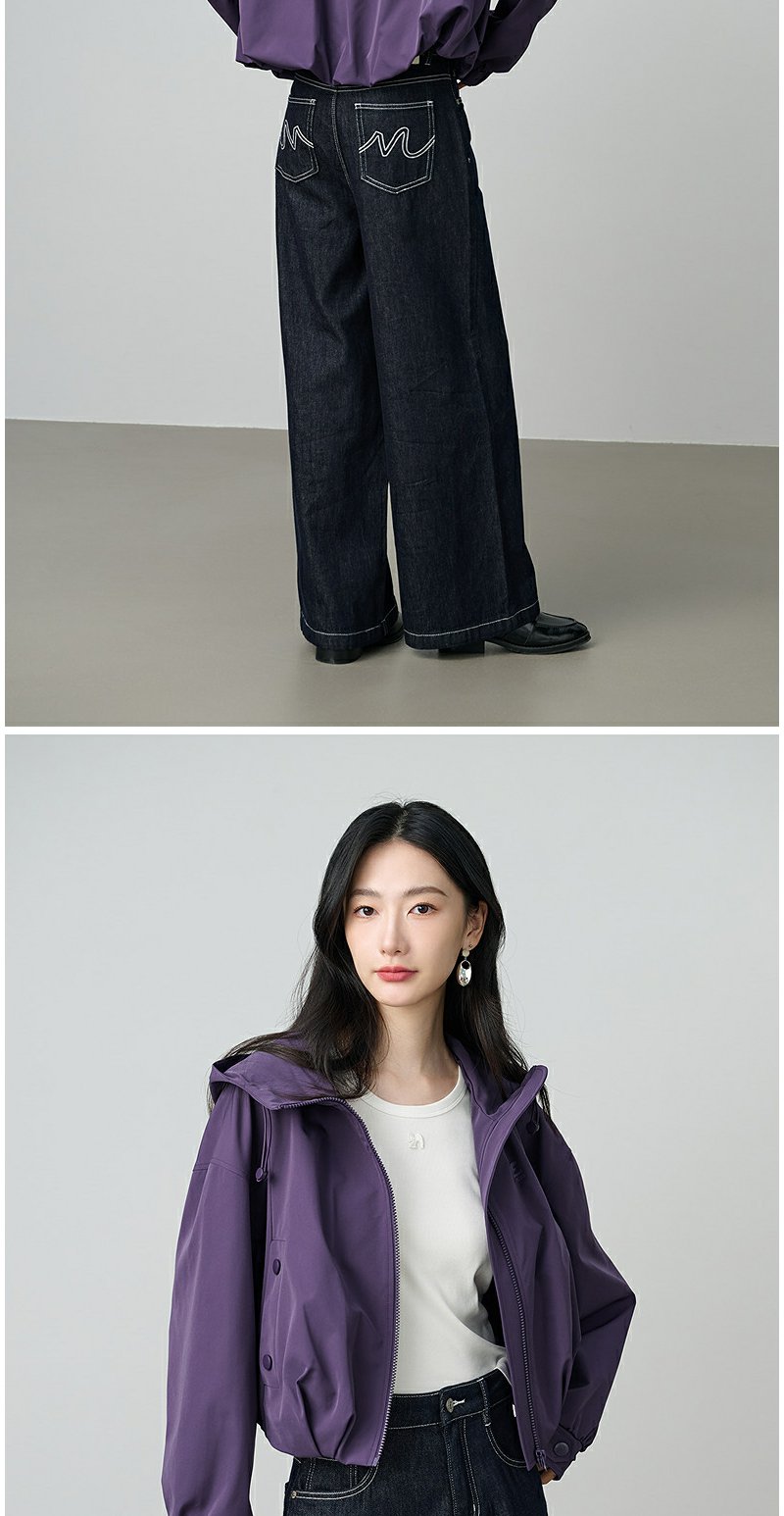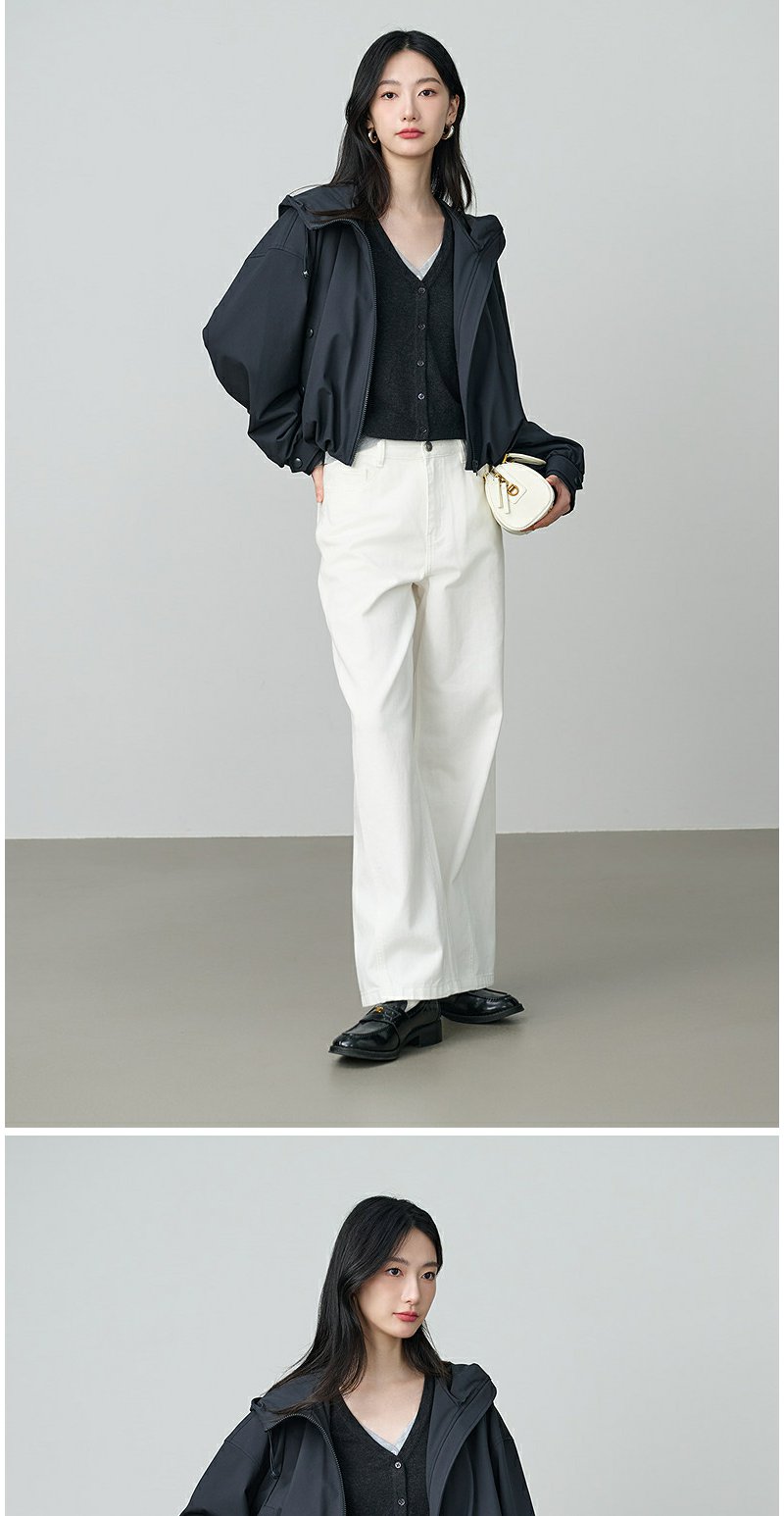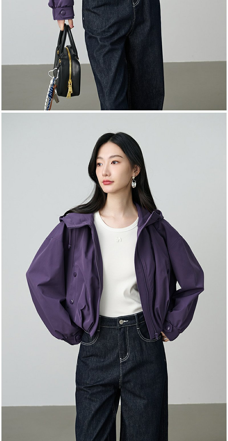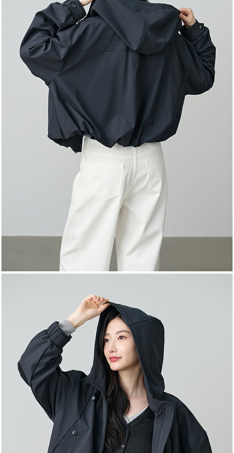 NEELLY纳俪商场同款秋季新款宽松个性短款连帽风衣女廓形显瘦外套N25084F04403