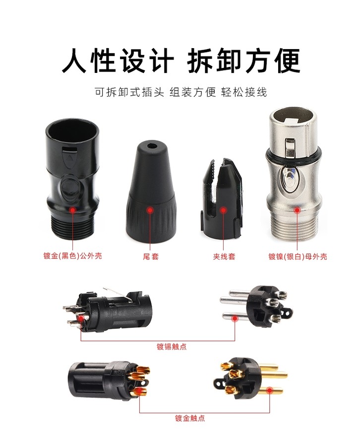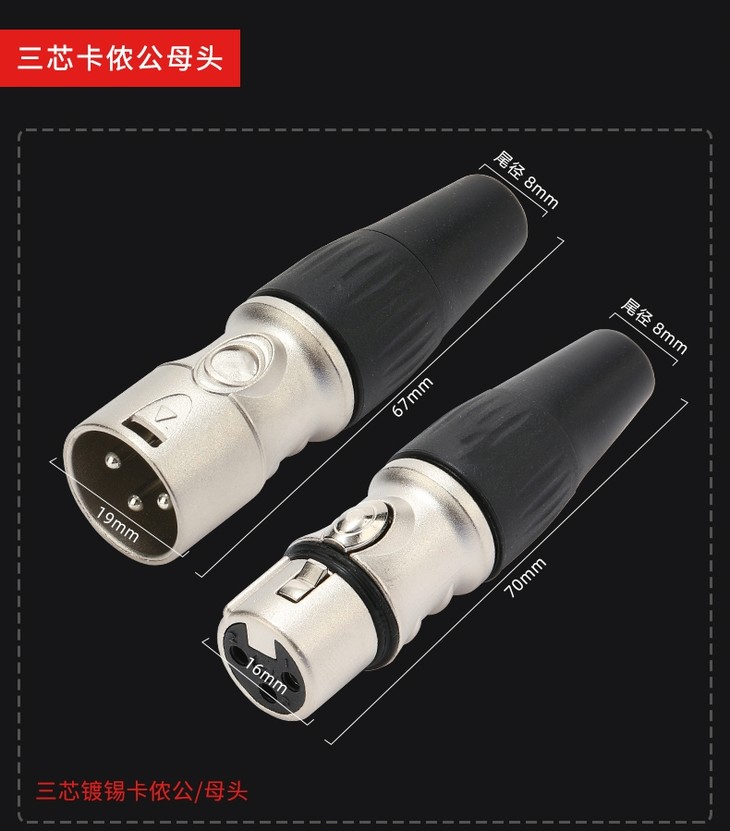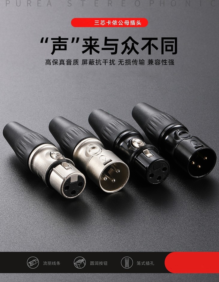 商品名称:3三芯卡农接麦克风话筒音频信号转接插头XLR平衡头 卡侬头 卡农插头 卡龙头 卡隆头 话筒头 音频头 音响头 音频平衡接功放调音台等音响工程