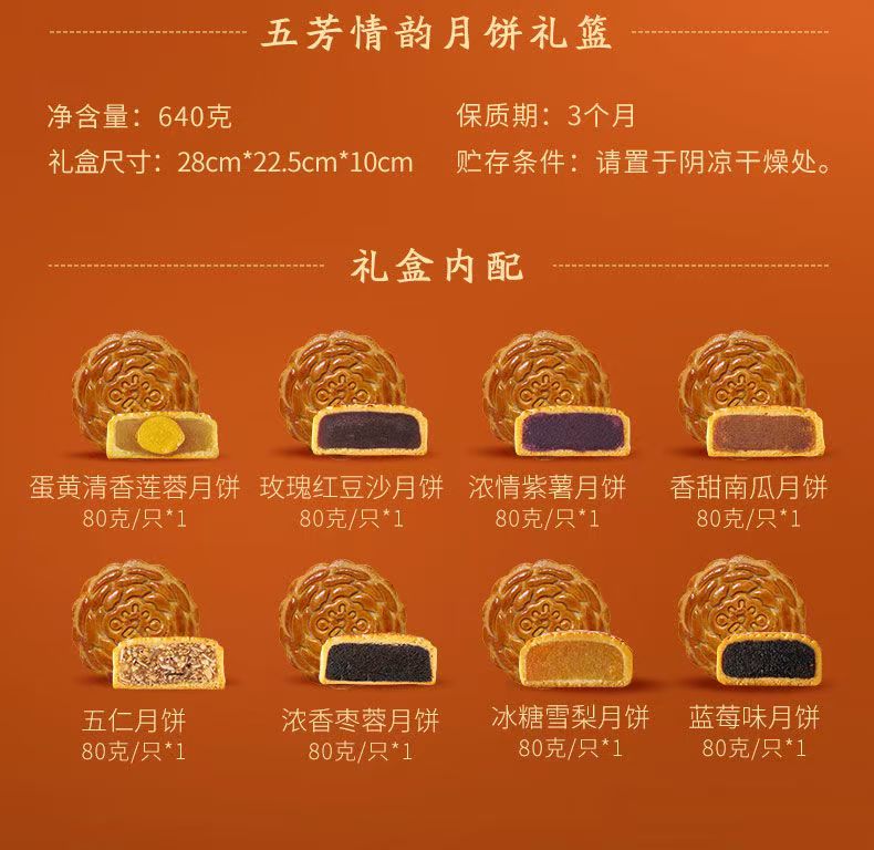 五芳斋情韵月饼礼篮【8饼8味640g】广式月饼中秋送礼