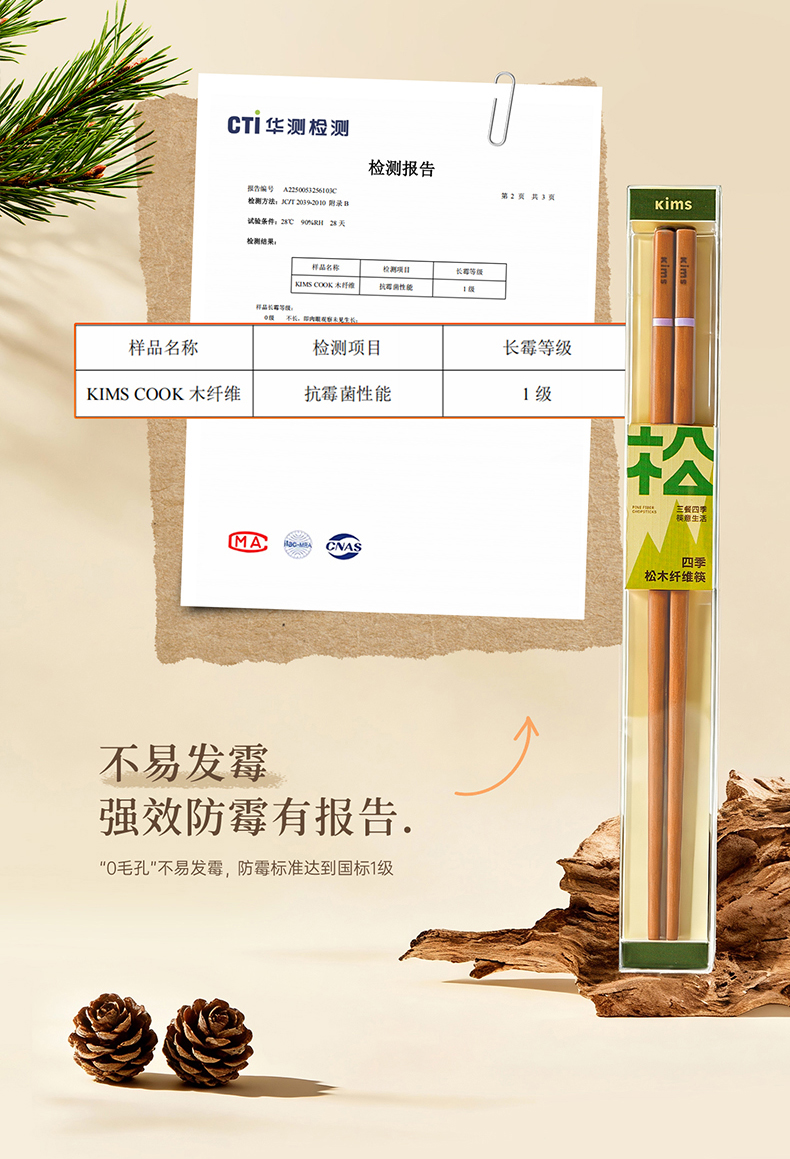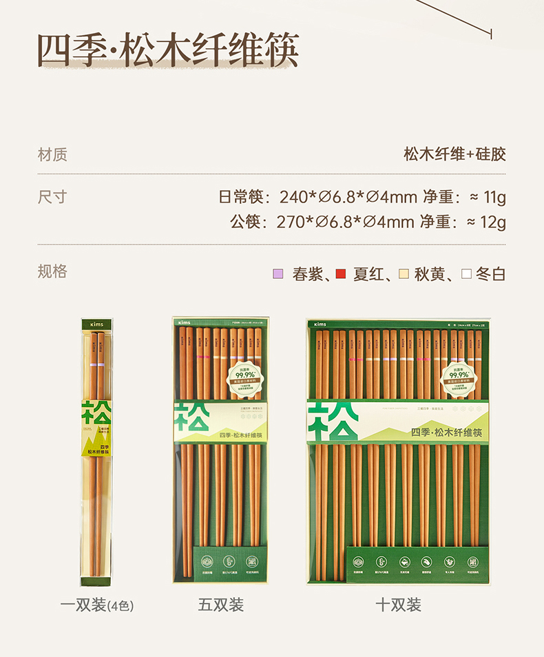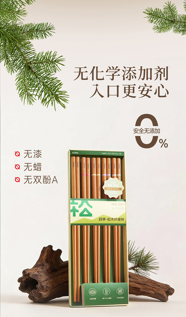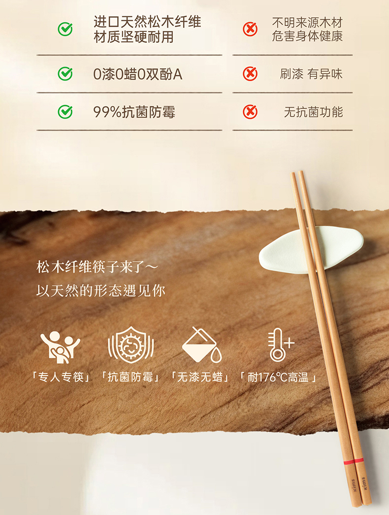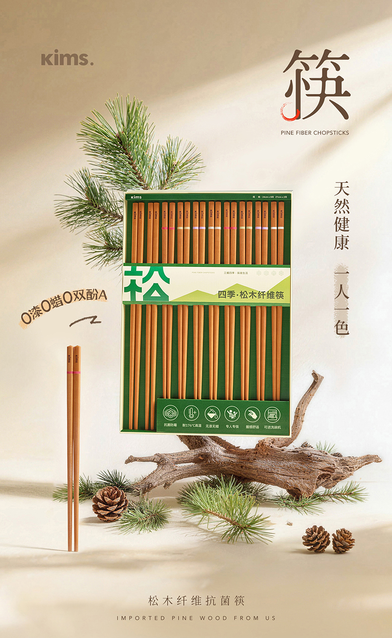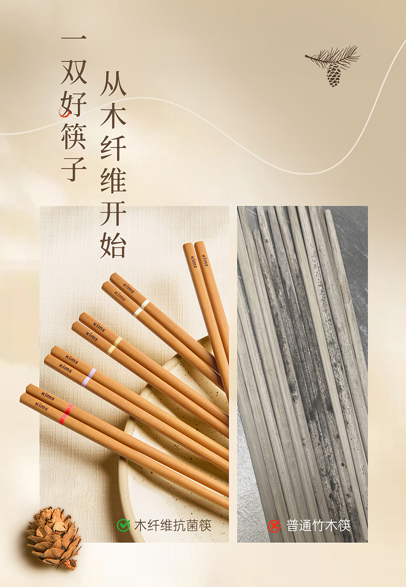 Kimscook松木纤维筷子家用高档抗菌防霉耐高温油炸防滑2026新款
