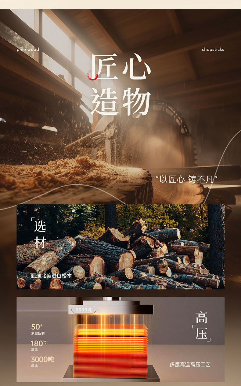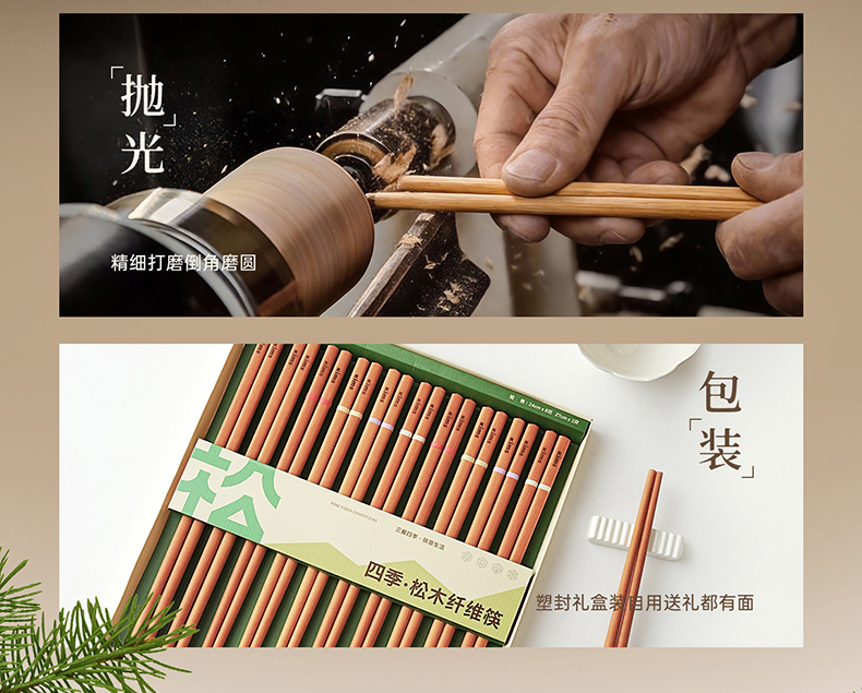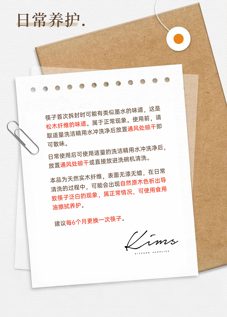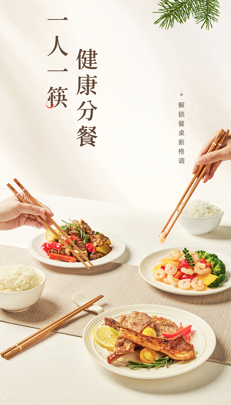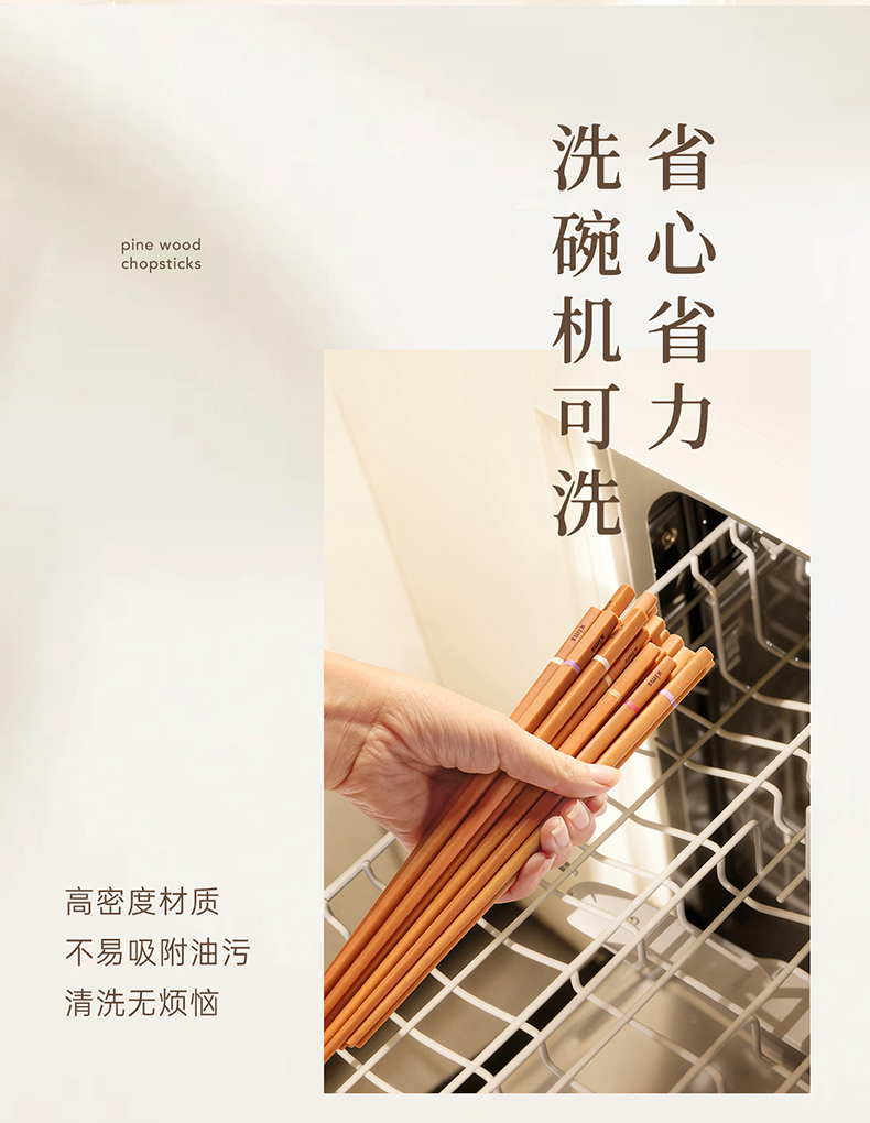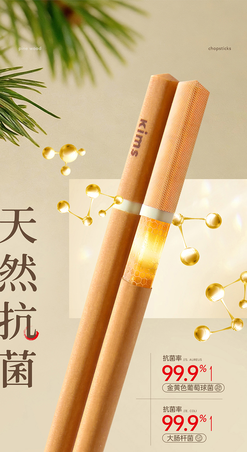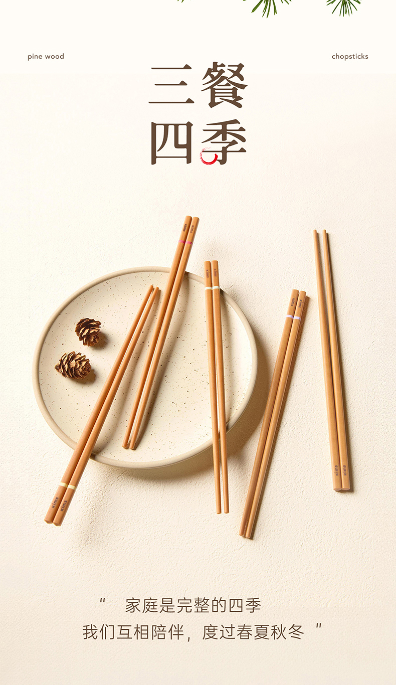 Kimscook松木纤维筷子家用高档抗菌防霉耐高温油炸防滑2026新款