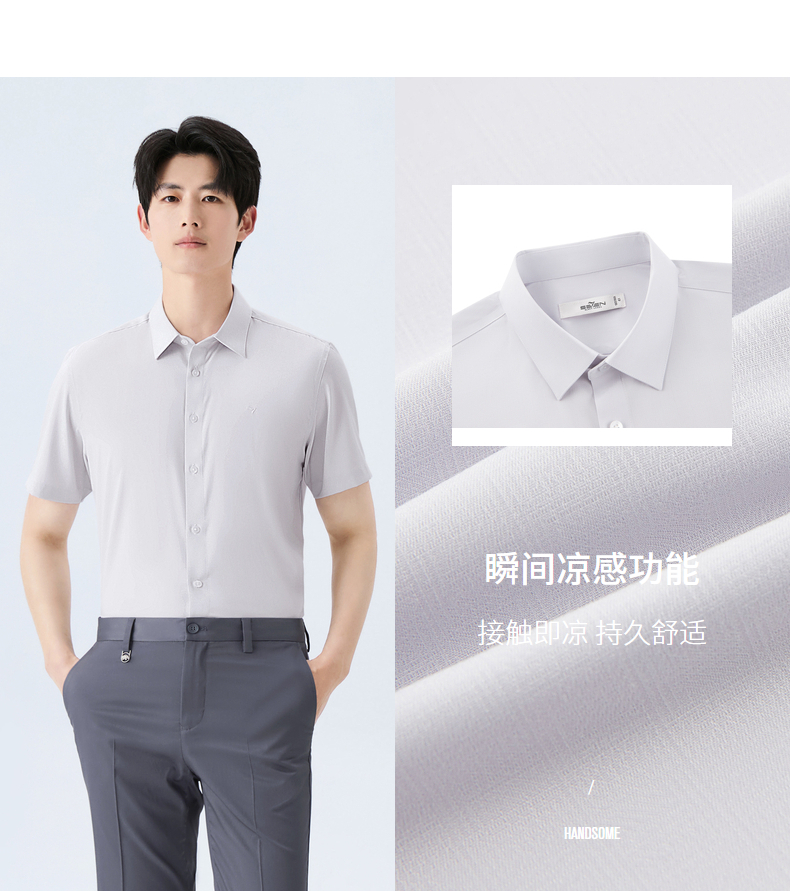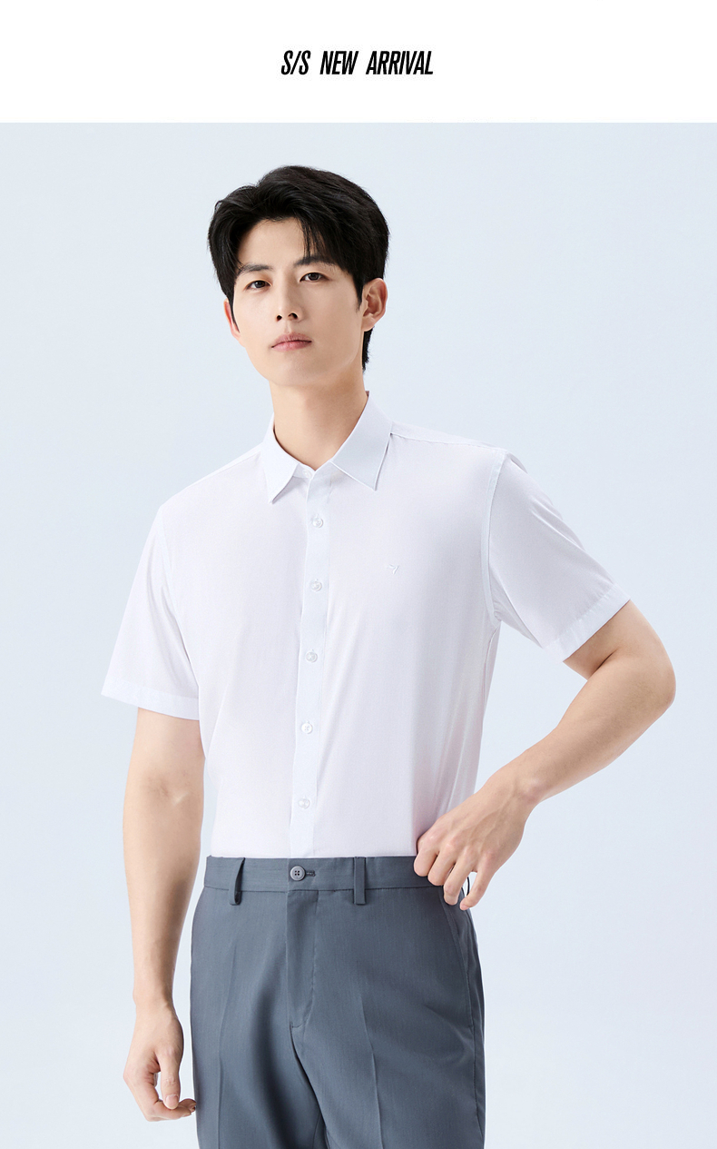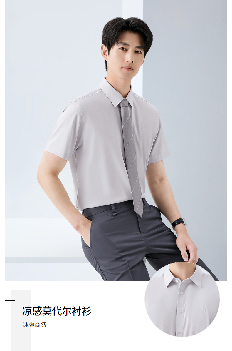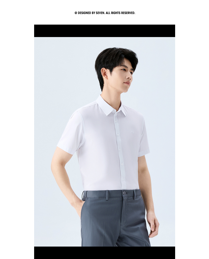 【瞬间凉感】柒牌男装2026夏季新品几何肌理含莫代尔商务短袖衬衫 130A70470