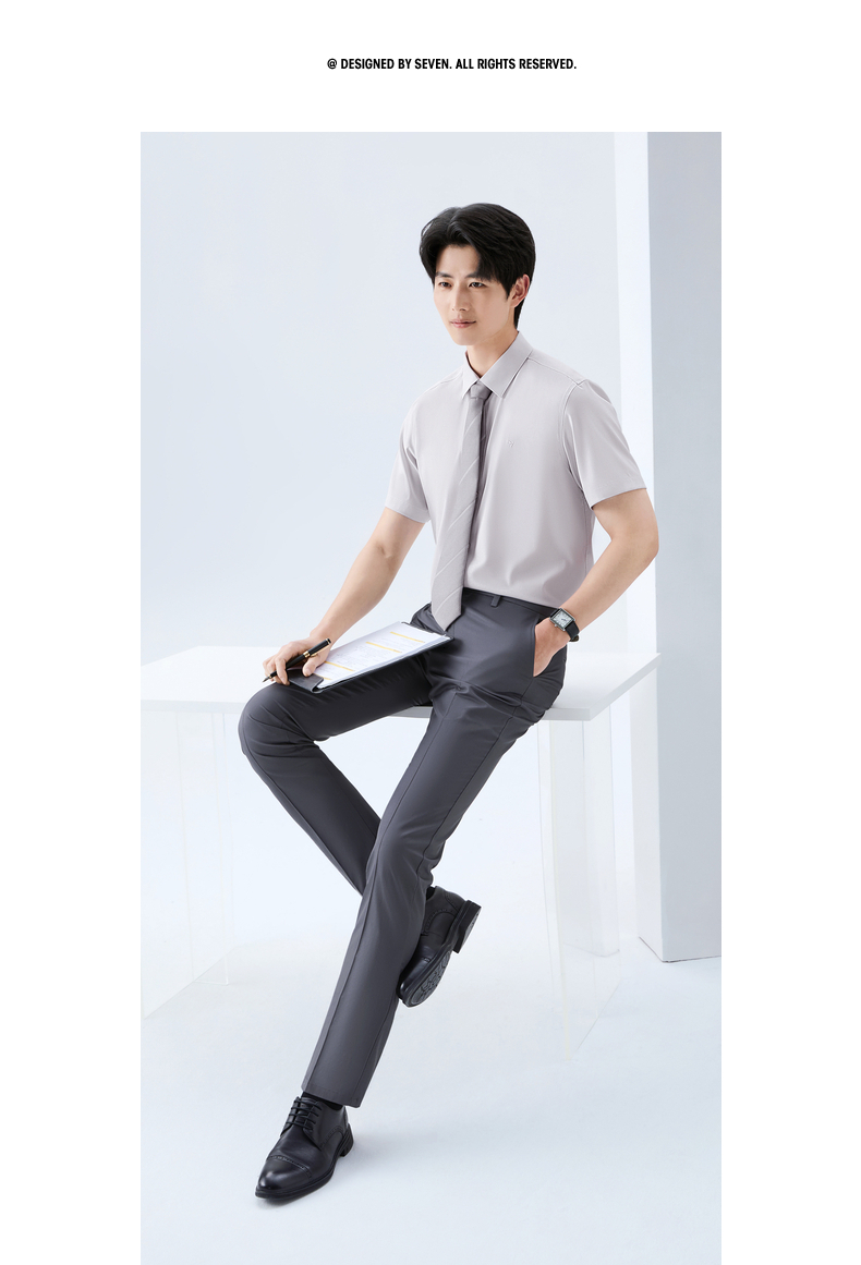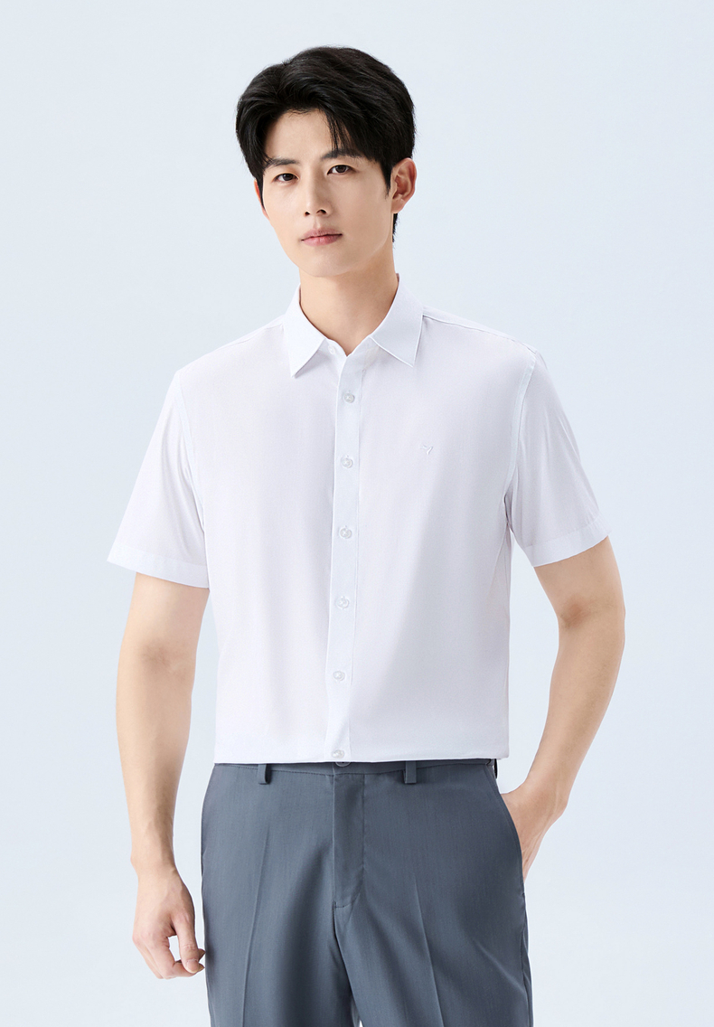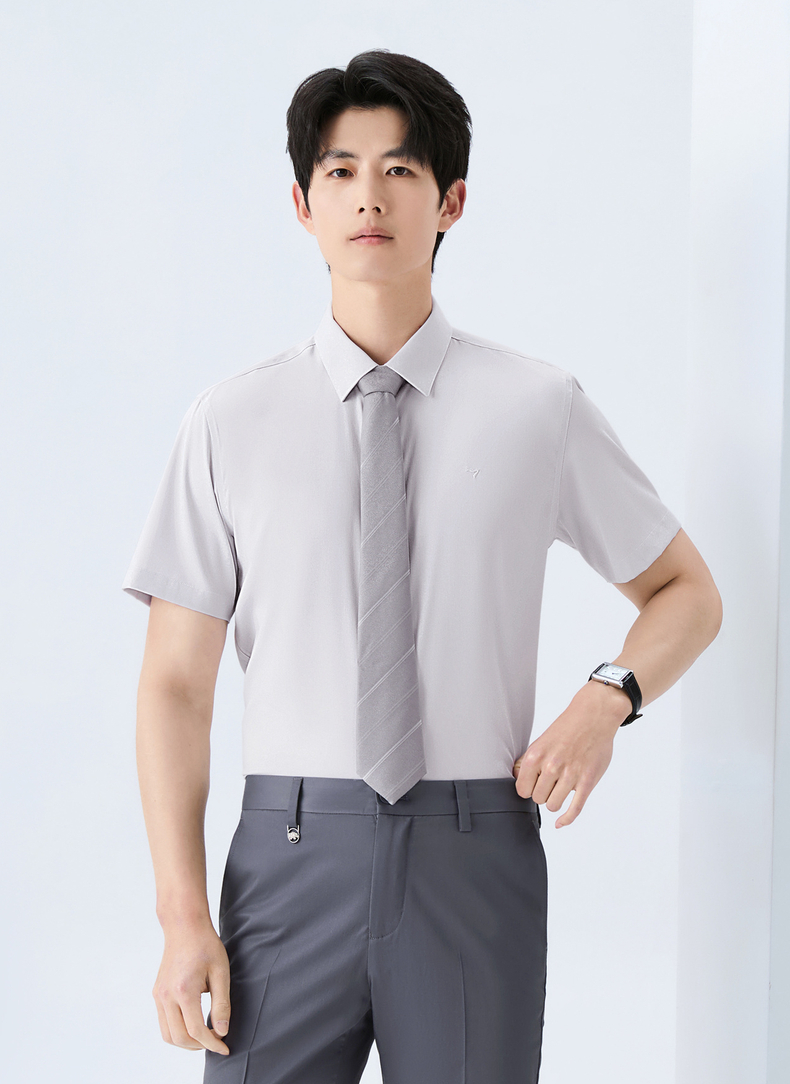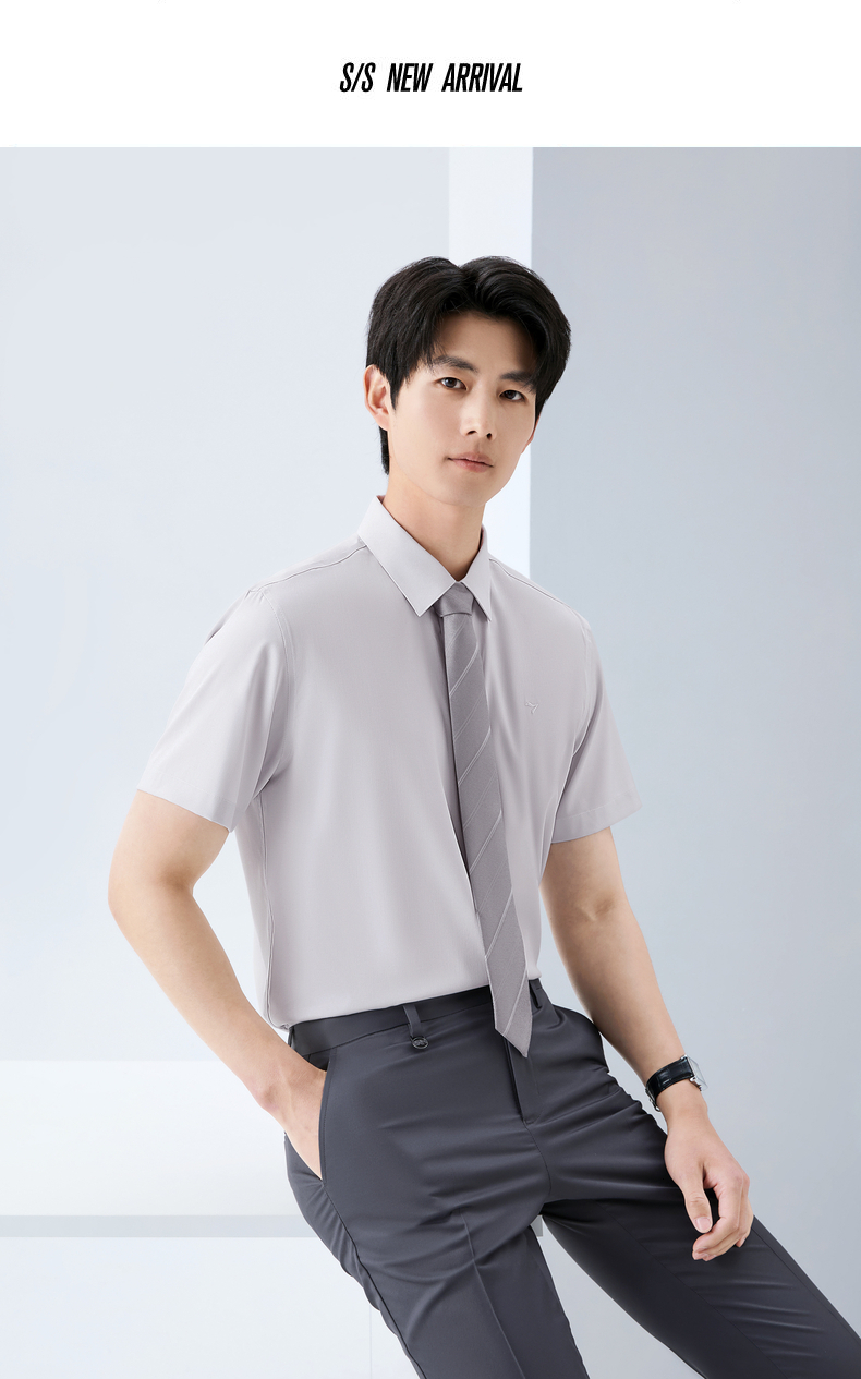 【瞬间凉感】柒牌男装2026夏季新品几何肌理含莫代尔商务短袖衬衫 130A70470