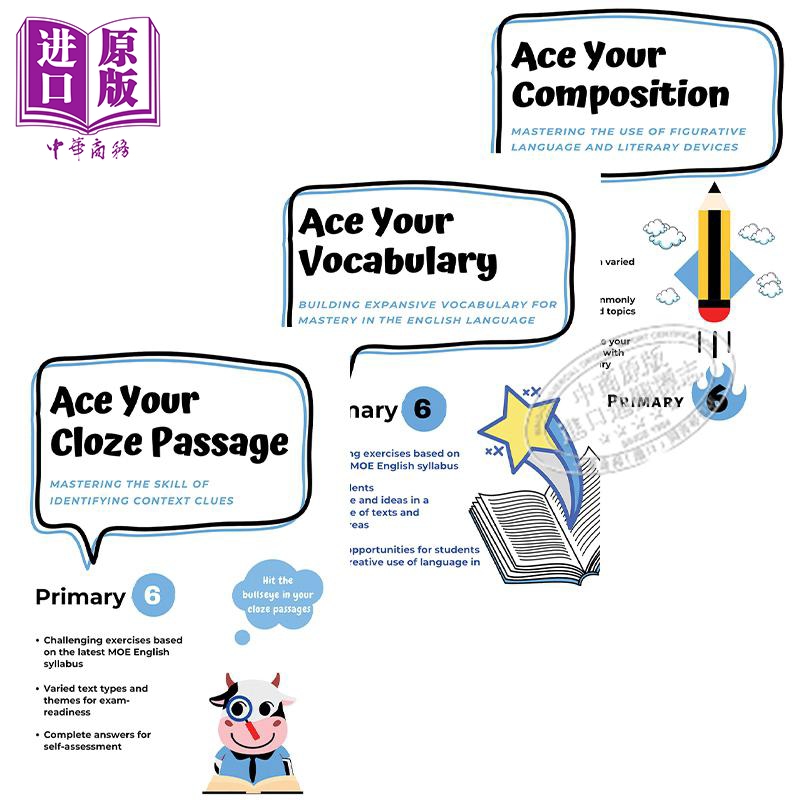 【中商原版】新加坡教辅 小学6年级英语学习3册套装 词汇+完形填空+写作作文 Ace Your Vocabulary/Cloze Passage/Composition Primary6