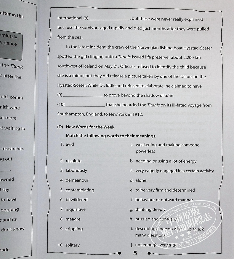 本书以小学6年级学生的基本词汇为基础,进一步扩大学生的词汇量。所使用的问题和短文更复杂,需要更复杂的思维才能理解。本周新单词,使用新单词和单词扩展练习将帮助学生在不同的单词形式和他们在语言中的用法之间建立联系。此书将给学生提供丰富的词汇,他们将能够在所有情况下使用。