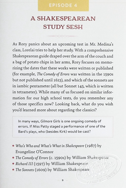 这部首次获得官方的阅读挑战书包含与该系列七季中出现、提及和引用的书籍相关的思考开端和提示。这本概要经过仔细研究,比任何其他罗里·吉尔摩 (Rory Gilmore) 编写的阅读清单都更齐全、更可靠。无论您选择从头开始,还是深入研究某个角色的文学喜爱,您都会在其中找到阅读指南。