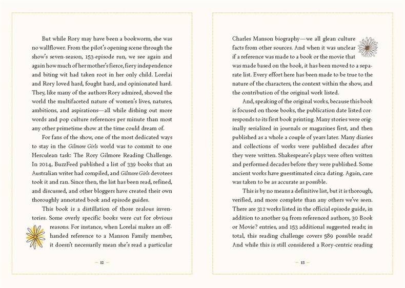 You'll also find helpful information for organizing your TBR collection, tips for maximizing your reading time and becoming a more mindful reader, secrets for reading multiple books at once, and an essential episode guide index with checkboxes. And if any part of the challenge feels daunting, take a bit of advice from the bibliophile queen herself: "I just take a book with me everywhere," Rory once said. "It's a habit."