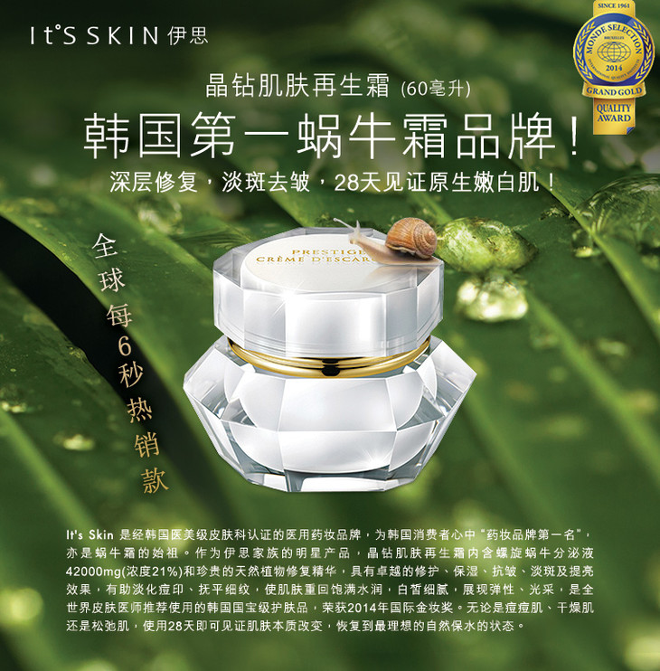 韩国It’s skin/伊思蜗牛面霜60g【送小样】