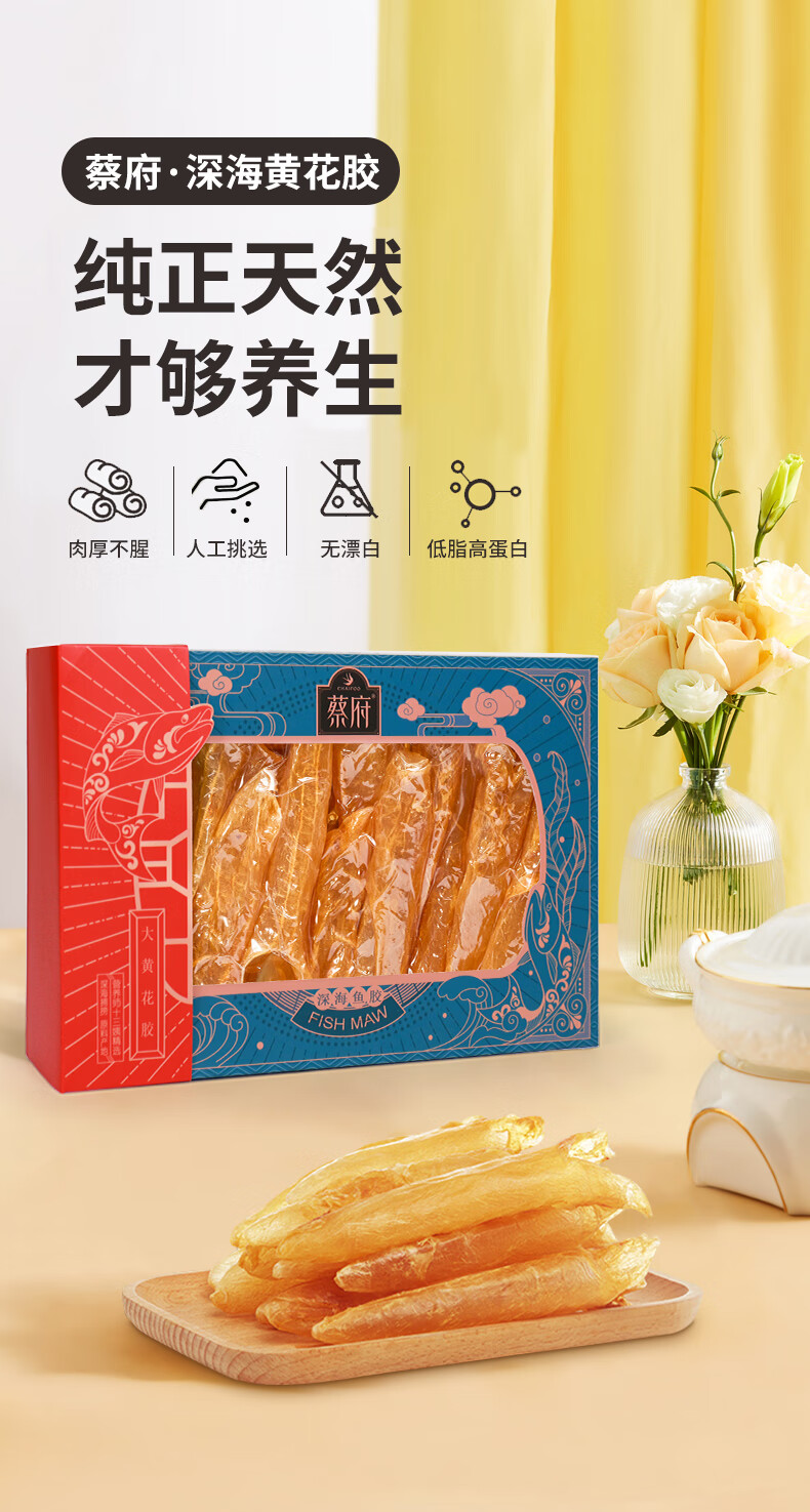 【一件包邮 传统滋补】蔡府3A大黄花胶200g 陈年胶3-5年鱼龄 甘肃/青海/内蒙古/新疆/西藏/宁夏/海南/港澳台不发货