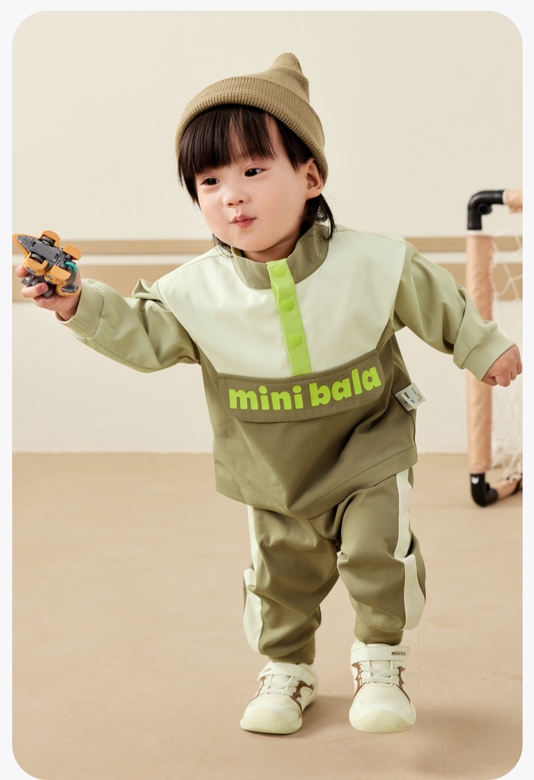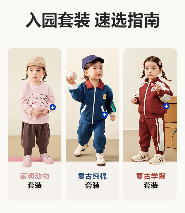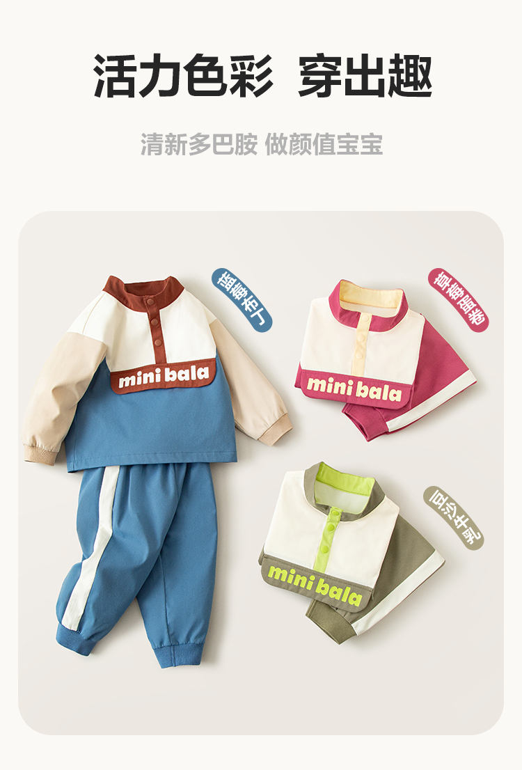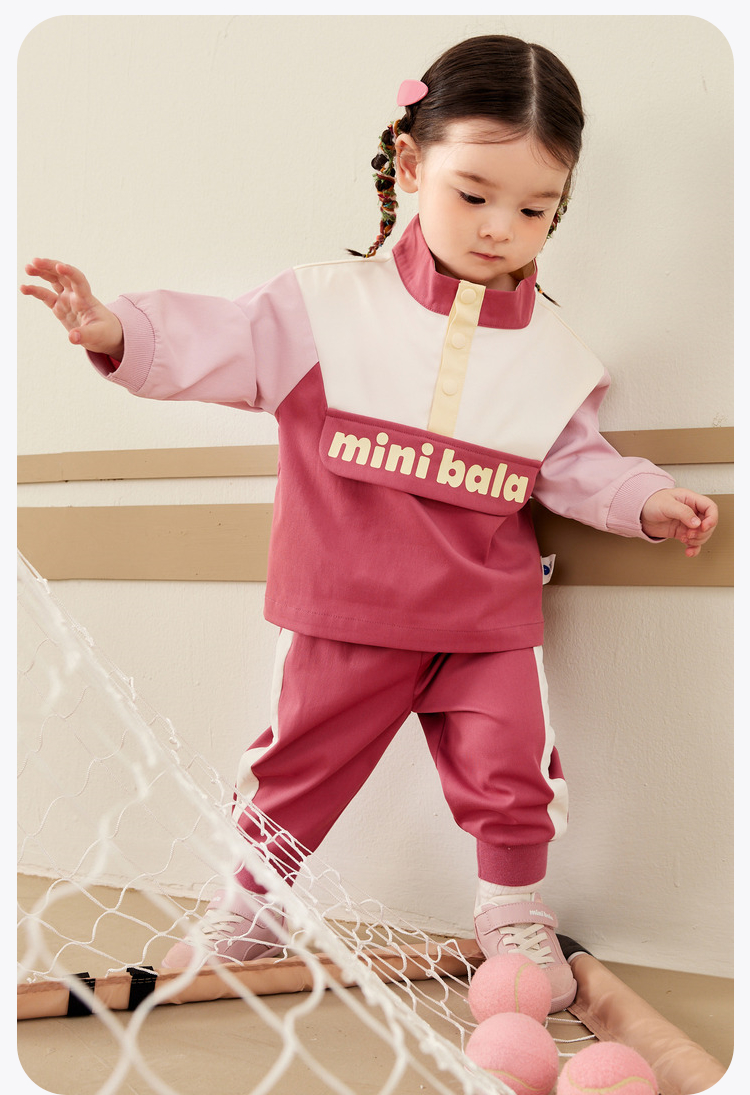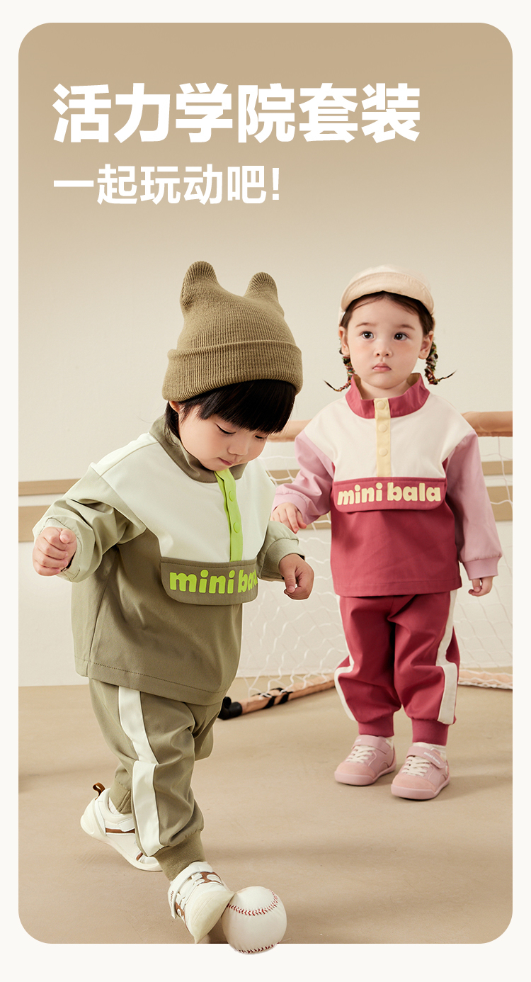迷你巴拉复古套装男女童活力学院风长袖长裤