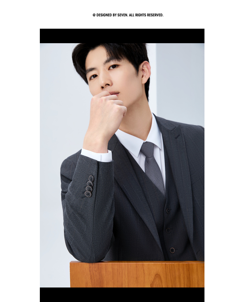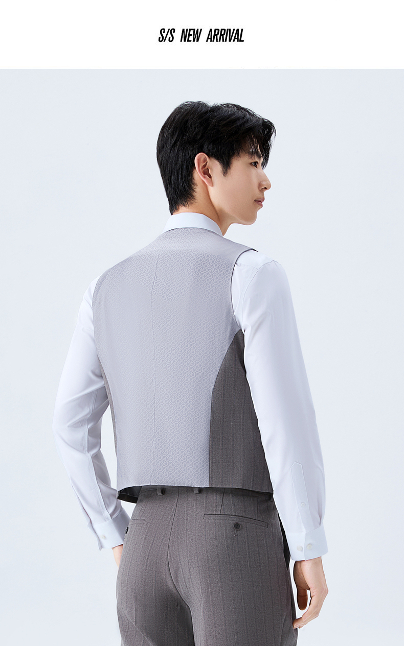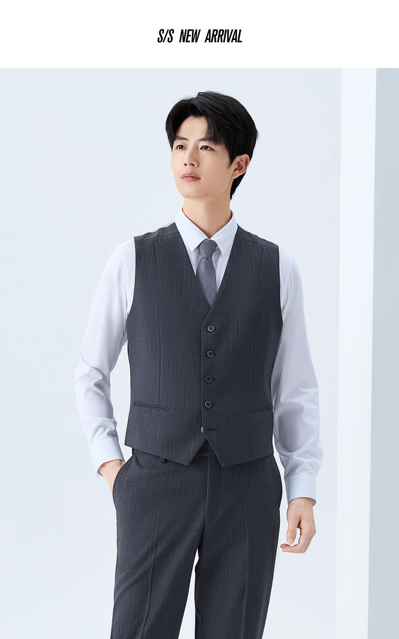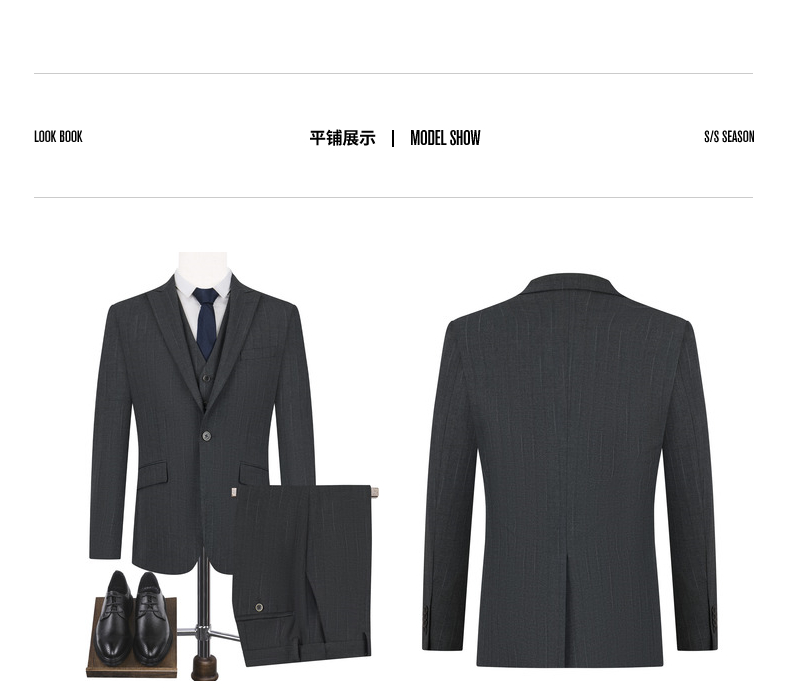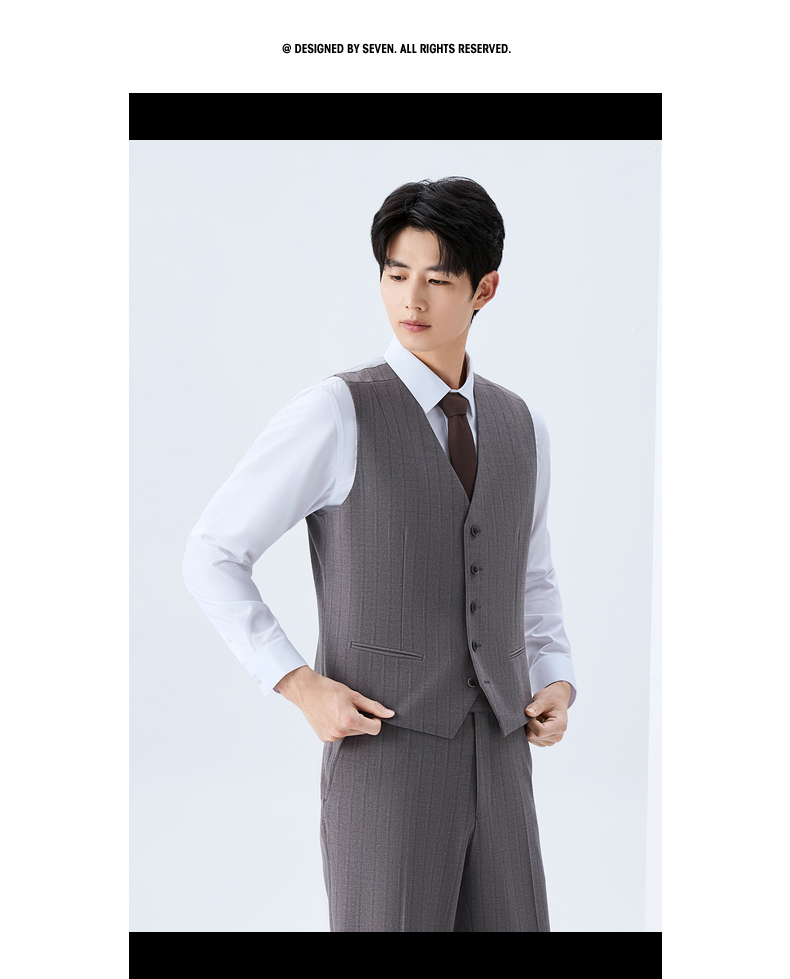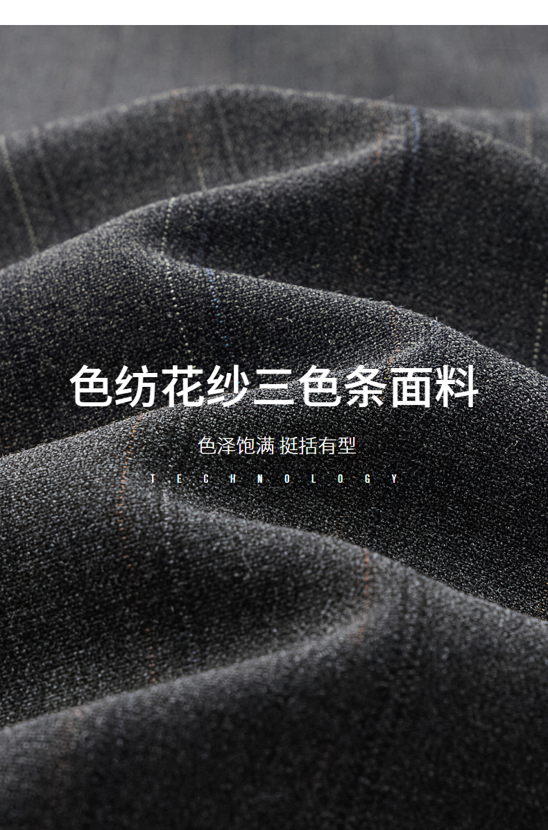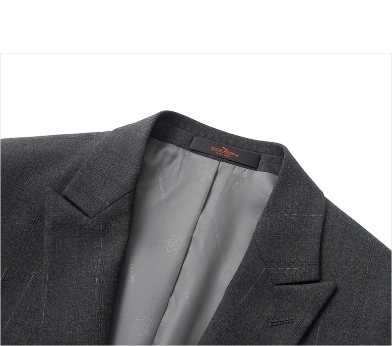 【色纺花纱三色条】柒牌男装2026春季戗驳领西服西装套装三件套130C70050