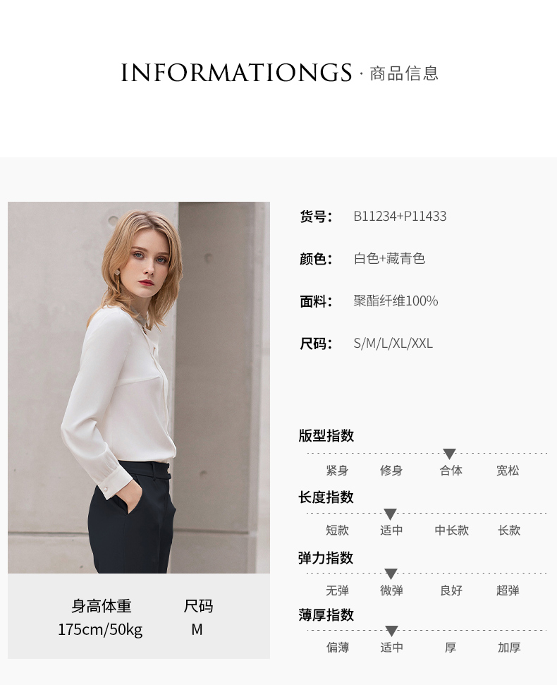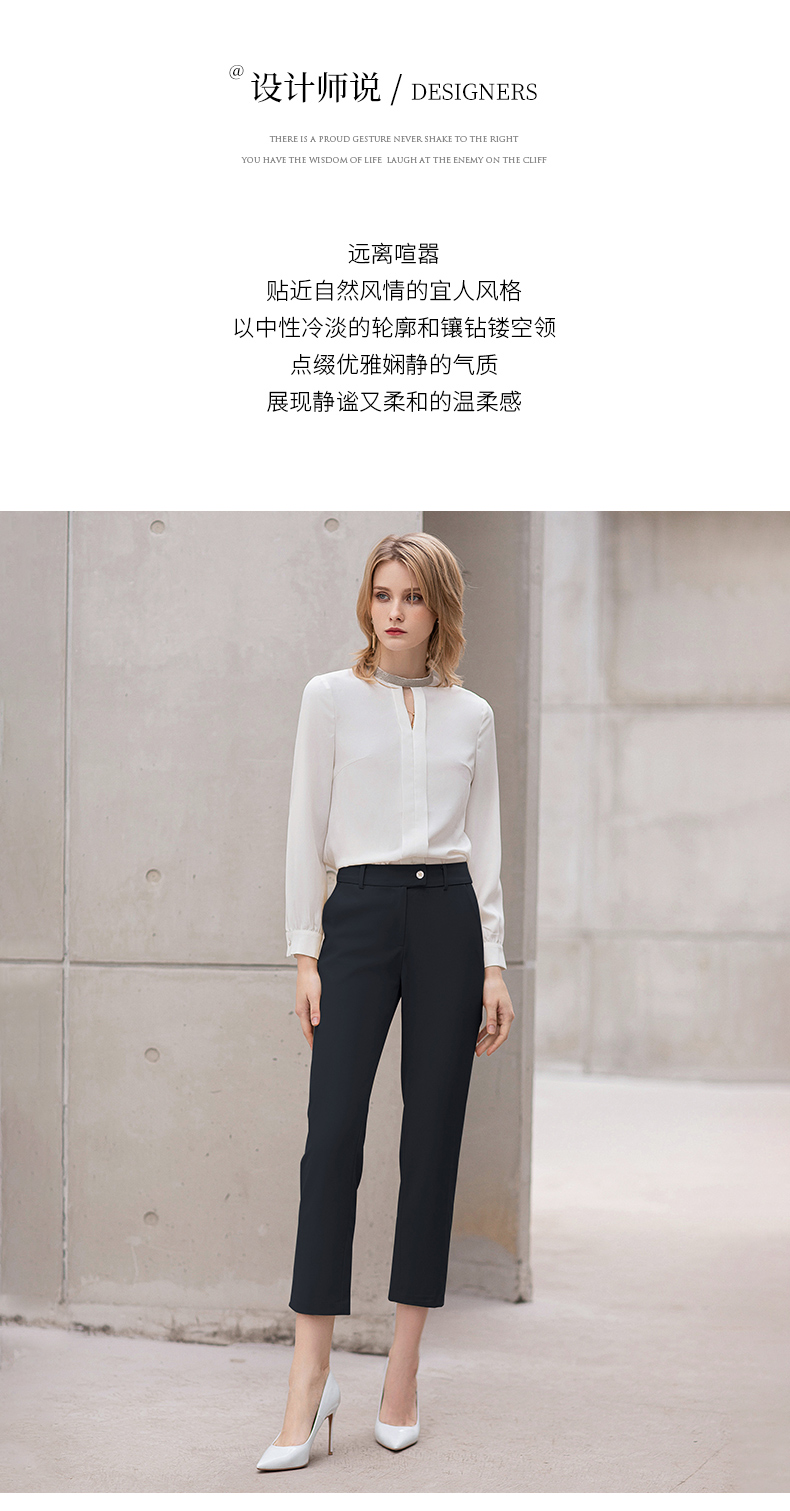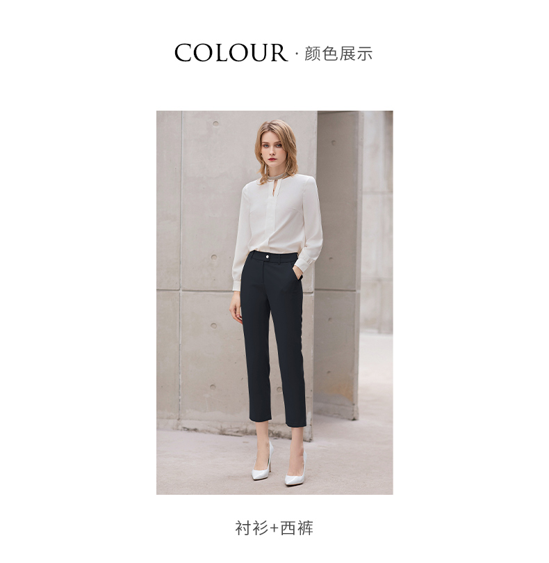 IWY/白色衬衫女夏薄款设计感雪纺衬衣职业上衣套装气质公务员面试正装B11234+P11433