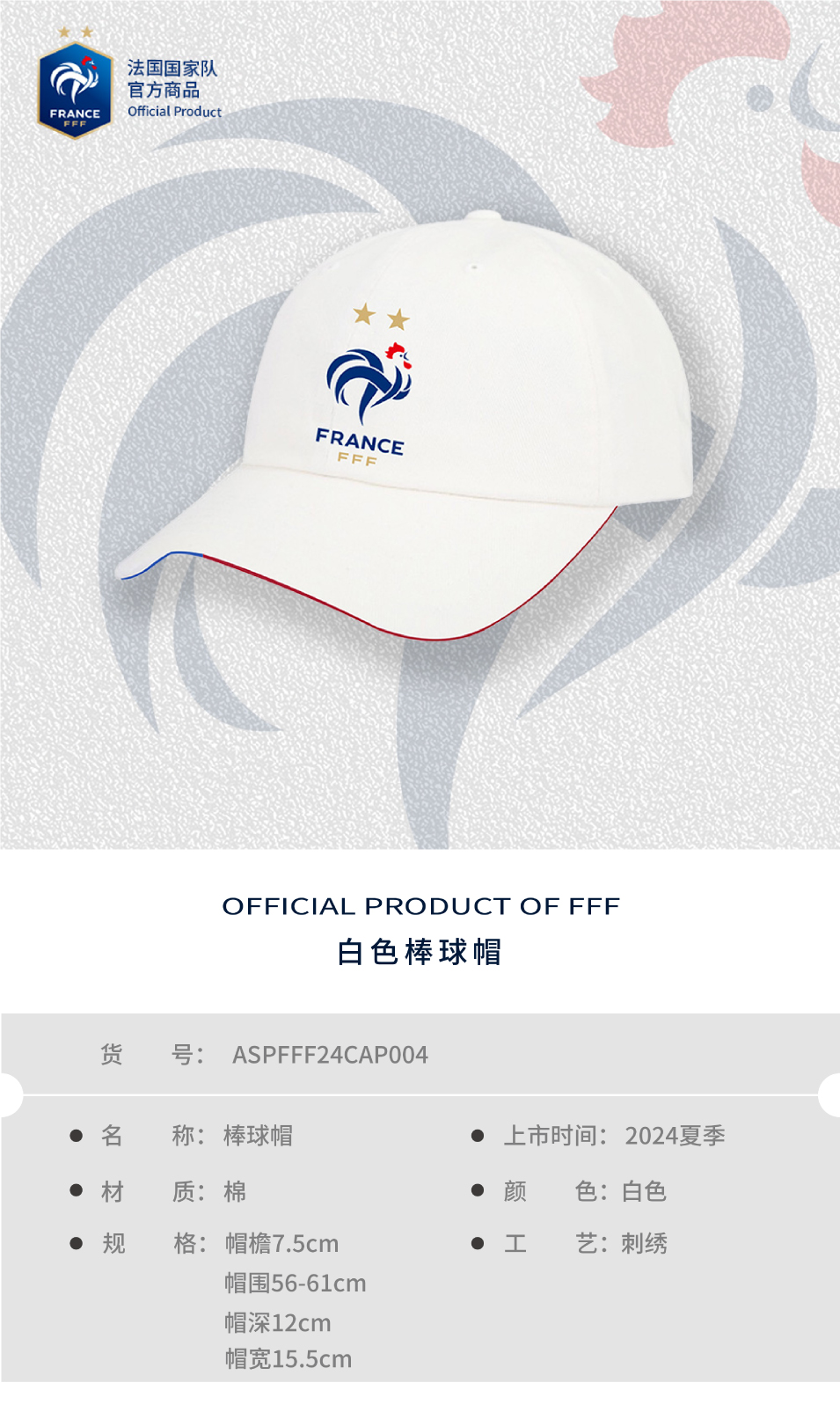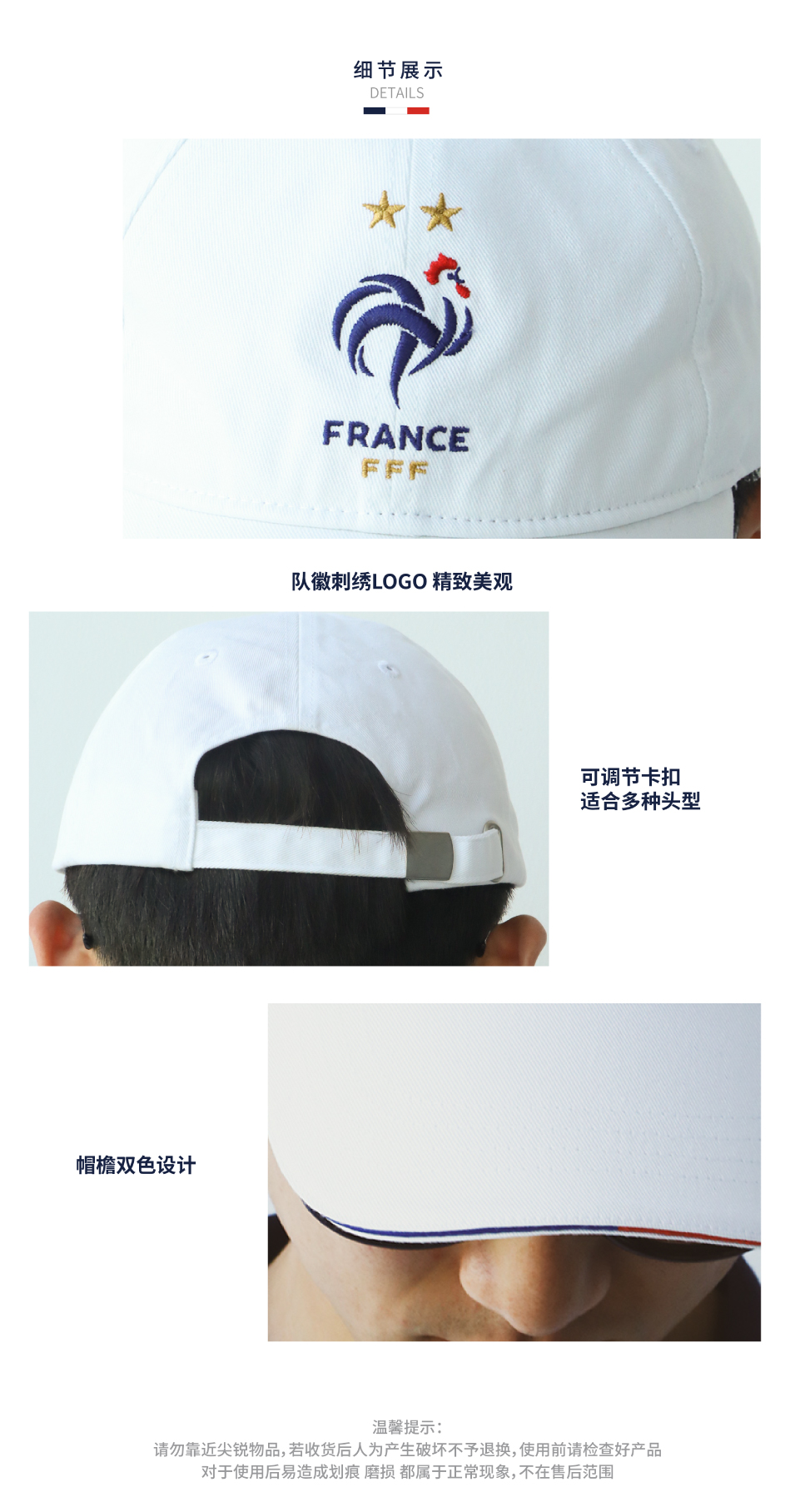 【官方正版】法国国家队丨白色棒球帽球迷队徽刺绣款鸭舌帽百搭周边