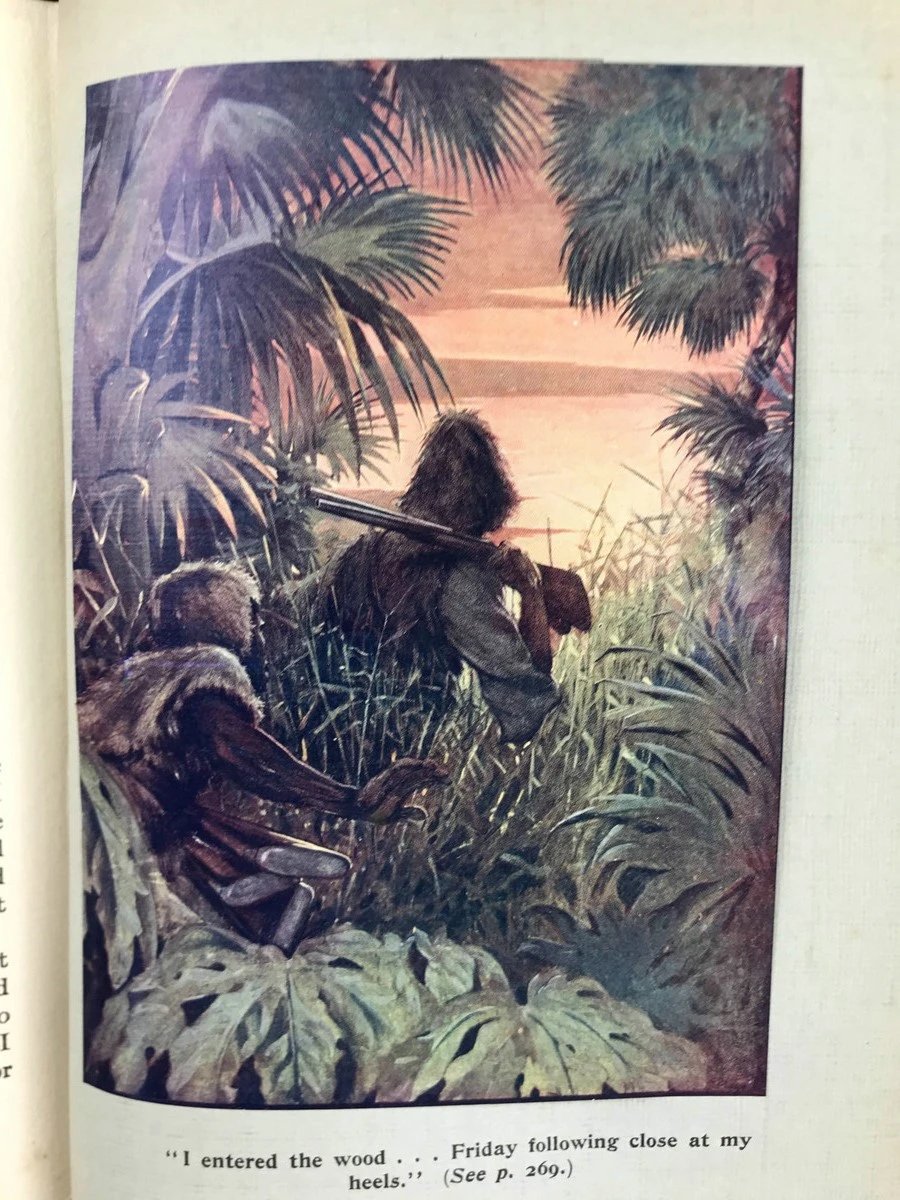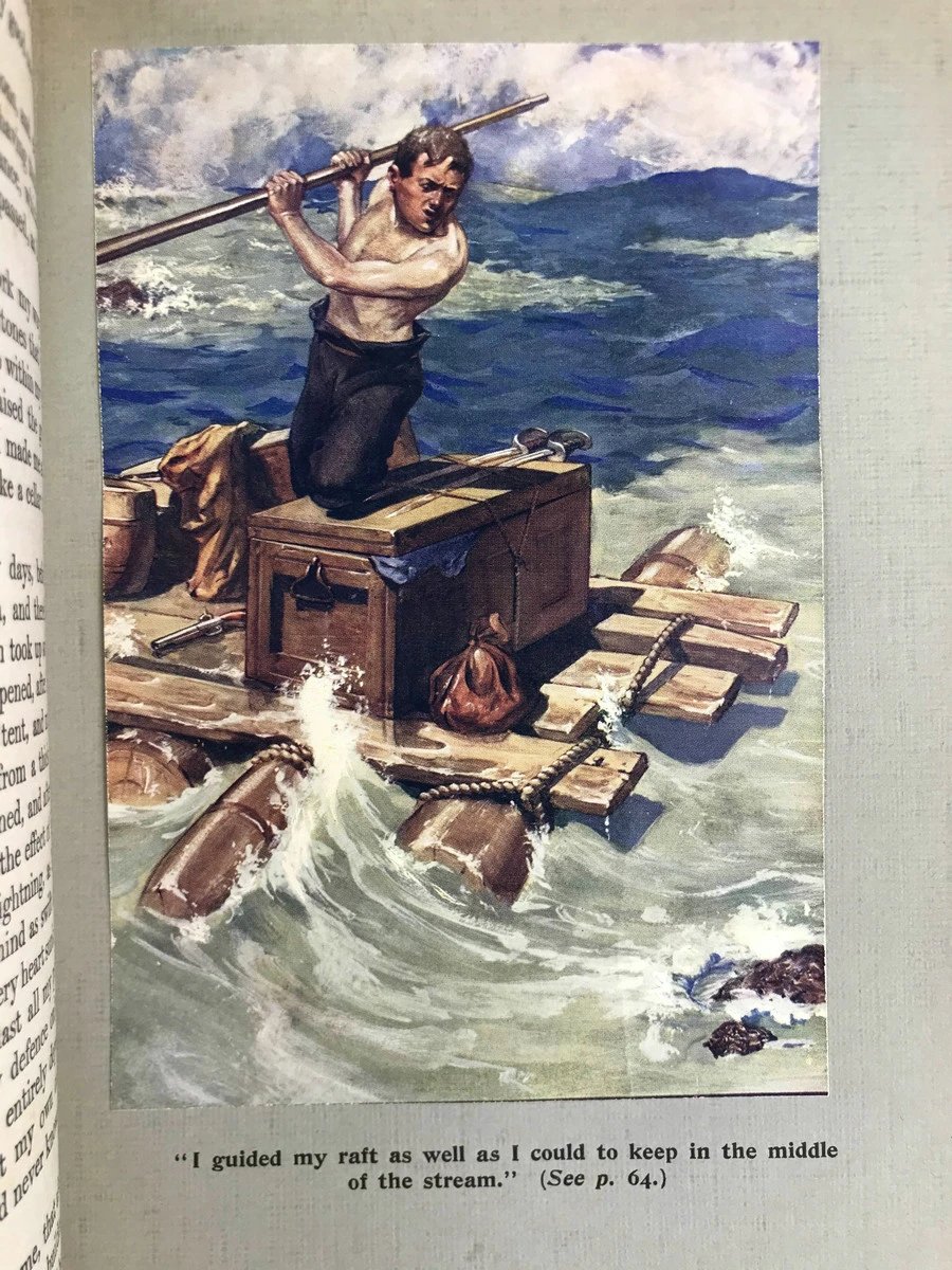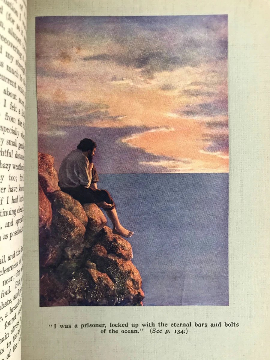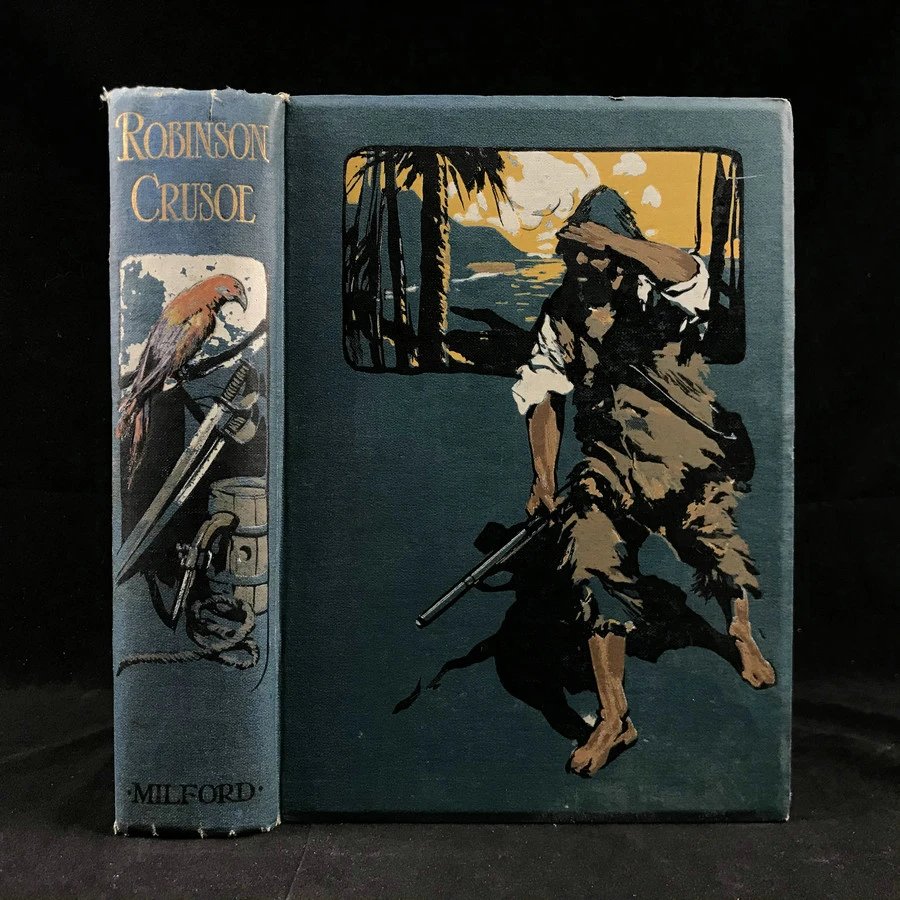 1917年 鲁滨逊漂流记 24幅彩色手工贴图 漆布精装16开