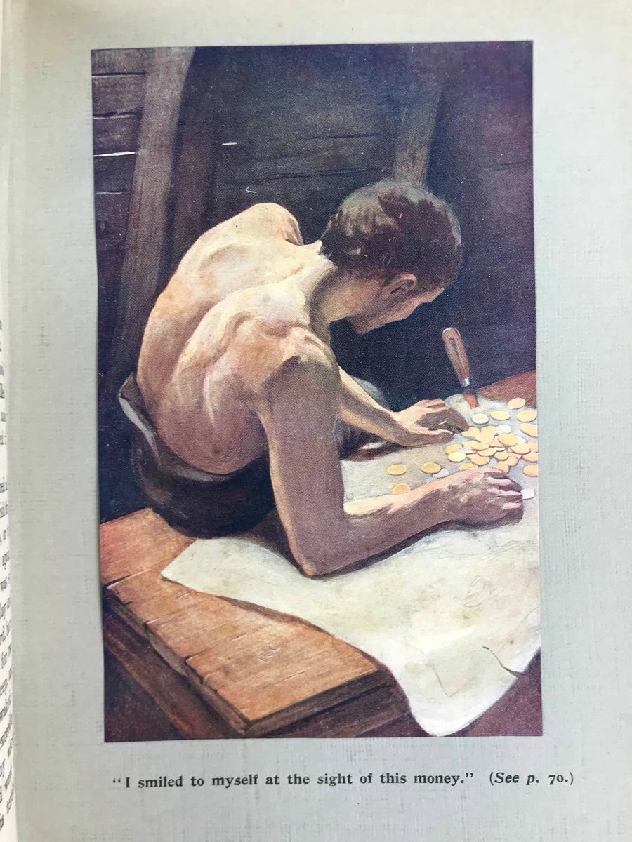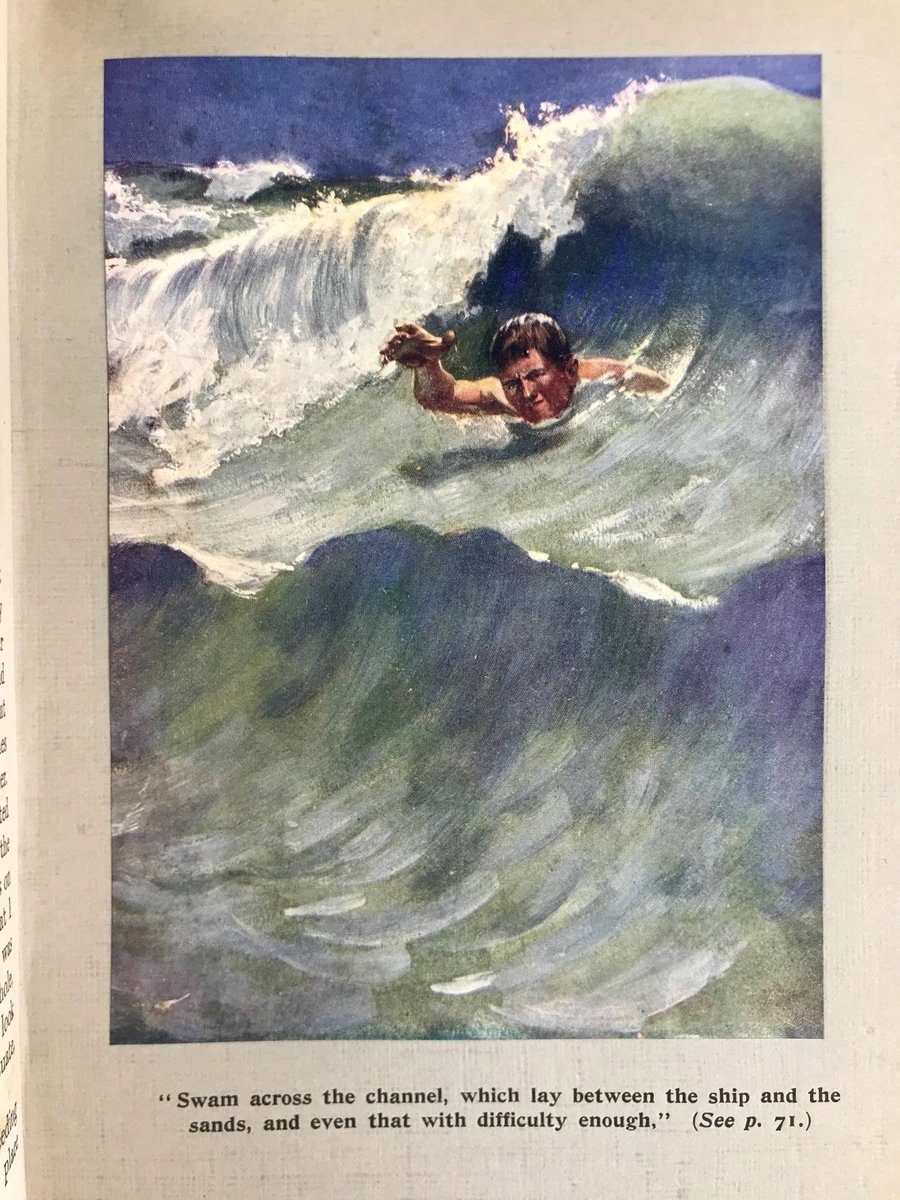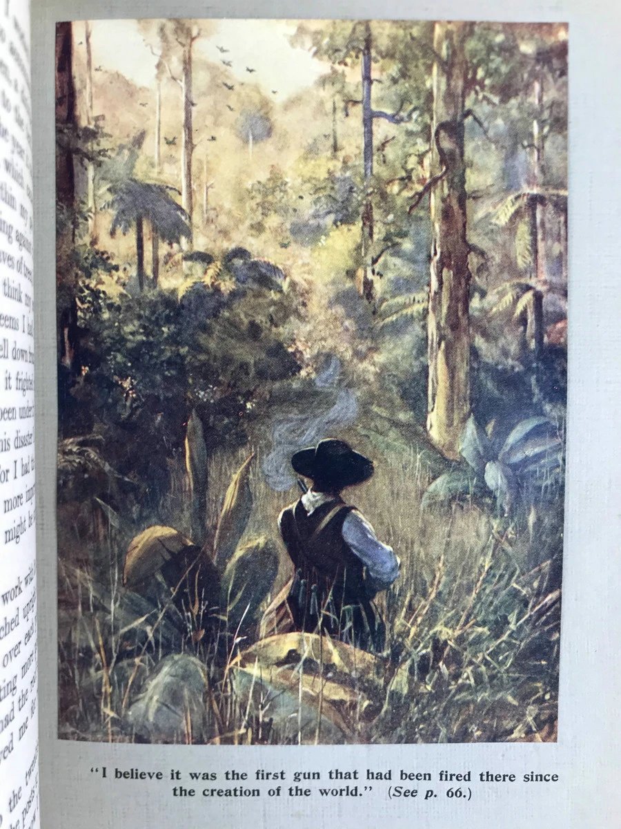 1917年 鲁滨逊漂流记 24幅彩色手工贴图 漆布精装16开