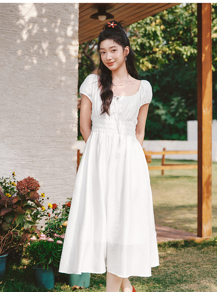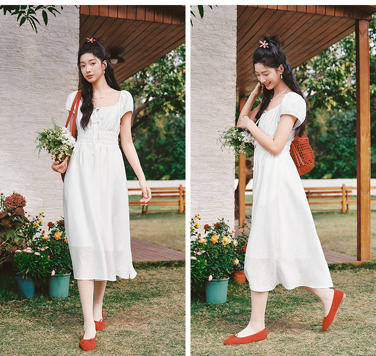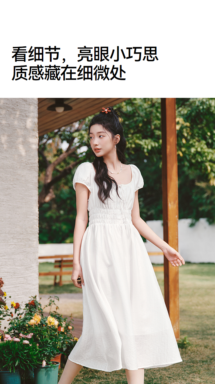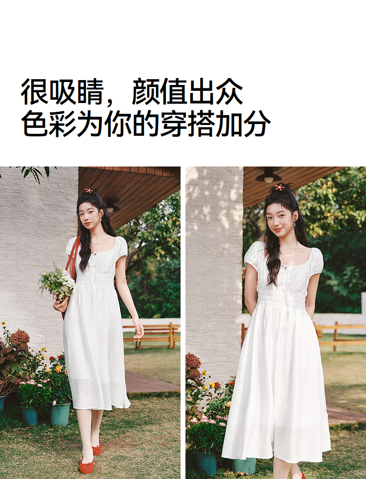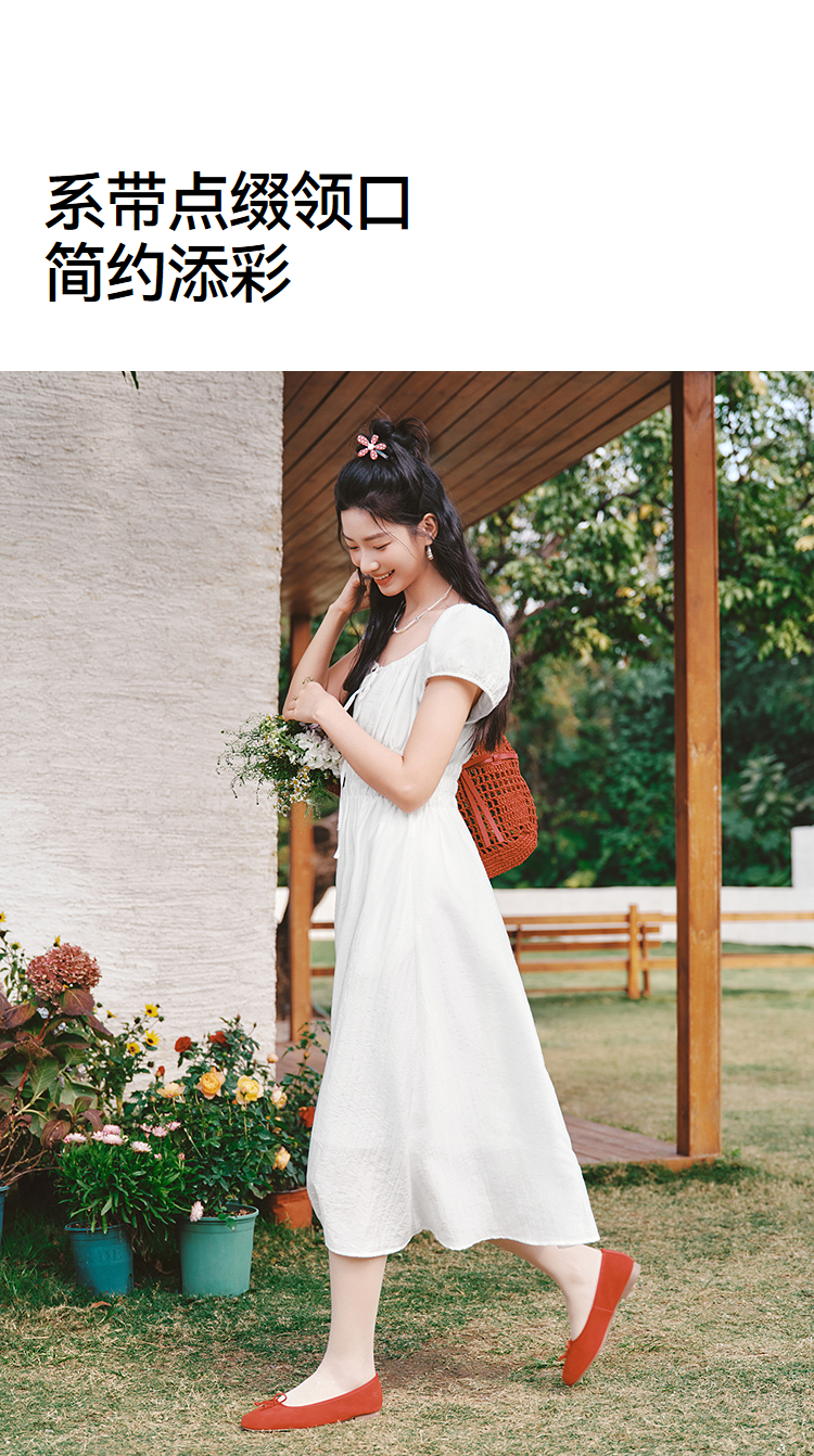 森马连衣裙女夏季肌理蝴蝶结2026新款简约风法式气质优雅初恋裙子