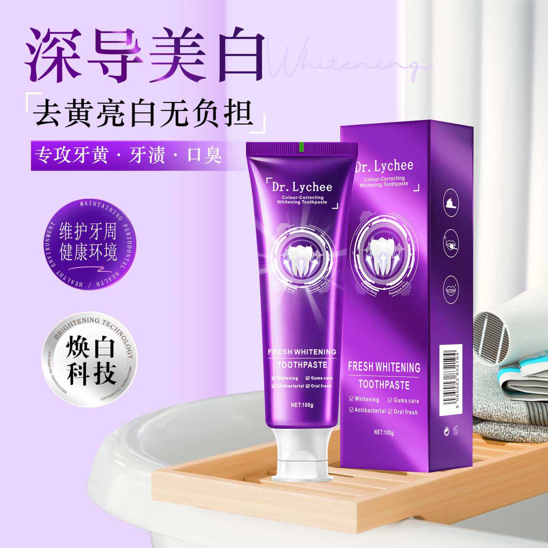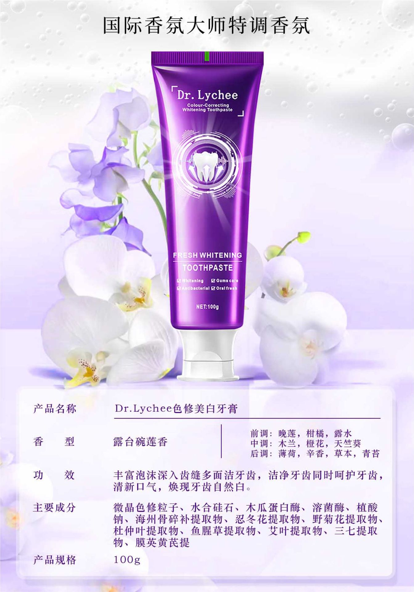 【晶色修粒子技术❗️以酶溶渍以紫修黄】Dr.Lychee色修美白牙膏进口去黄清新口气口腔留香。jb