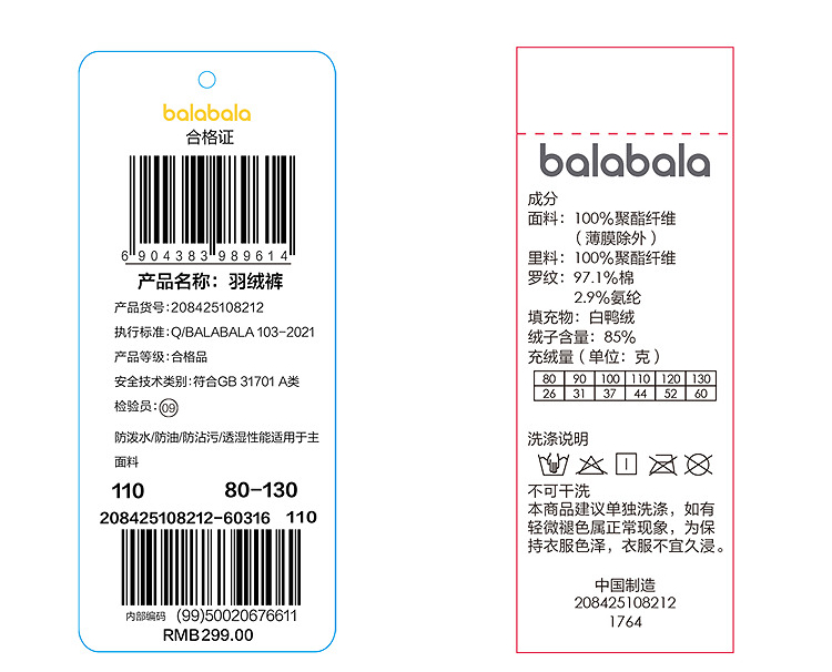巴拉巴拉balaOne宝宝羽绒裤三防男童女童弯刀裤冬季2025新款长裤