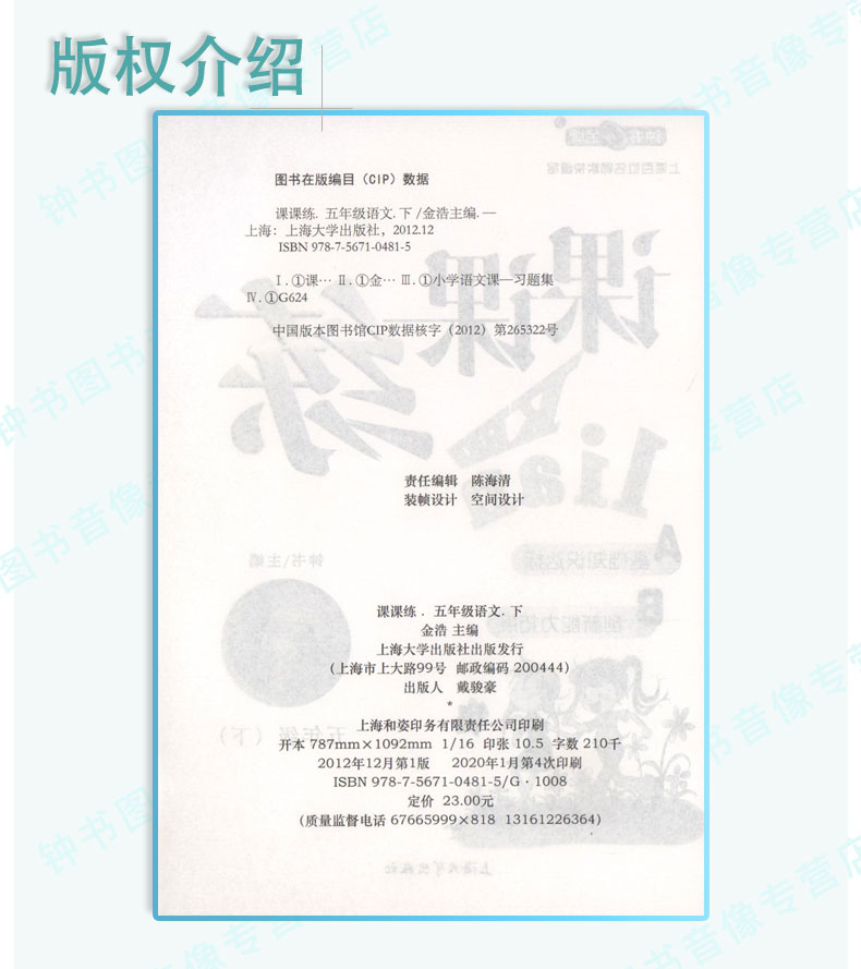 钟书金牌 课课练 部编版语文 5年级下册/五年级下语文第二学期 部编版教材配套上海小学教材教辅同步课后作业练习册 小学教辅