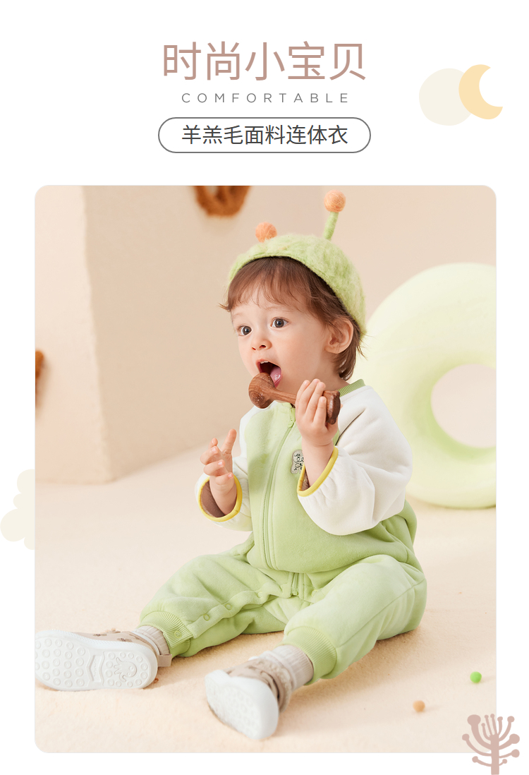 巴拉巴拉宝宝外出连体衣新款新生儿哈衣包屁衣冬装羊羔毛时尚