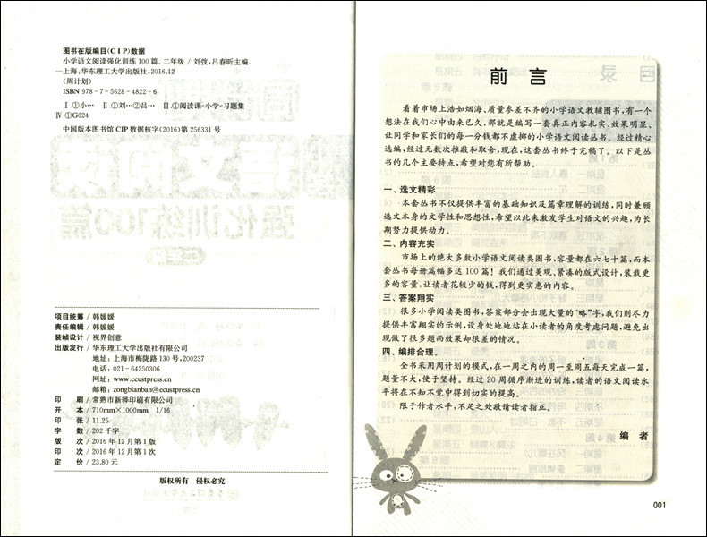 周计划 小学语文阅读强化训练100篇 2年级/二年级 每日10分钟,阅读很轻松 小学阅读课习题集