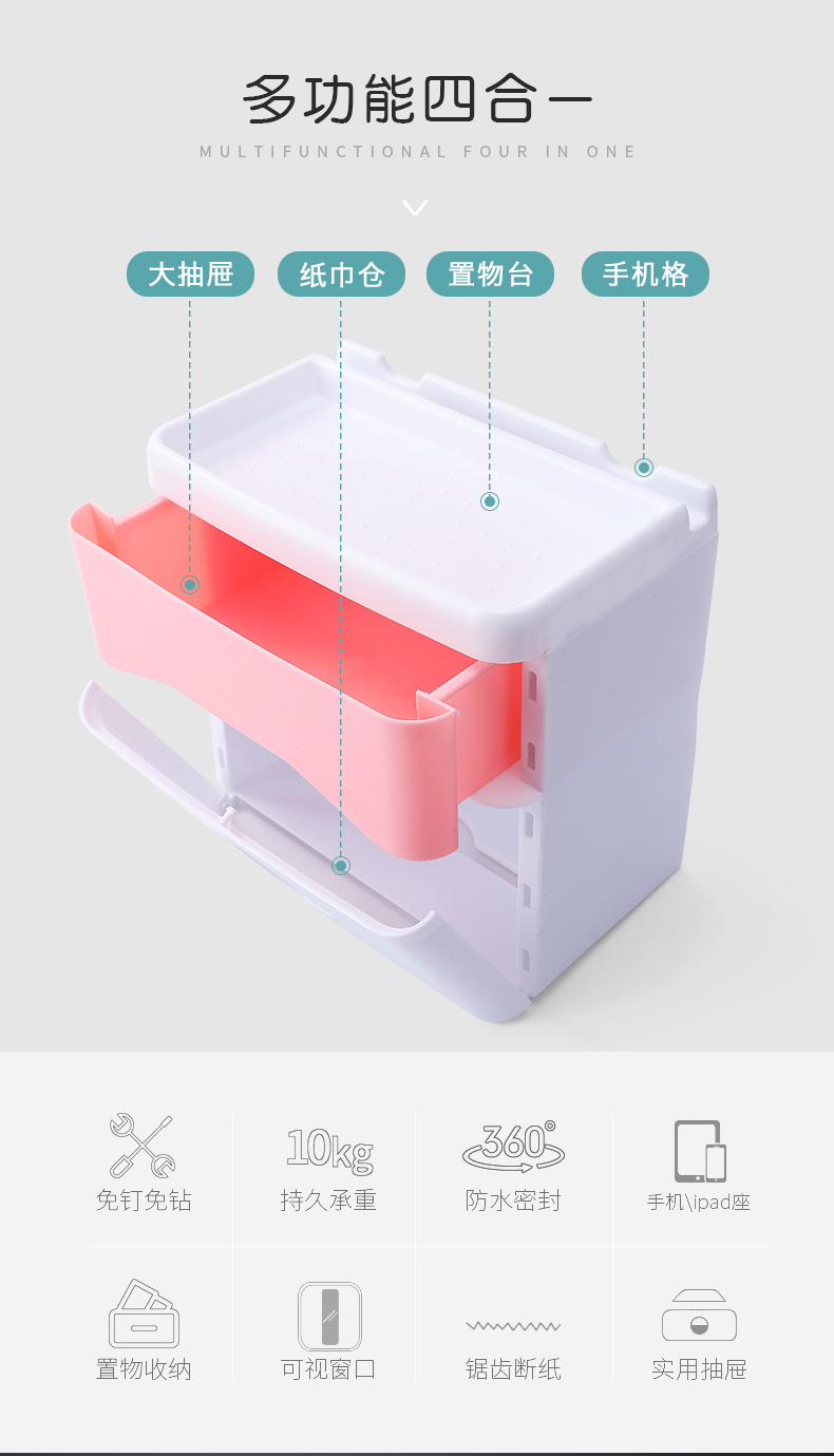 卫生间纸巾盒厕所卫生纸置物架厕纸盒免打孔防水卷纸筒创意抽纸盒